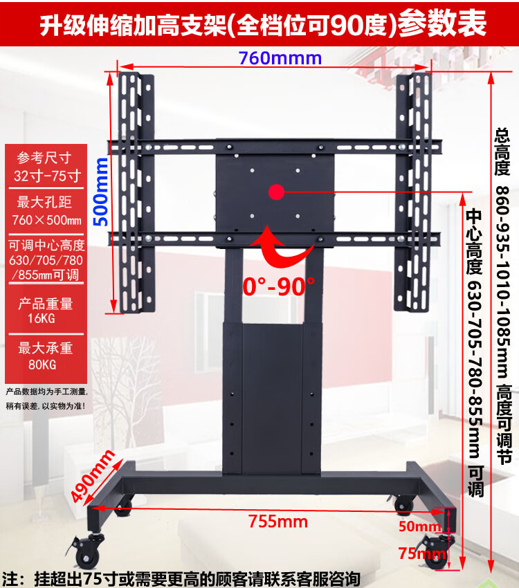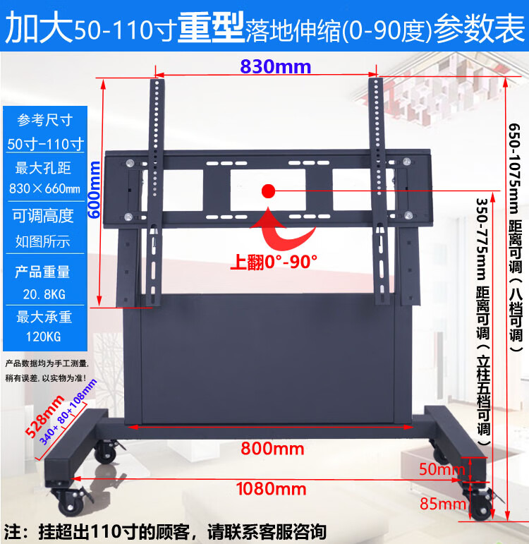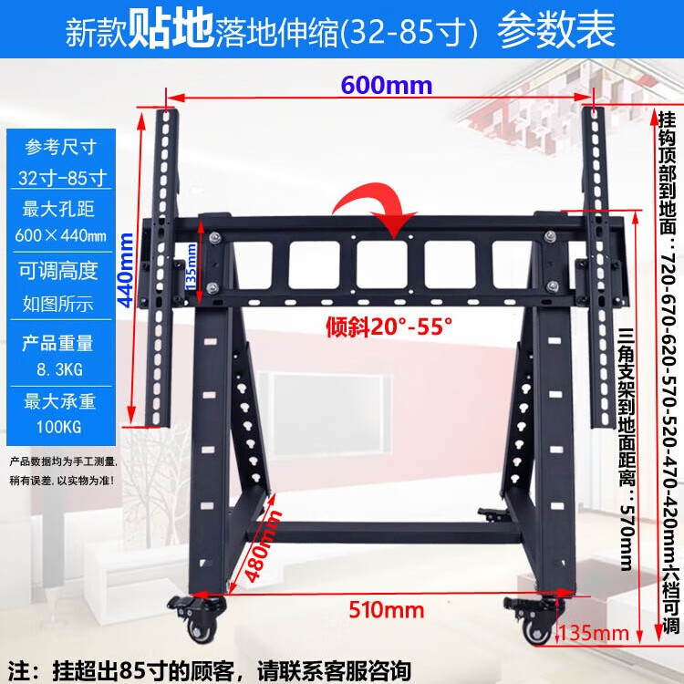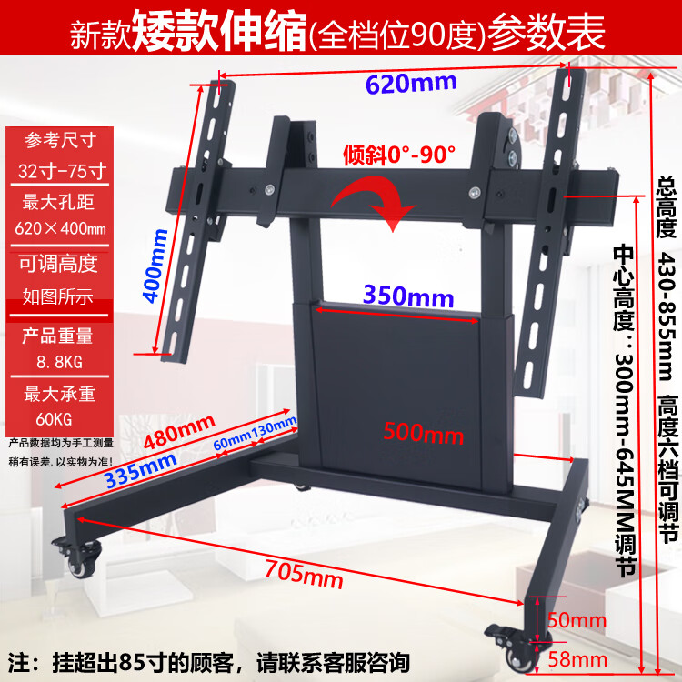 Kadelang stage floor-standing low trolley rostrum return TV stand flat 90-degree inclined conference mobile hanger upgraded telescopic short model (all positions can be 90 degrees)