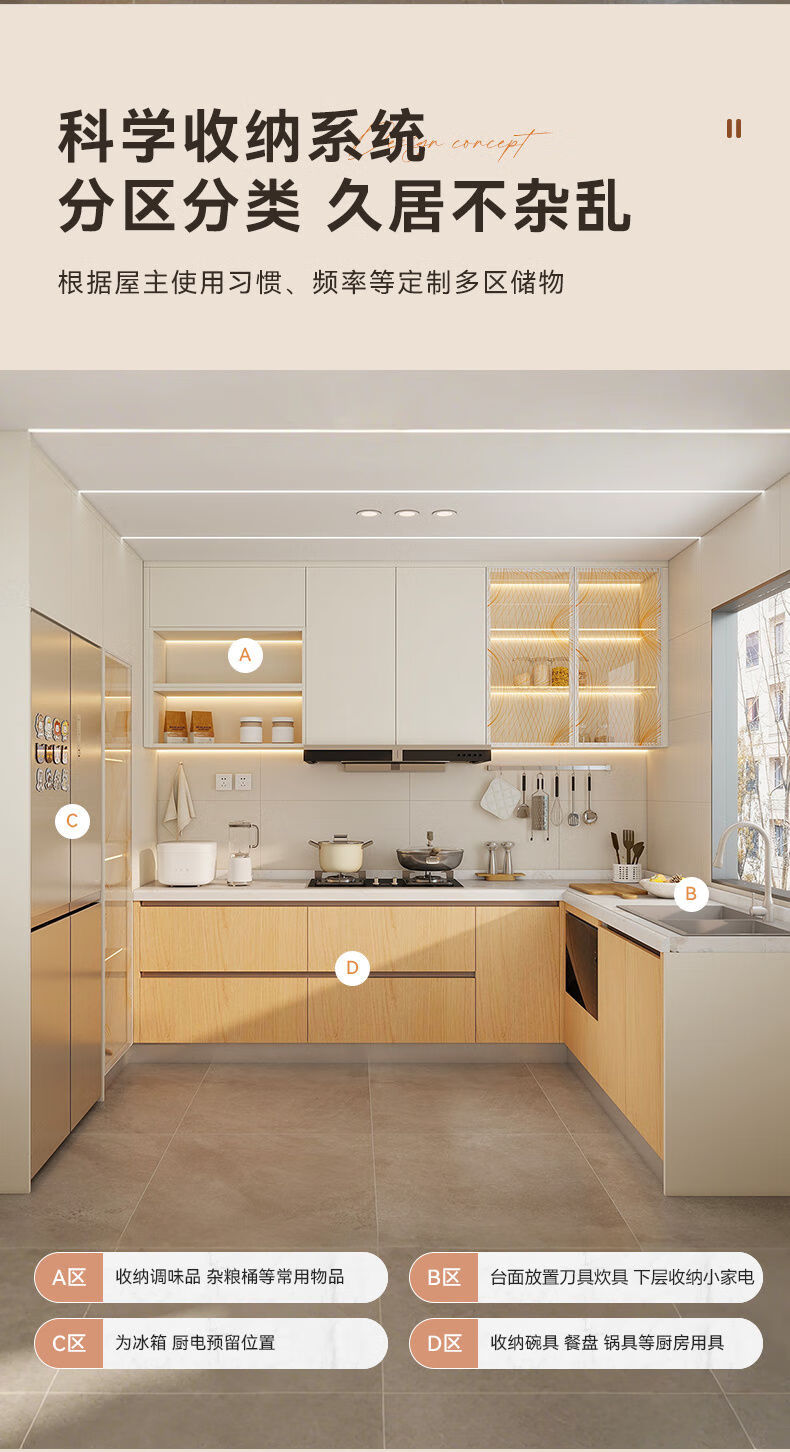 Oluoxun customized Quanyou whole house customized household integrated cabinets quartz stone countertops small apartment kitchen stove integrated cabinet storage 629/m wall cabinet (the specific amount depends on the design plan