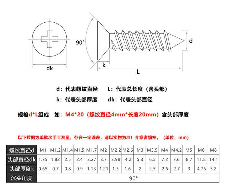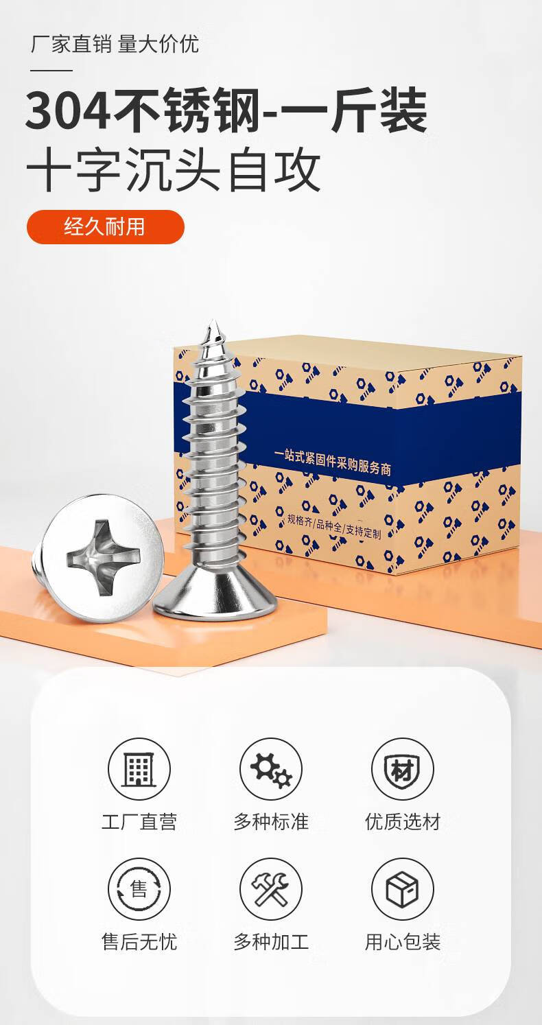 Ni Zhier 304 stainless steel flat head wood screws cross extended countersunk head self-tapping screws national standard boxed collection M1. M2x12 1000 capsules_boxed