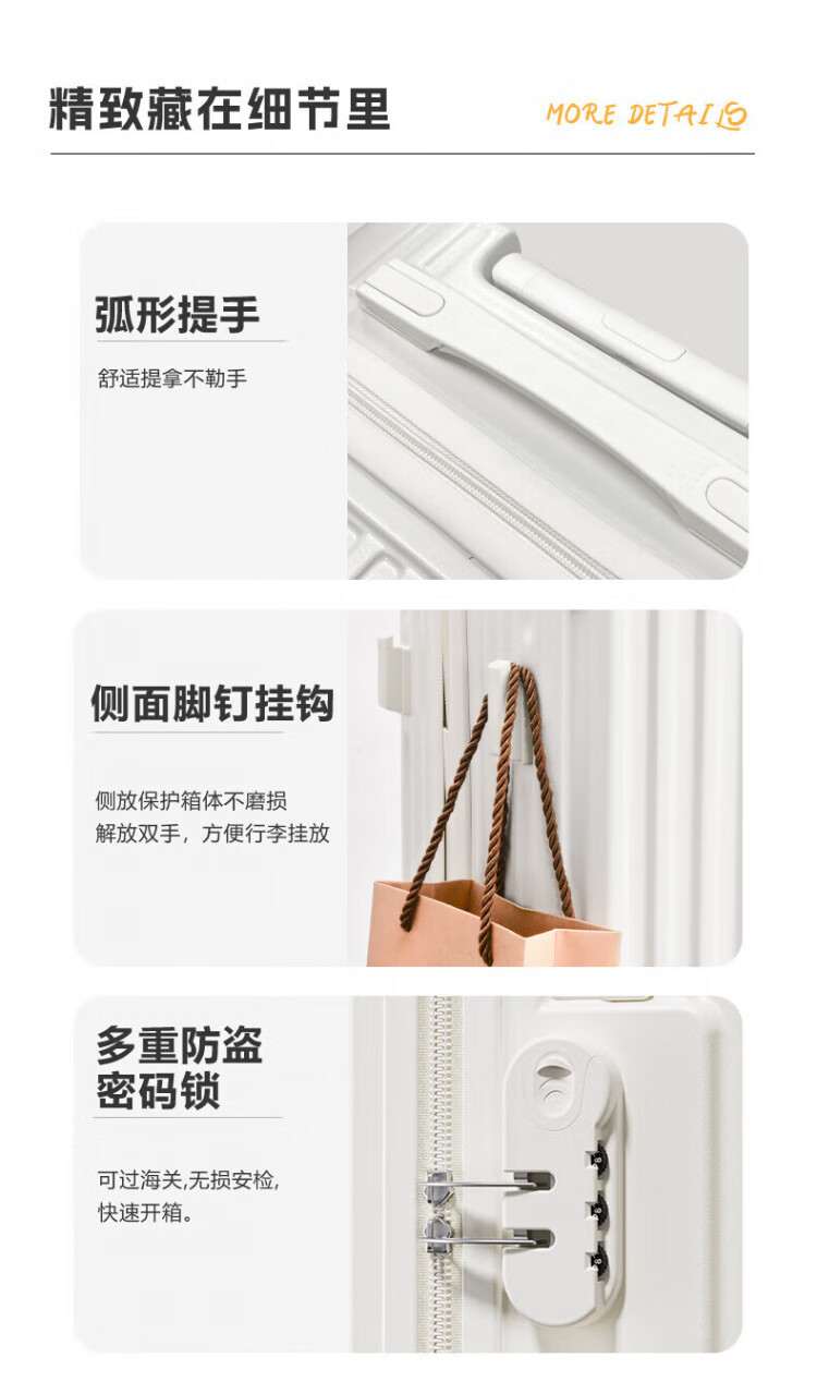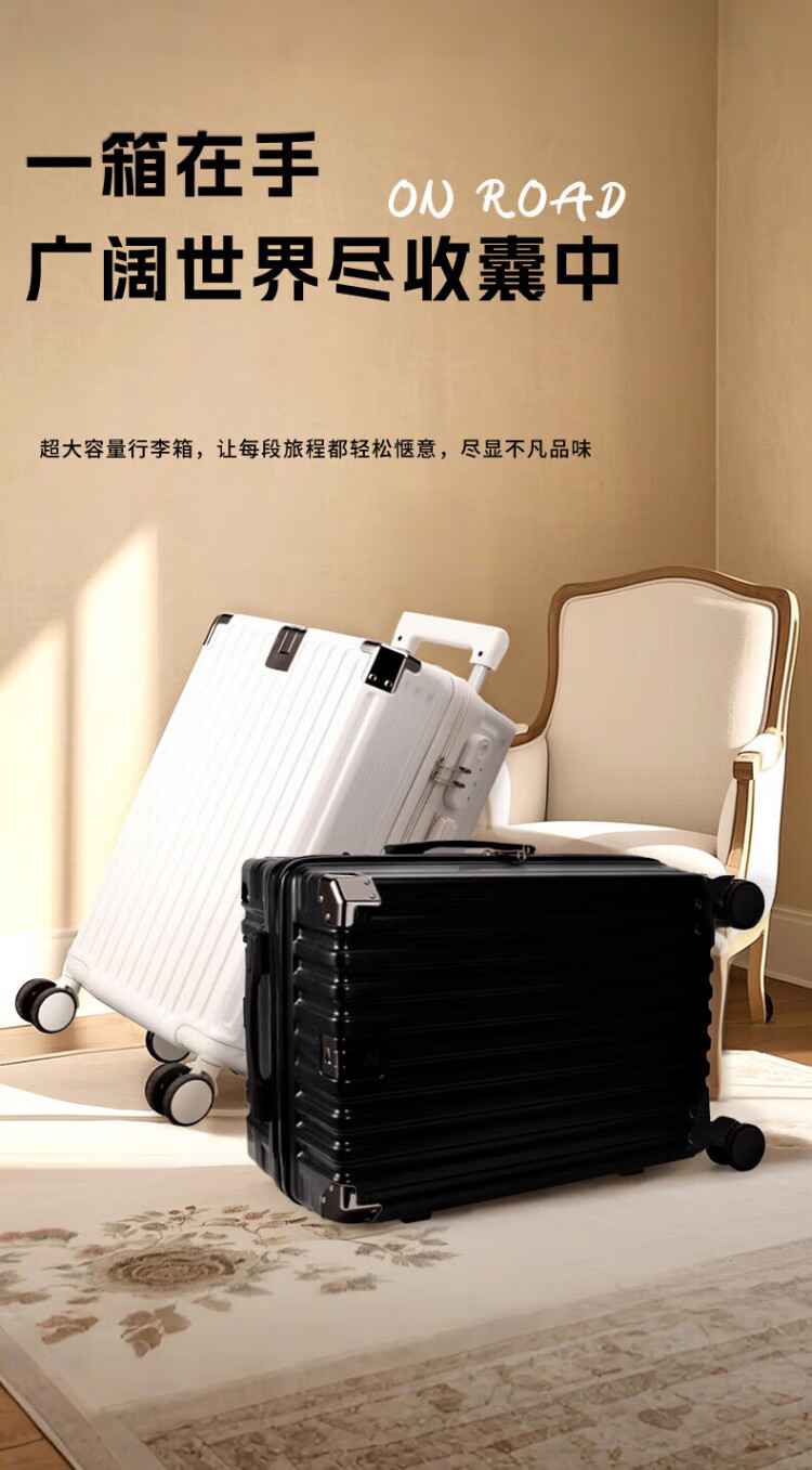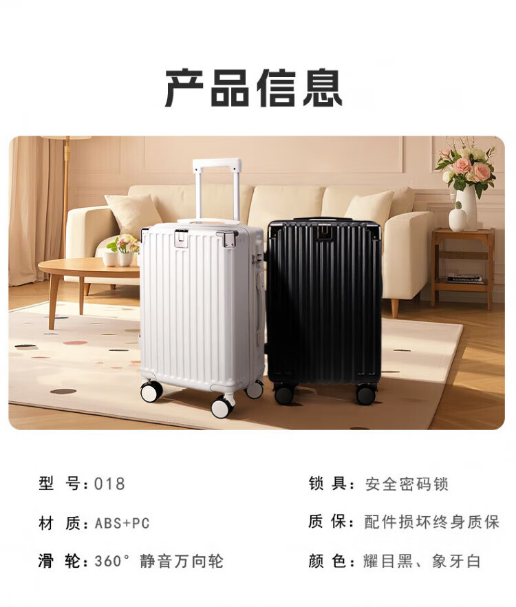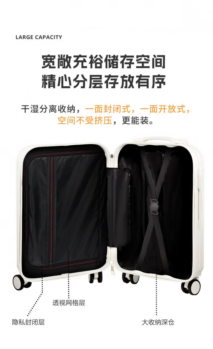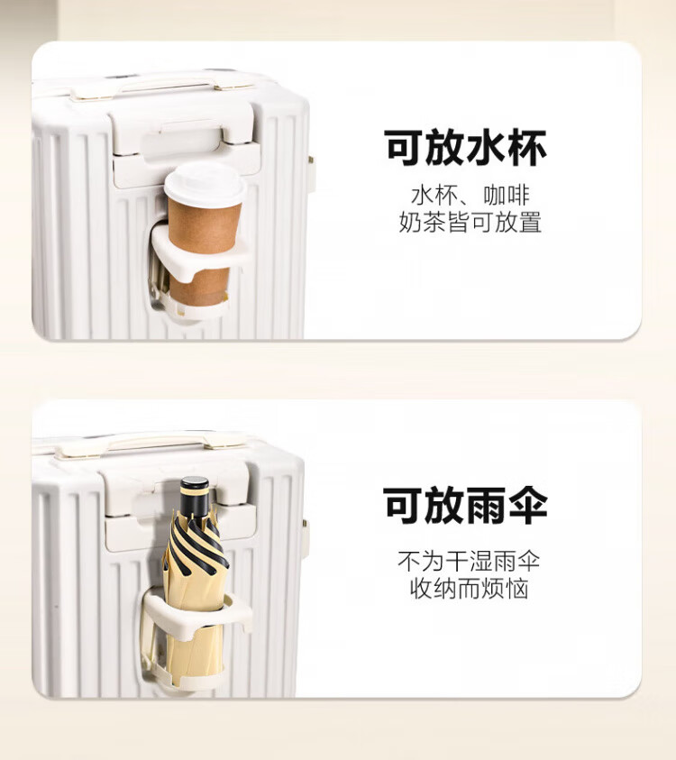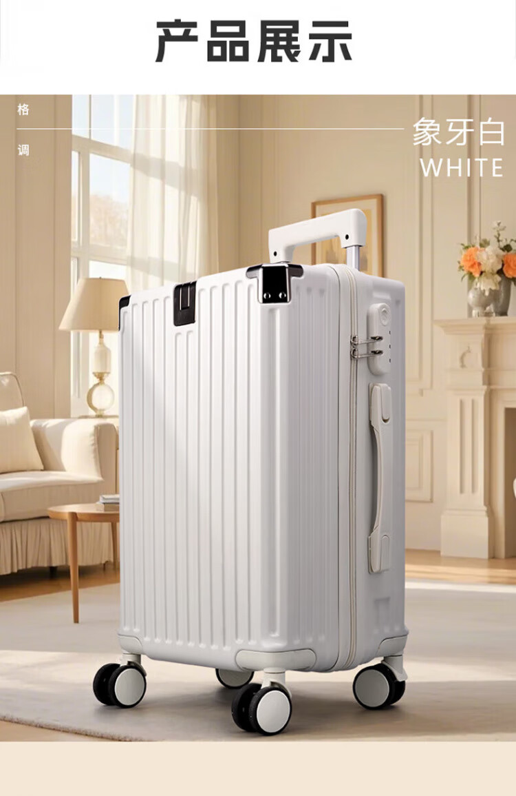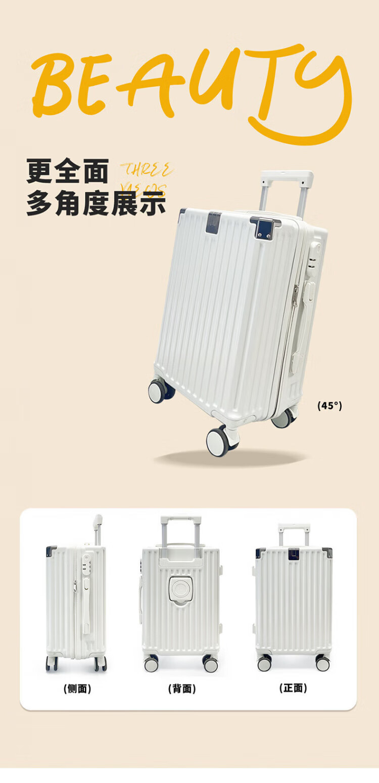 Bei Chuzhong suitcase 20-inch small trolley suitcase for students and women, suitable for airplanes, large-capacity men's travel password suitcase, ivory white, hook + cup holder + mobile phone holder, good-looking, lightweight and multi-functional, 20-inch cabin suitcase, suitable for short-distance business trips