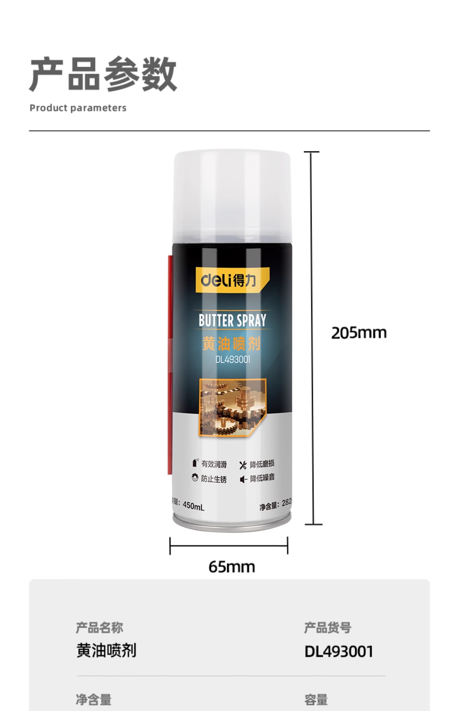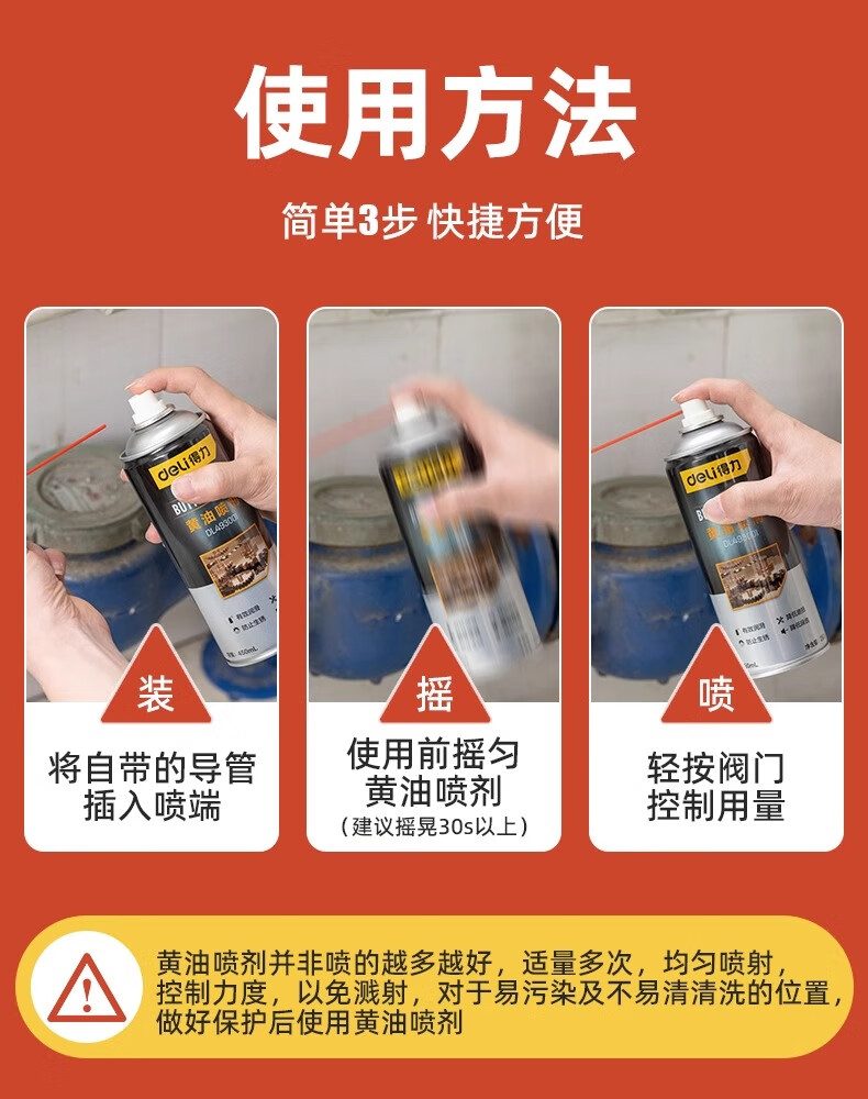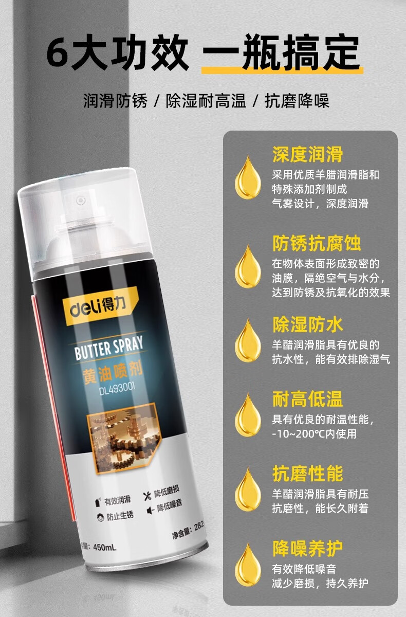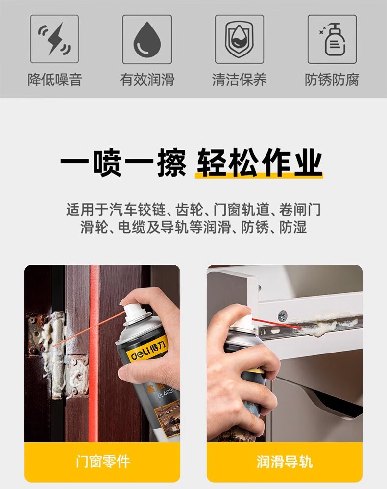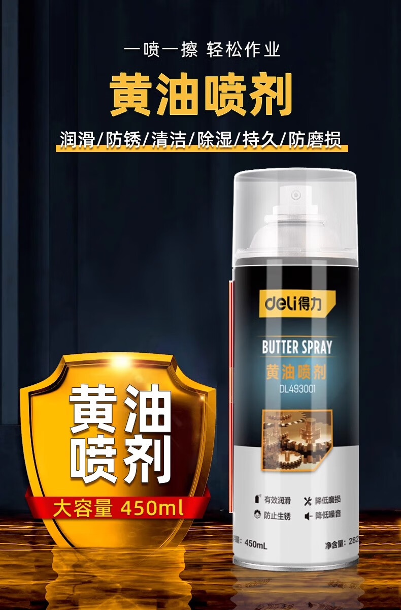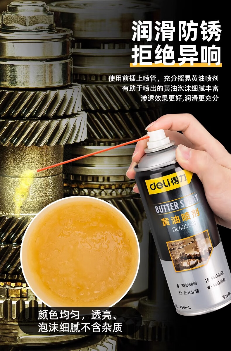 Deli butter spray door lock special lubricant anti-rust agent mechanical door window hinge abnormal noise lubricating grease track 1 bottle 450mL long-lasting lubrication professional anti-rust