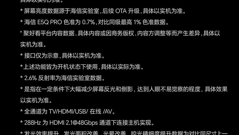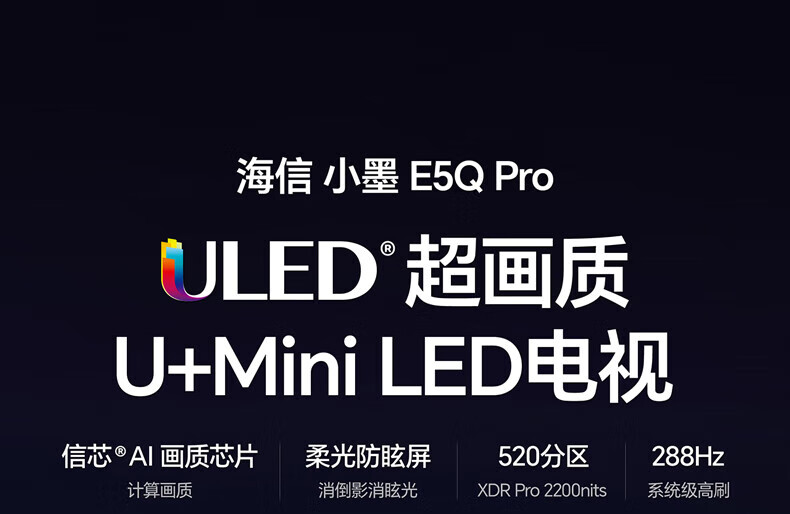 Hisense TV Xiaomo E5Q Pro 55-inch picture quality U+Mini LED signal core chip soft light anti-glare screen 288Hz high brush E5NPRO upgrade 55-inch