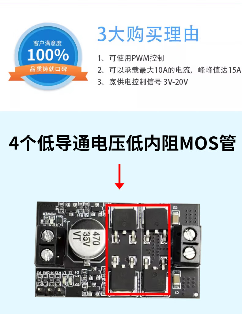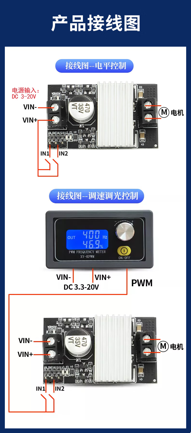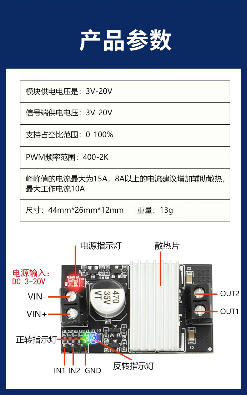 10A high power DC motor drive module forward and reverse PWM speed regulation, dimming, wide voltage and high current MC10 PWM DC motor speed regulator 3-20V 10A