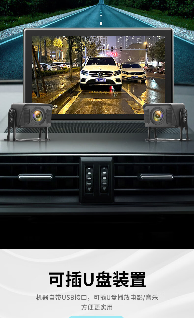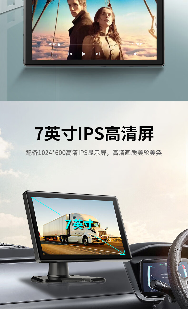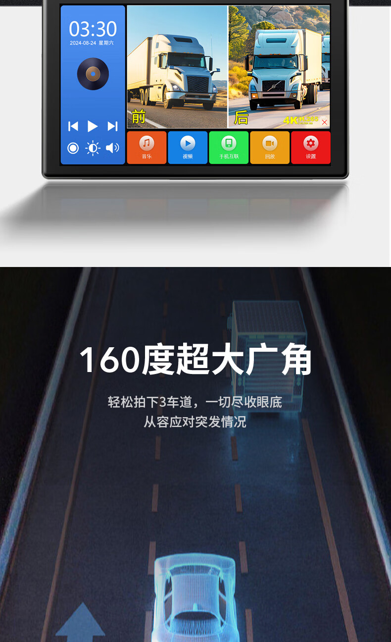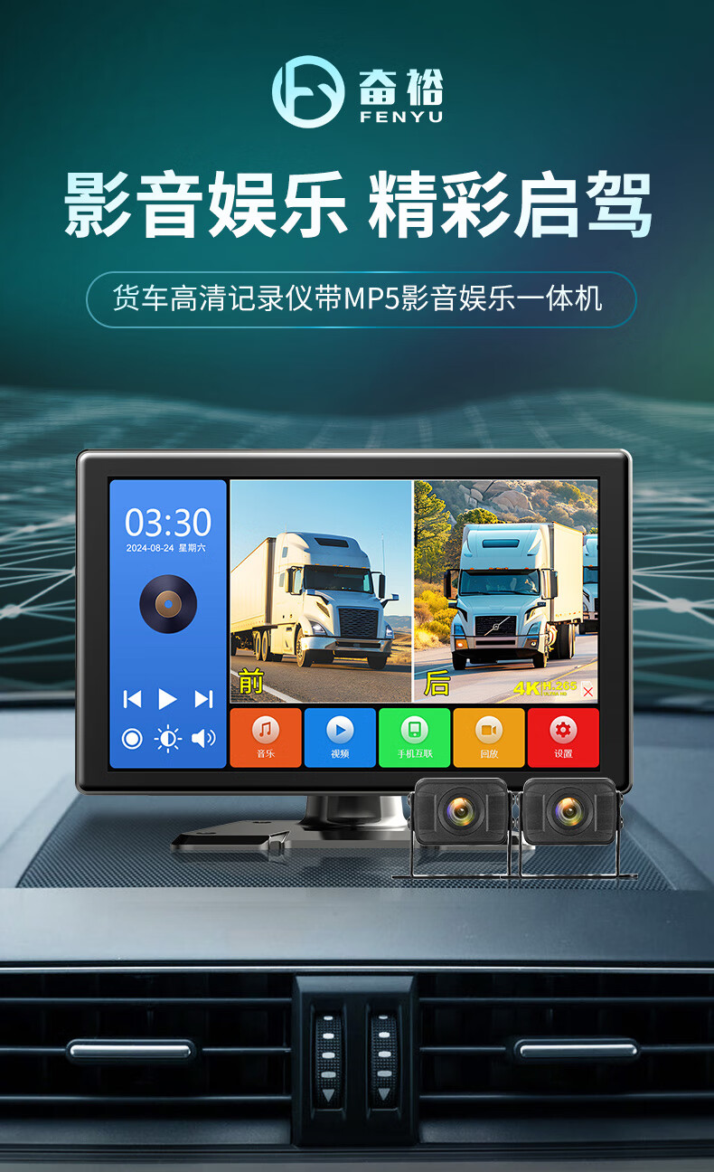 Fenyu truck two-way monitoring HD night vision driving recorder dual lens reversing image parking 12V24V all-in-one machine Package 2 7-inch dual lens + touch control + entertainment all in one (64G card)