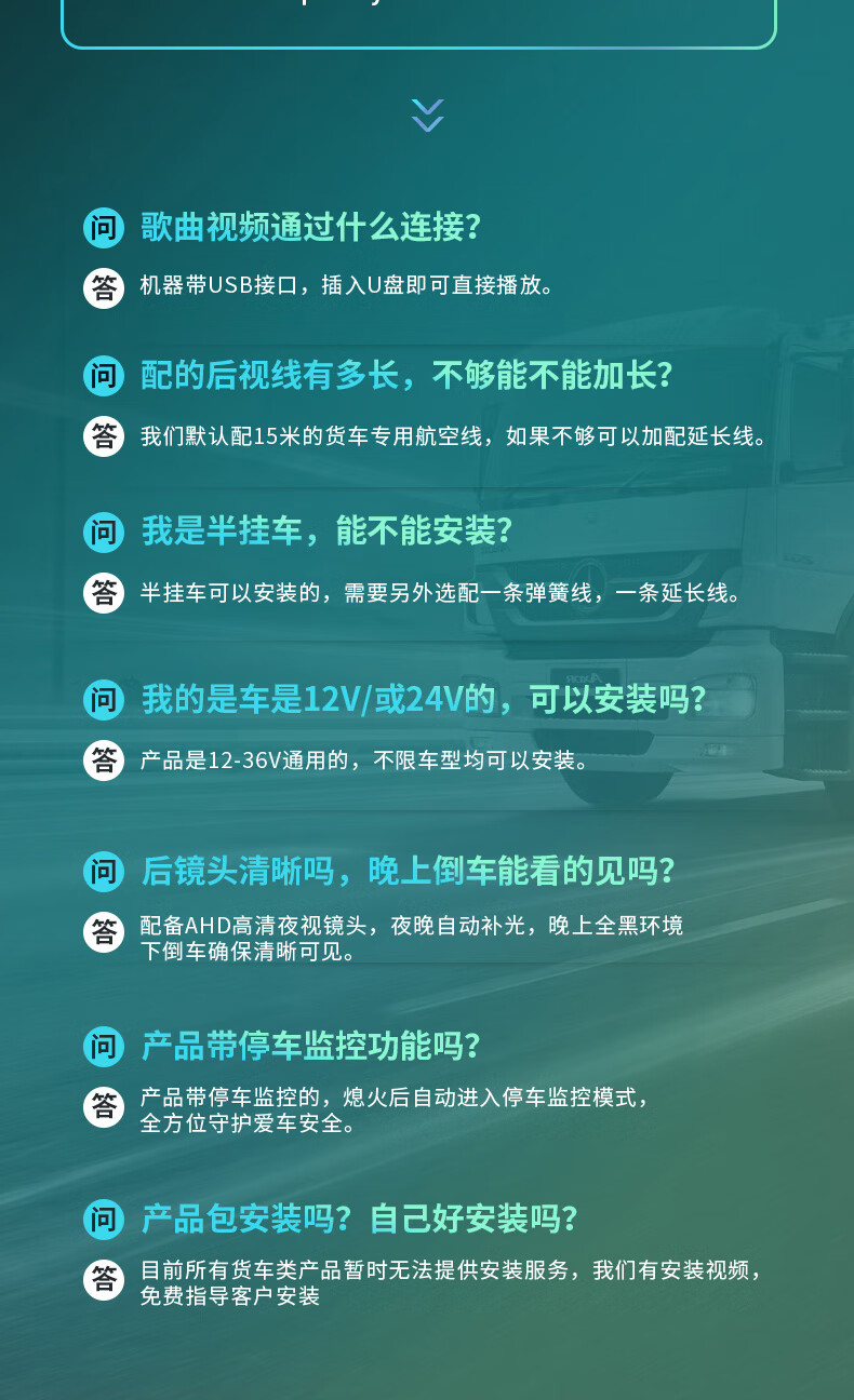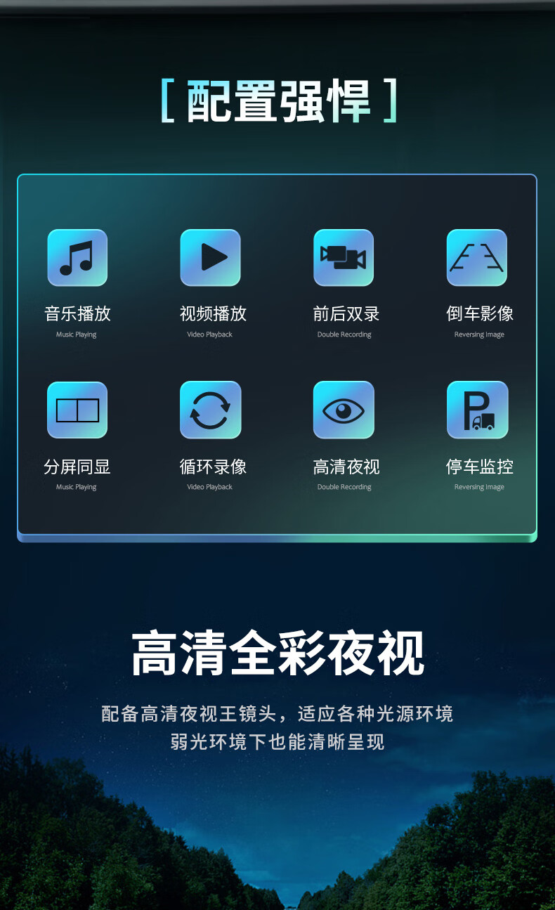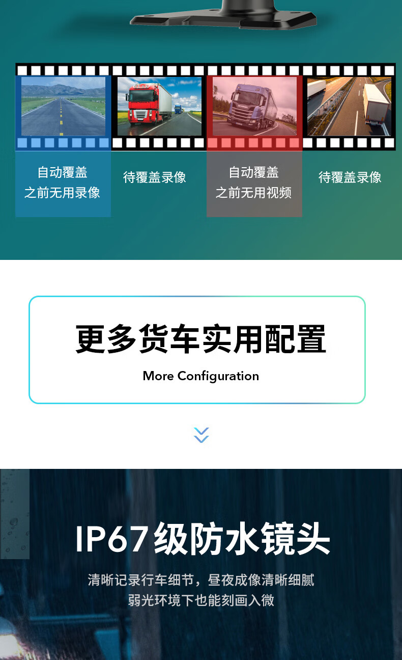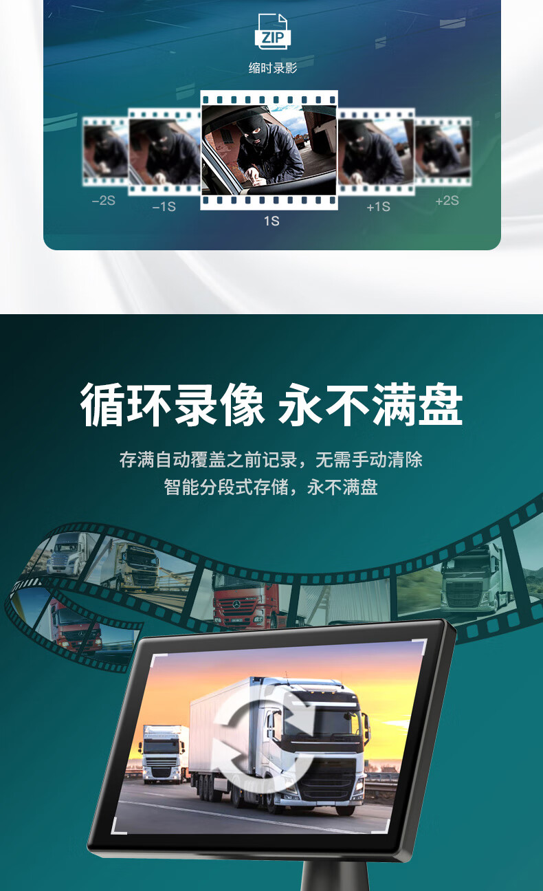 Fenyu truck two-way monitoring HD night vision driving recorder dual lens reversing image parking 12V24V all-in-one machine Package 2 7-inch dual lens + touch control + entertainment all in one (64G card)