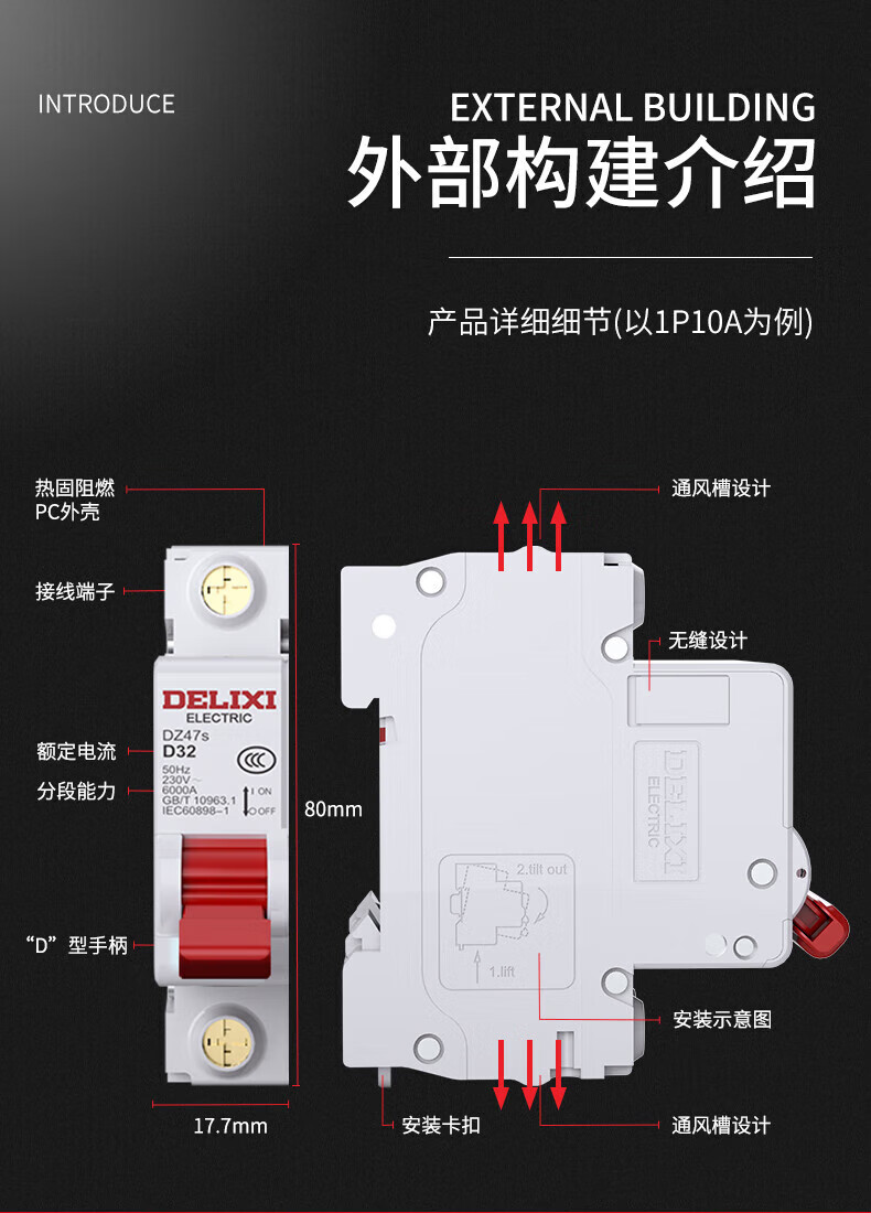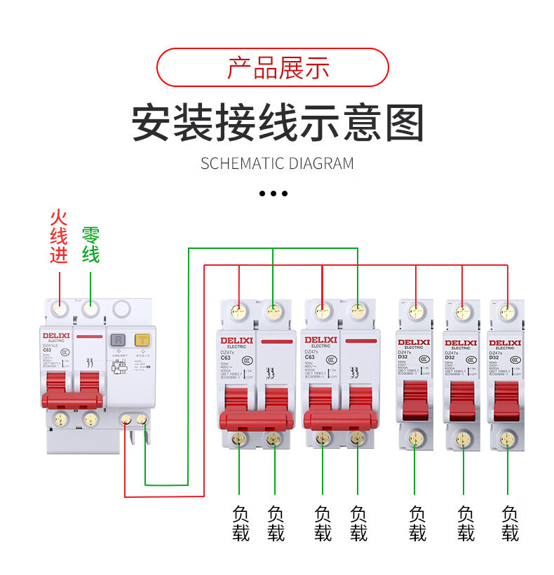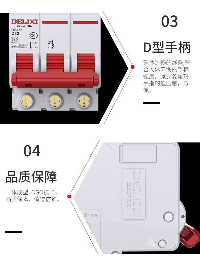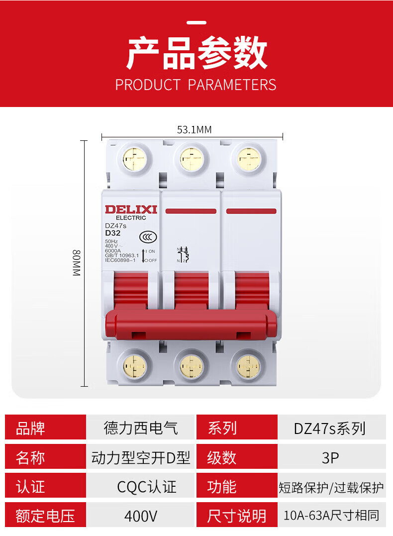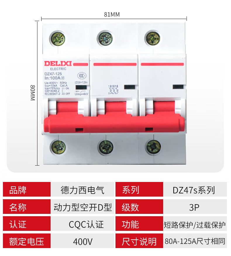Delixi Electric D-type air switch motor 3P circuit breaker D-type 3P 63A