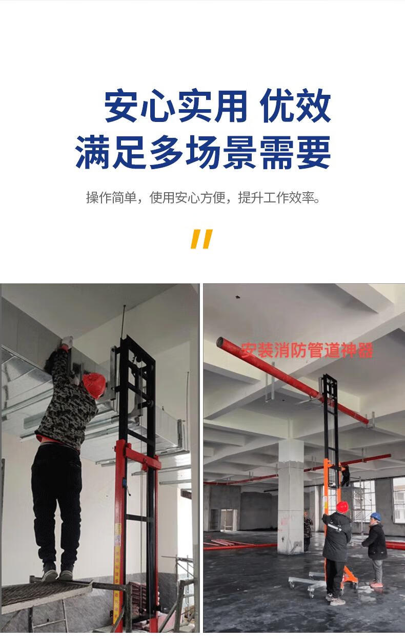 Fire pipe lift ventilation pipe installation lift electric lifting platform can be equipped with six-wheel 220v remote control, height from 2.7 meters to 5 meters, load capacity 300KG