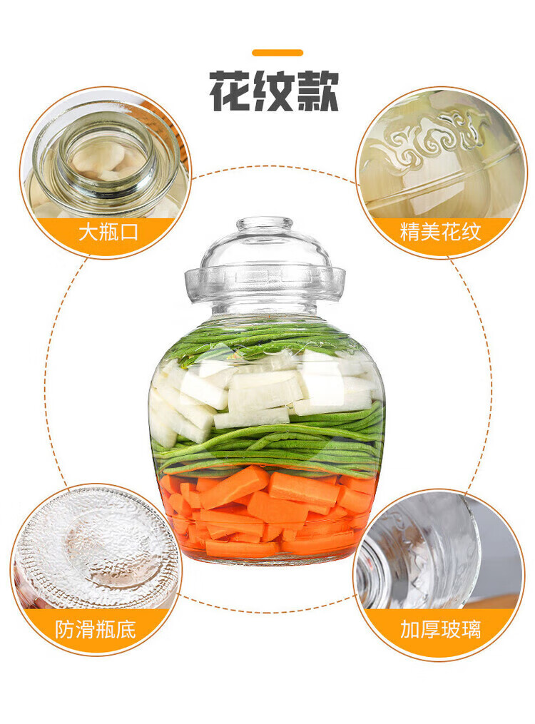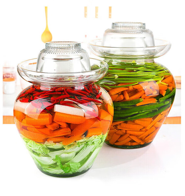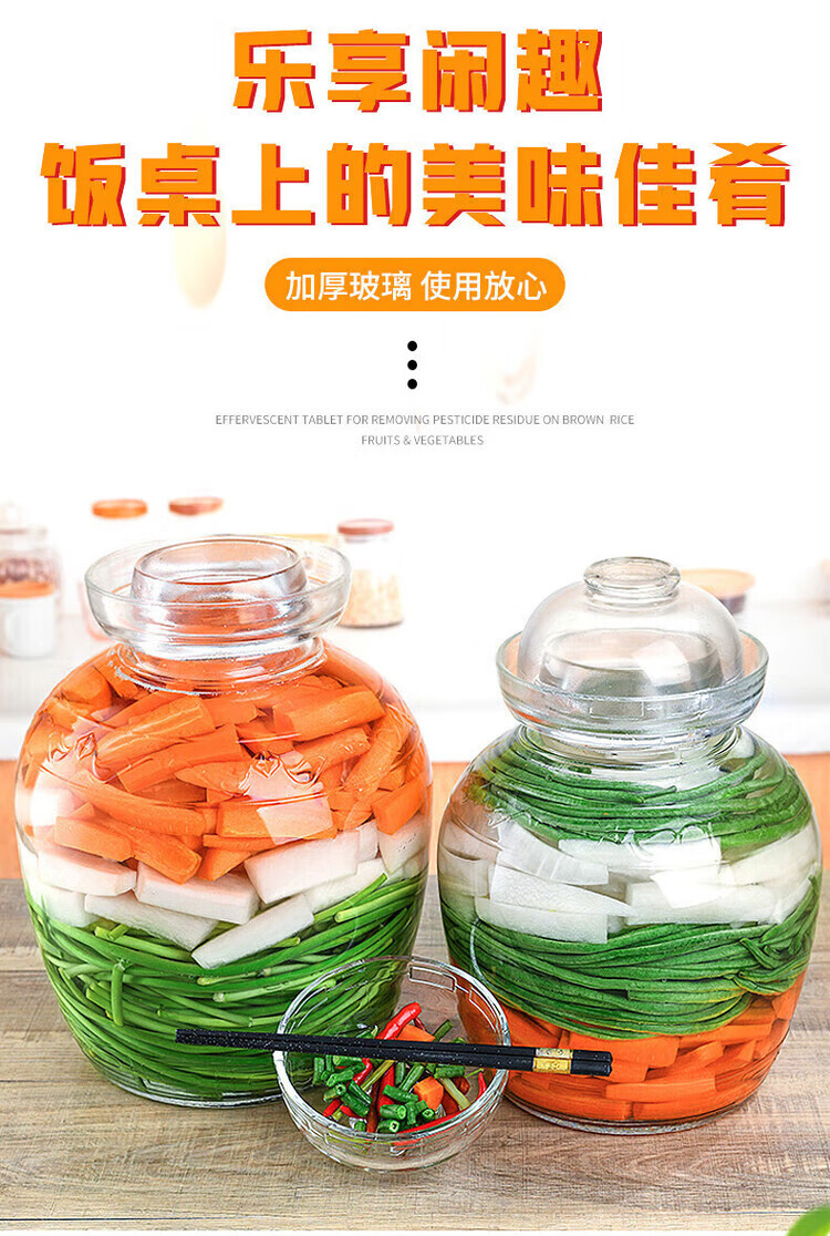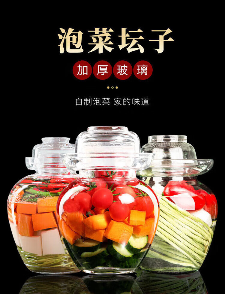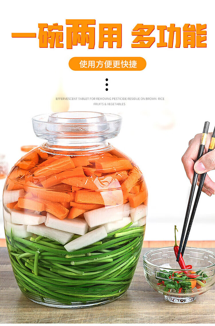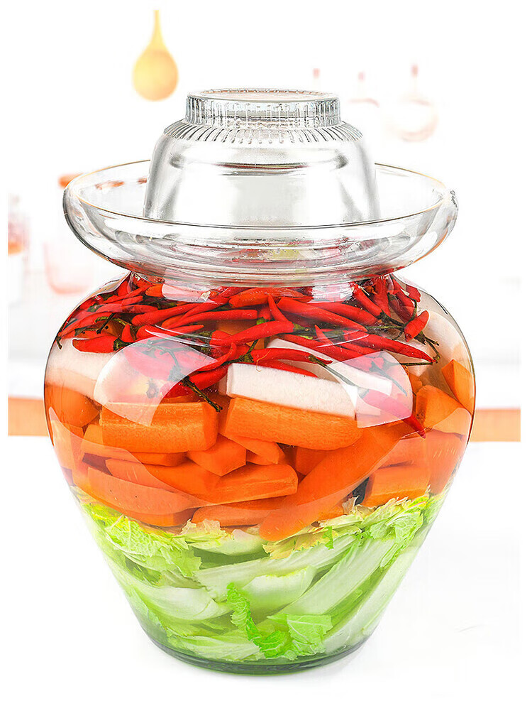 Harvest Sichuan pickle jar household glass sealed jar pickles pickle jar pickled chili sauce jar old-fashioned pickle jar water capacity 5 catties + inner lid + pickle clip + cotton brush 2.5L