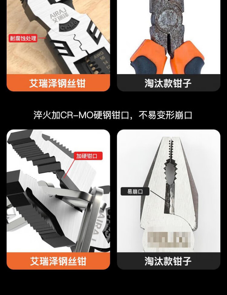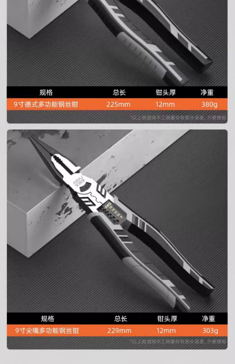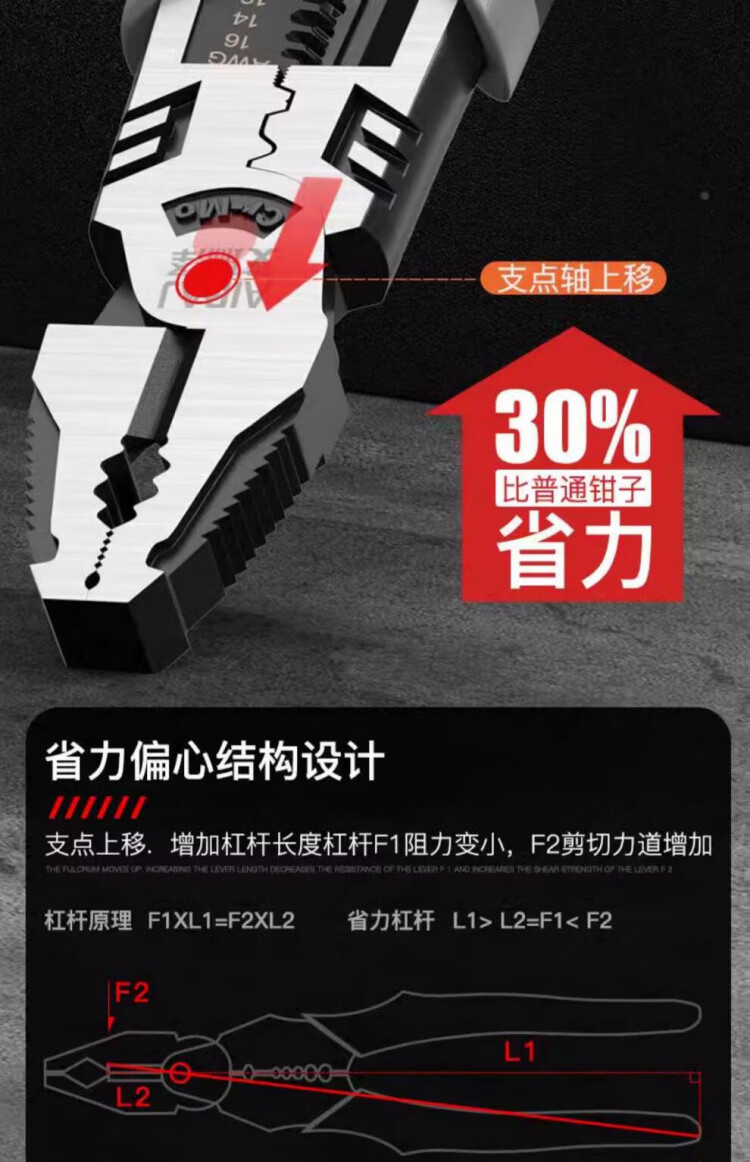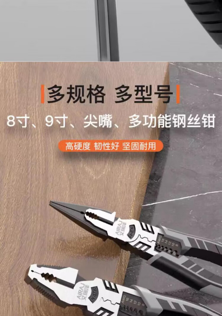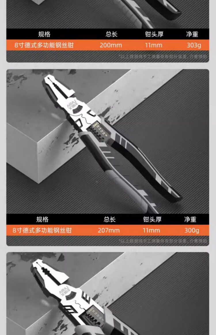 JCZS German wire pliers for electricians, industrial-grade stainless steel vise, multi-functional household labor-saving high-hardness pliers, 8-inch multi-function wire pliers, saving 30% labor