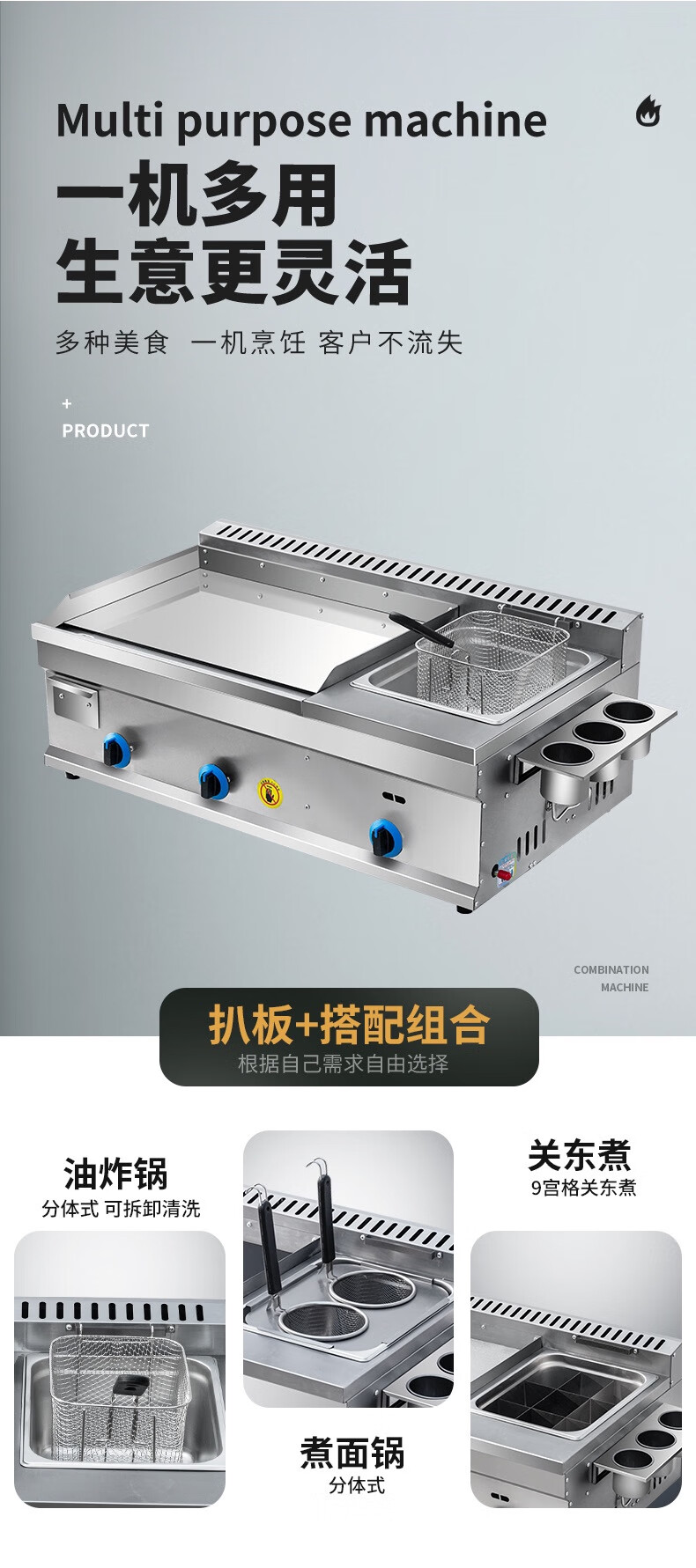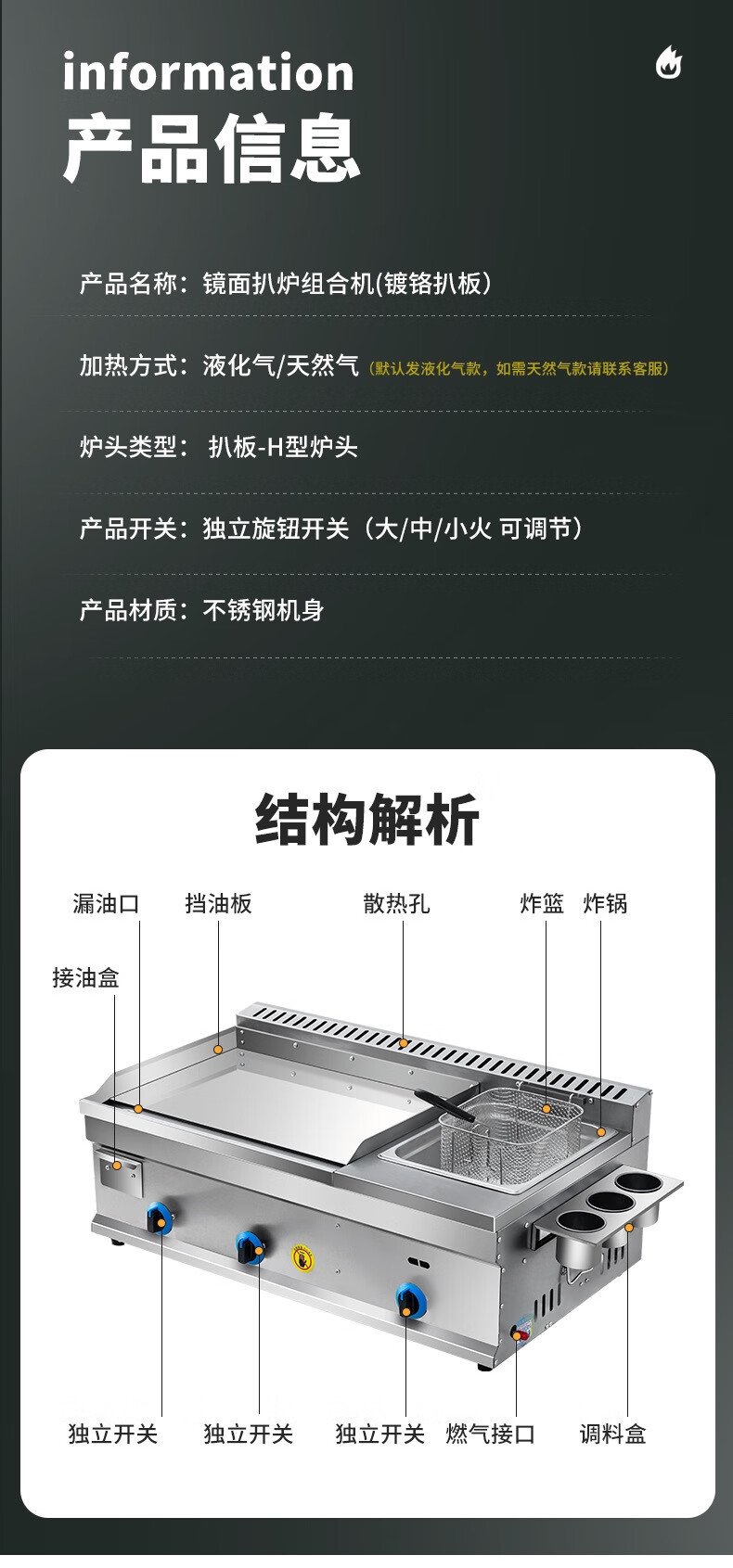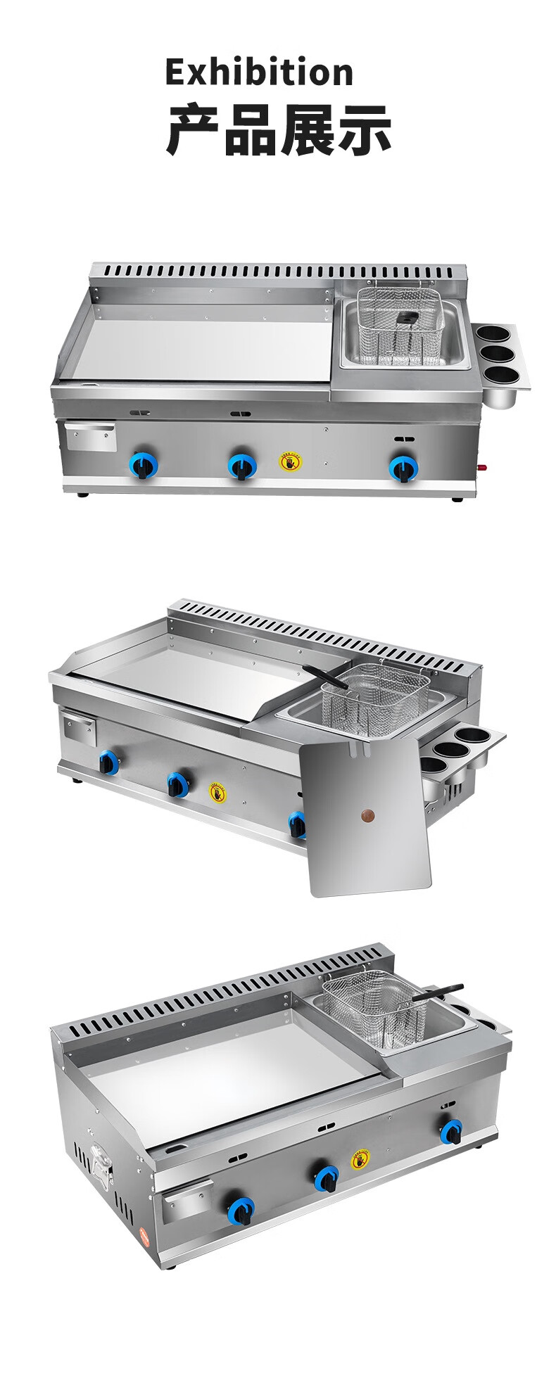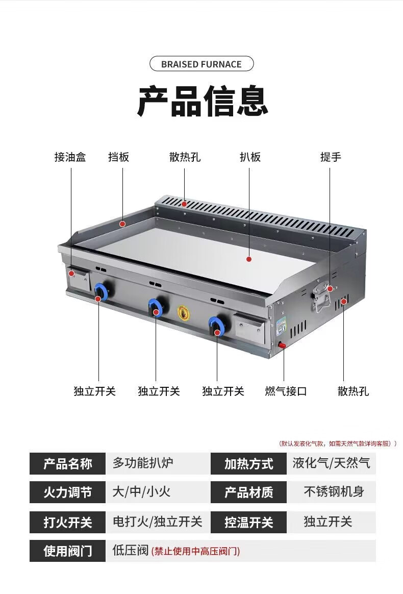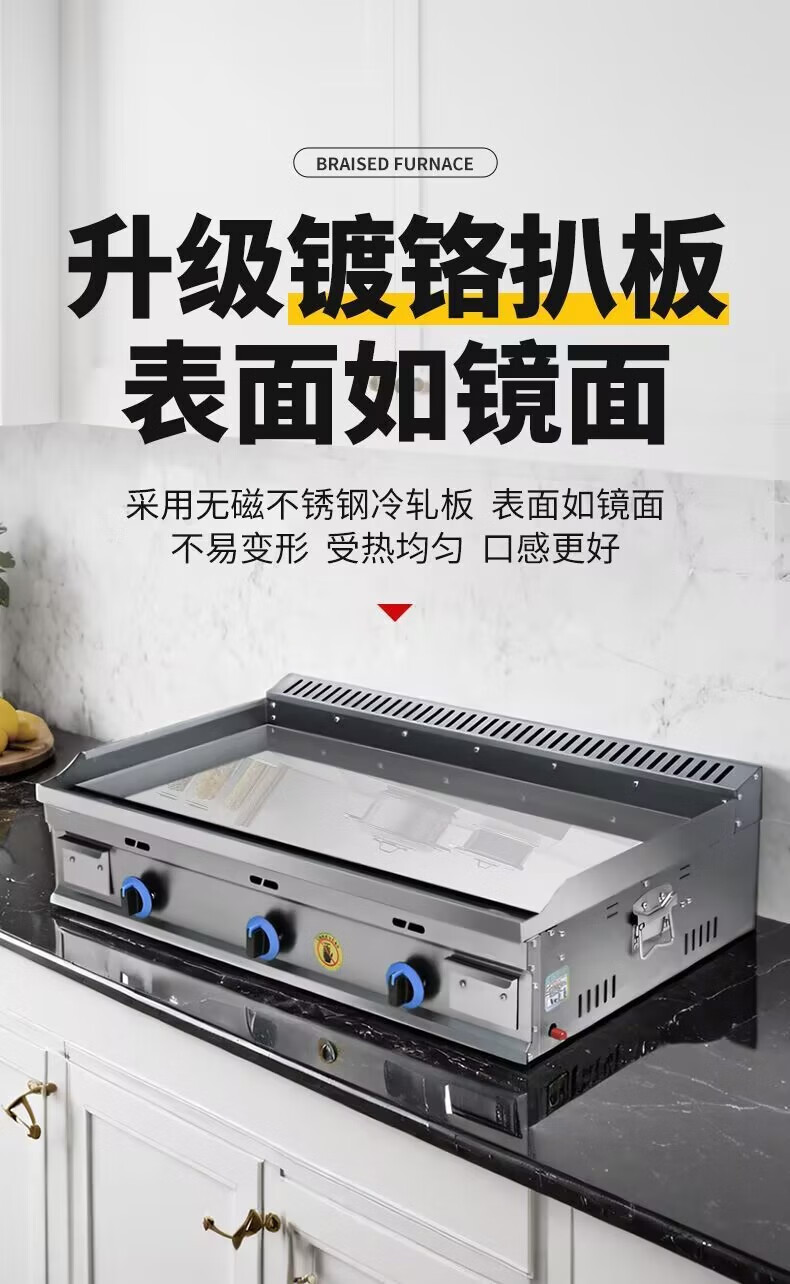 Gas griddle commercial mirror chrome plated Teppanyaki Teppanyaki squid fried rice grilled cold noodles hand cake machine stall machine Mirror chrome plated 55 type single pot + Oden Liquefied gas/natural gas (default is liquefied gas)