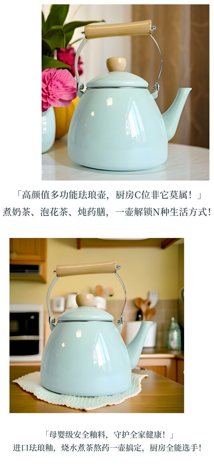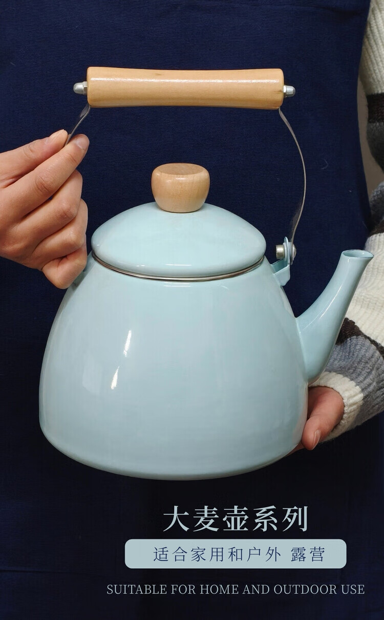 2.5L Japanese solid color enamel barley pot with lid enamel kettle milk tea pot high temperature resistant induction cooker 2.5L aromatic flower barley pot 2500ml