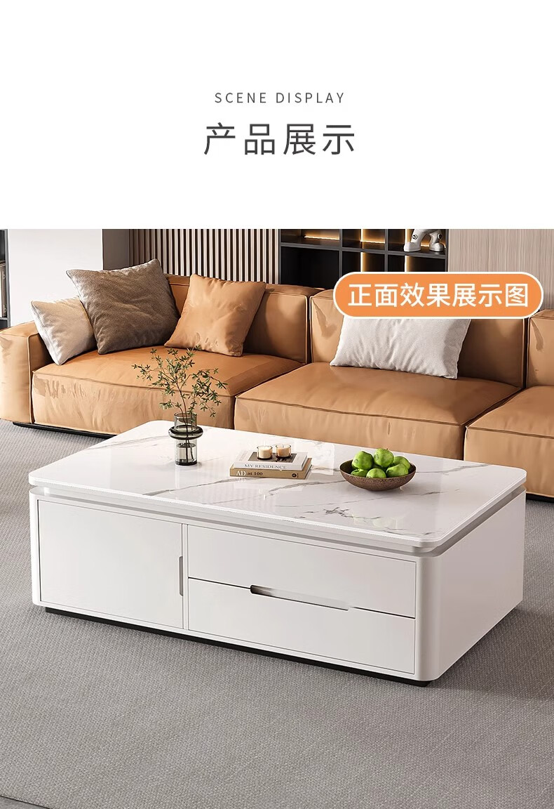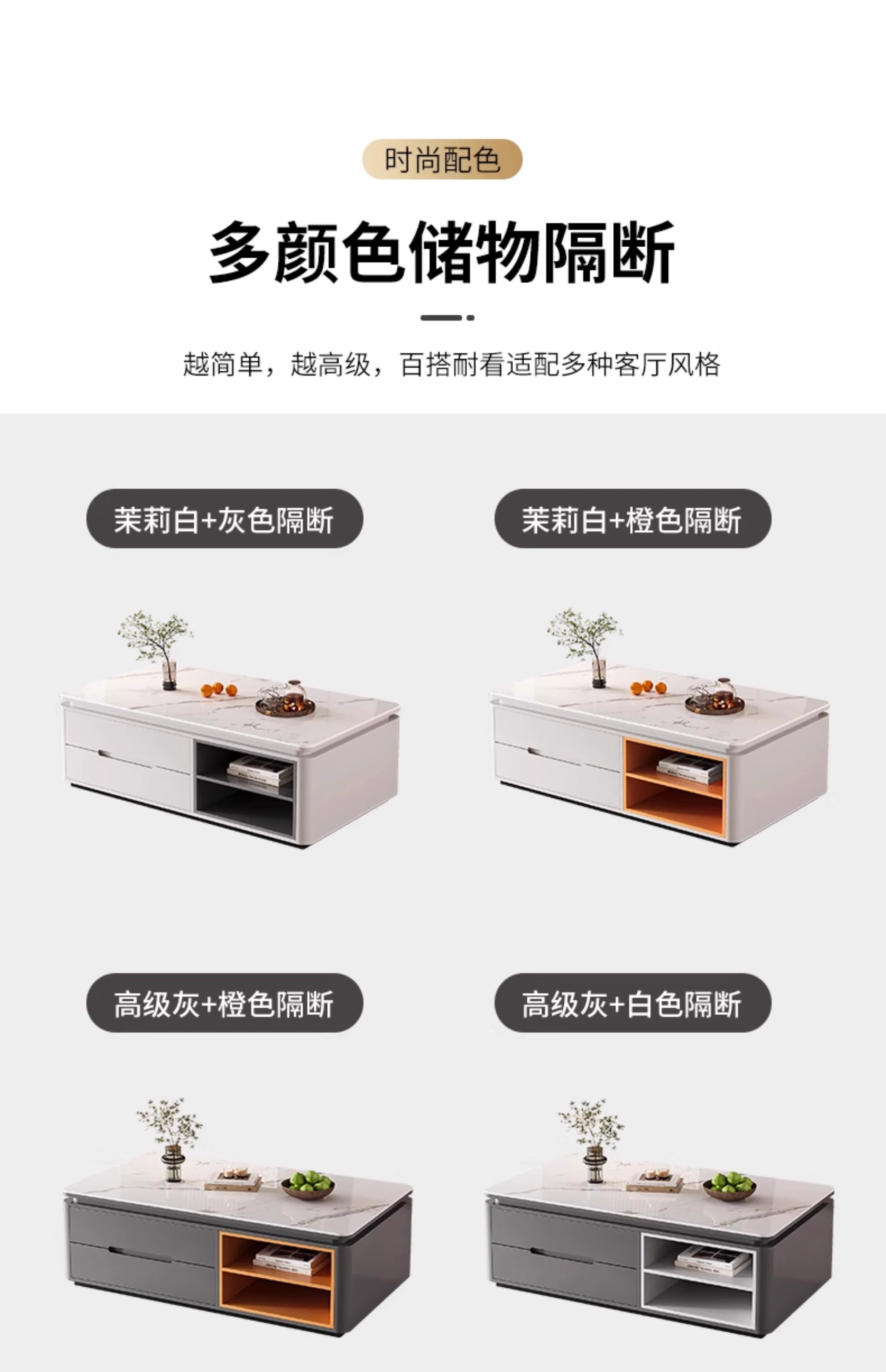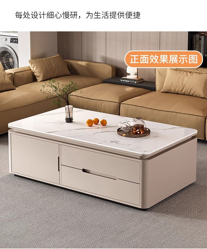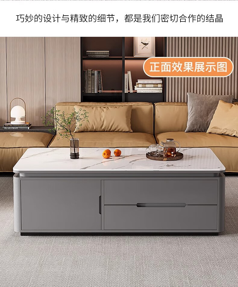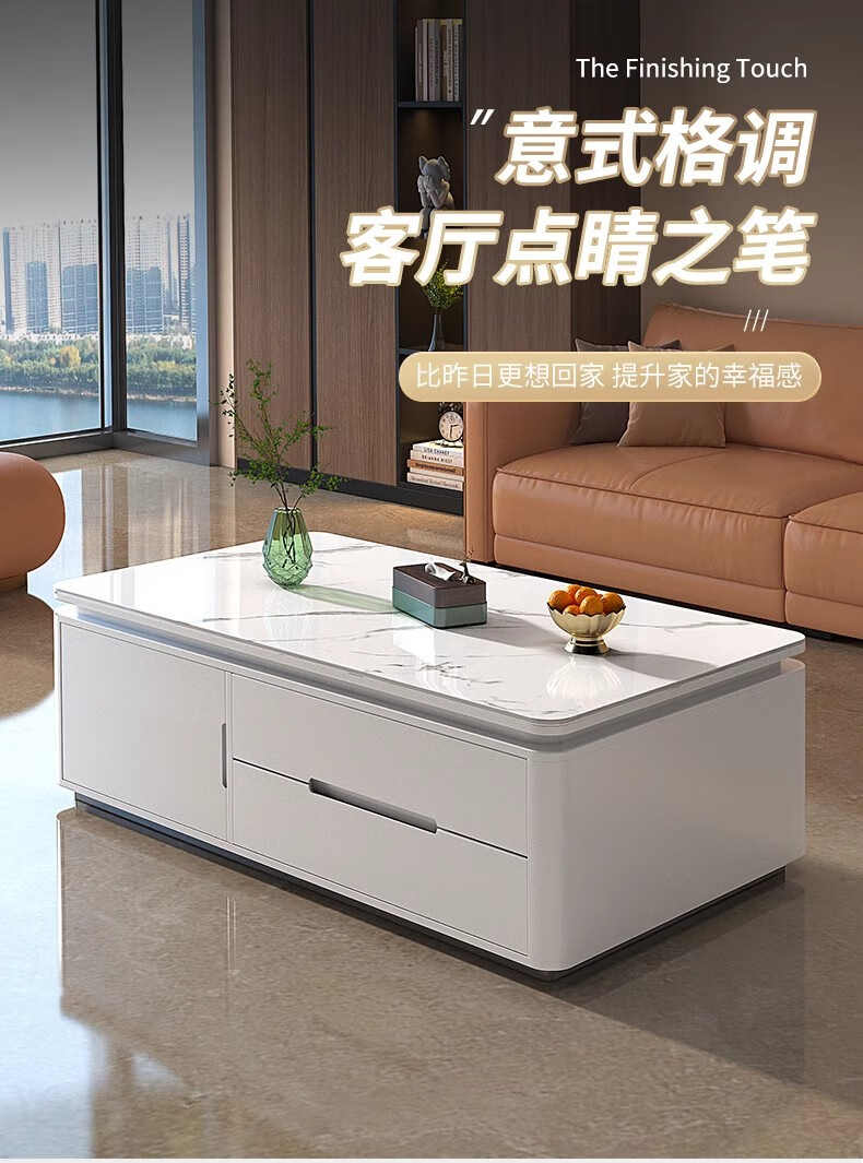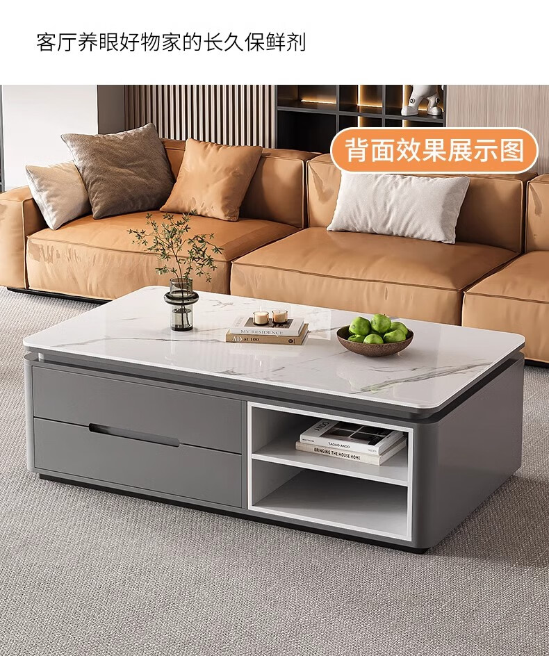 Songbaike solid wood coffee table TV cabinet combination 2026 new light luxury high-end small apartment living room home slate coffee table table 1.2 meters coffee table white with gray partition