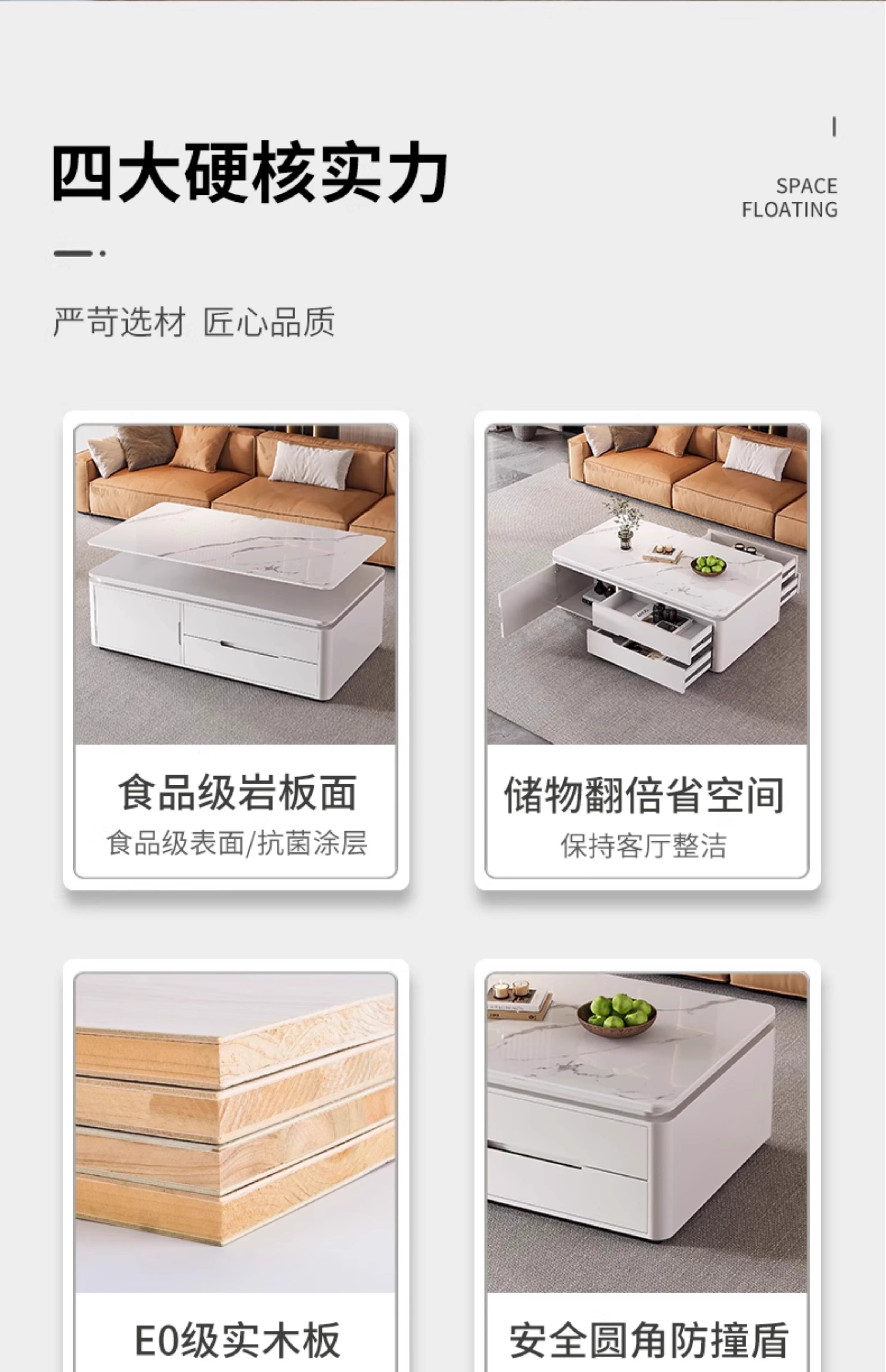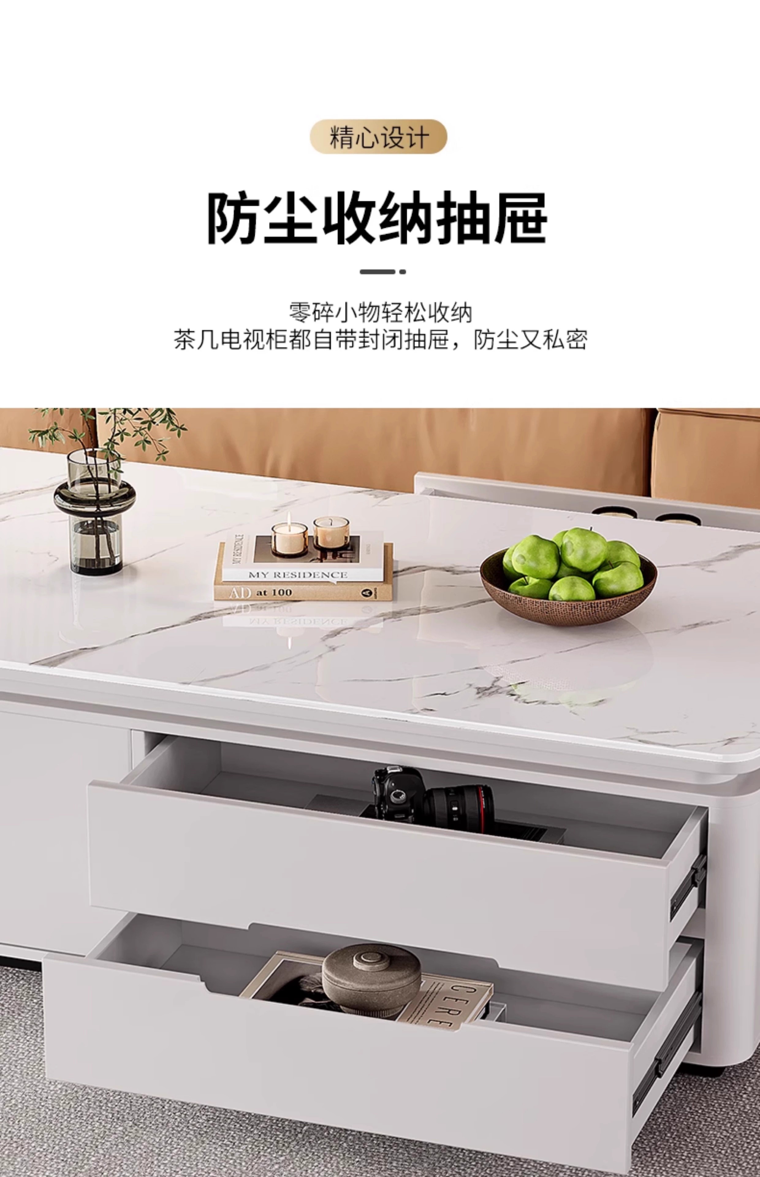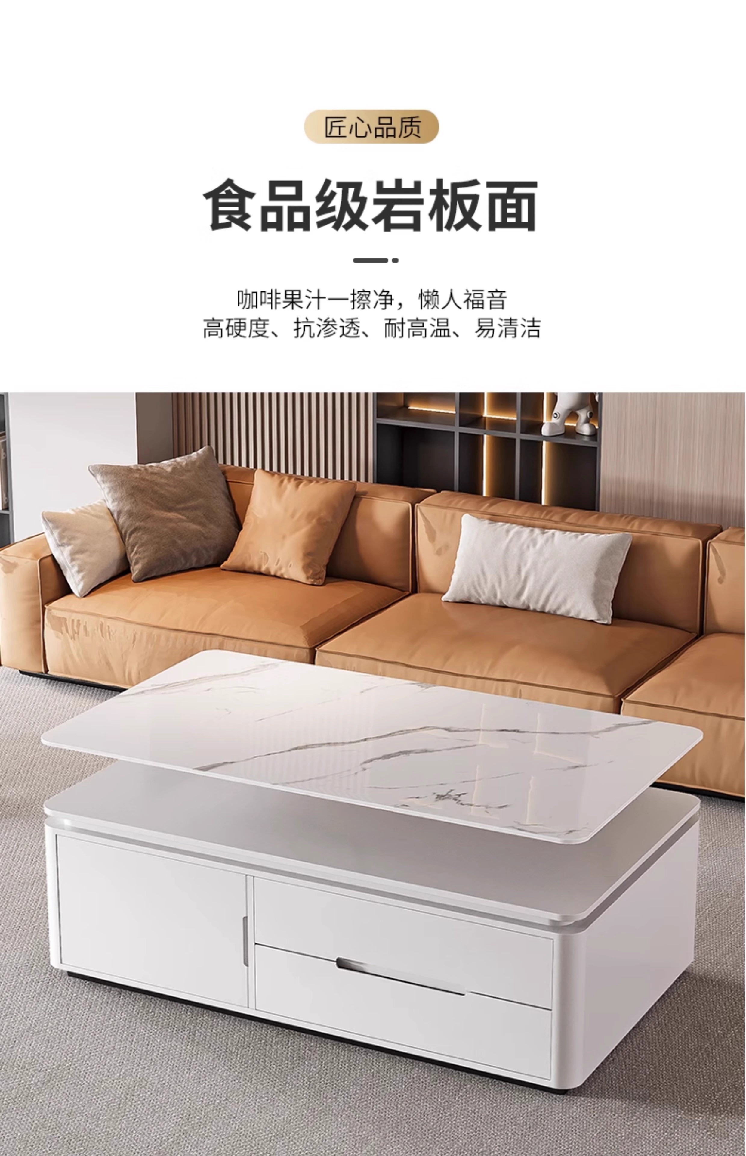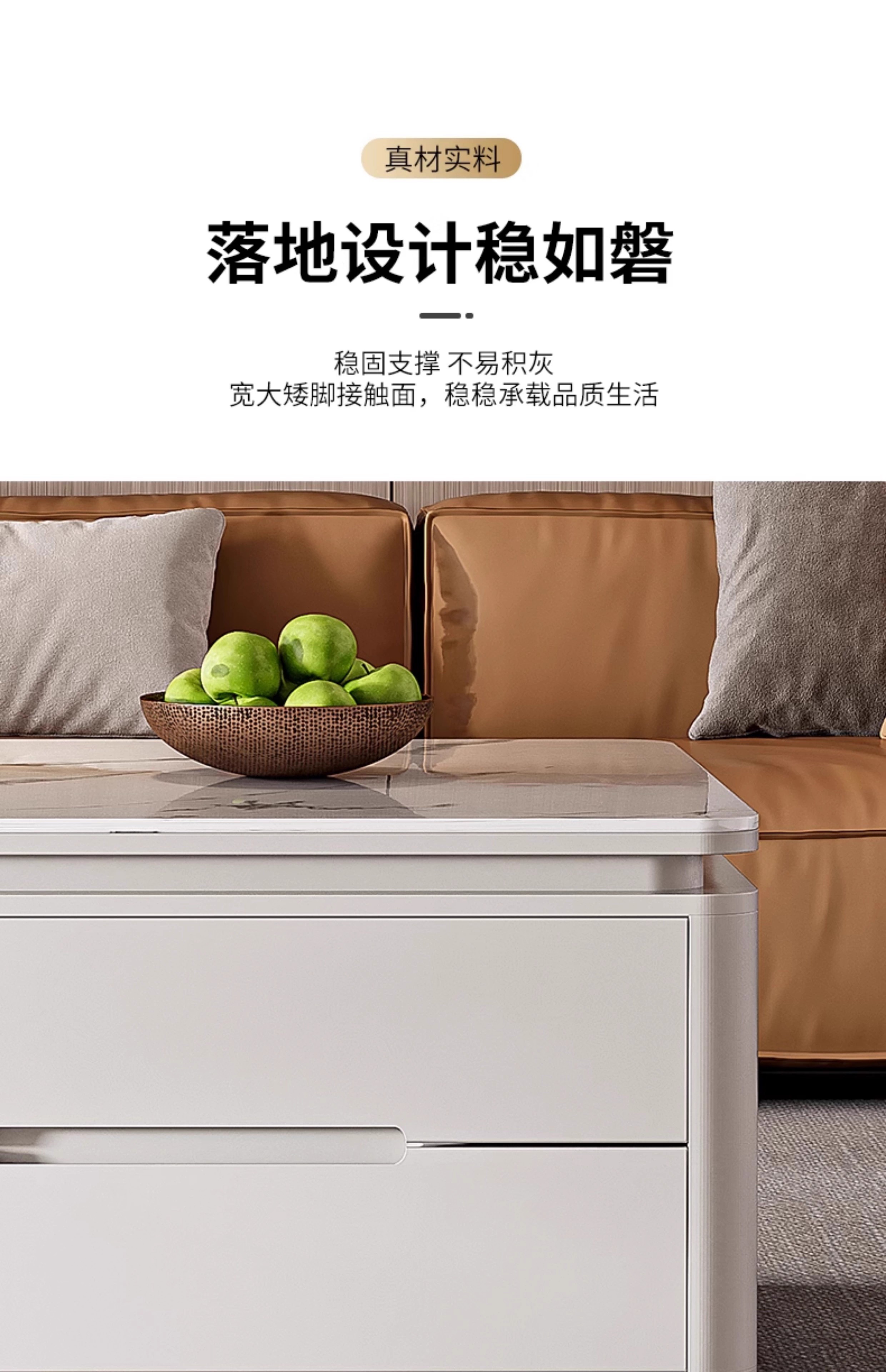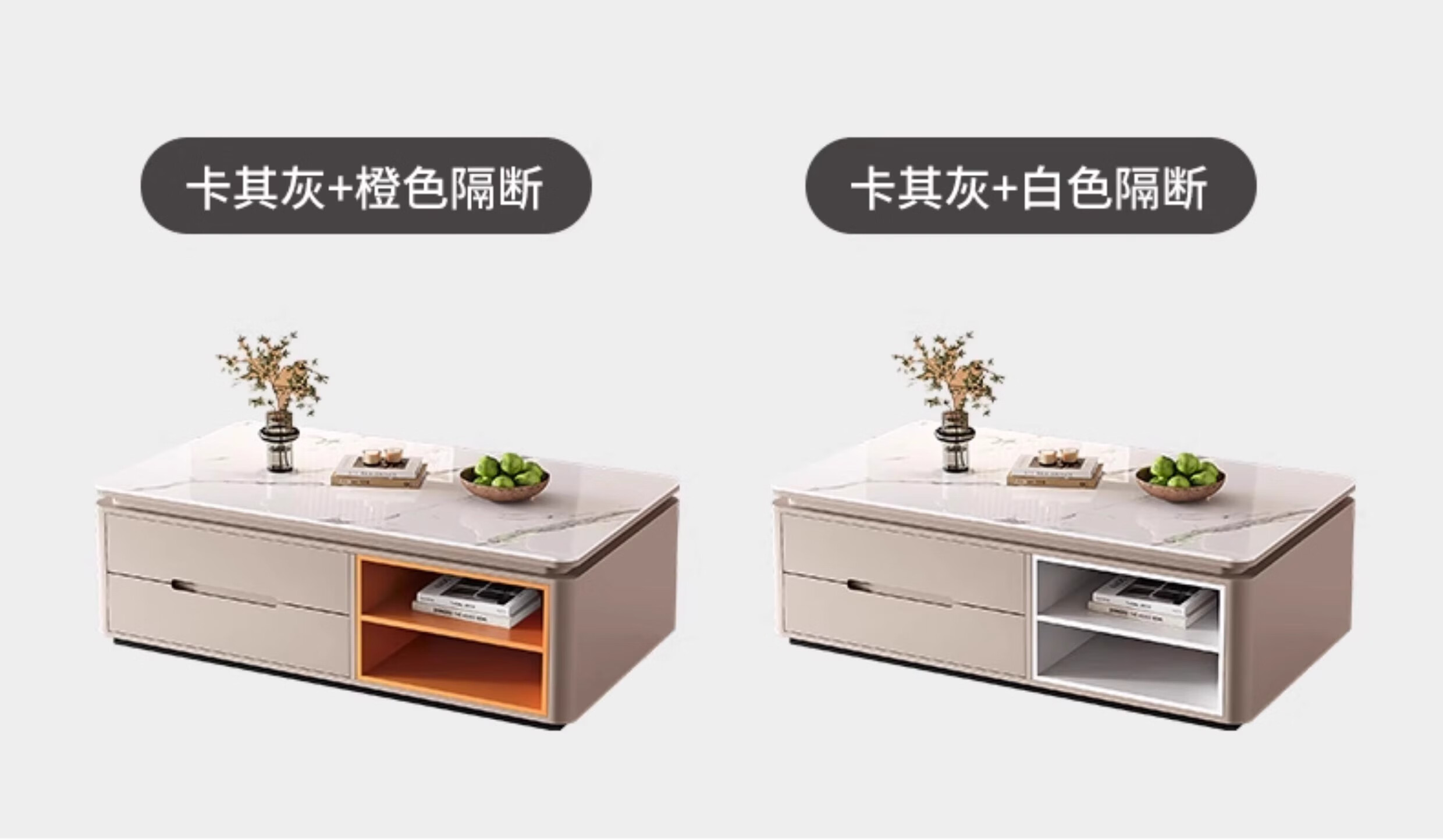 Songbaike solid wood coffee table TV cabinet combination 2026 new light luxury high-end small apartment living room home slate coffee table table 1.2 meters coffee table white with gray partition