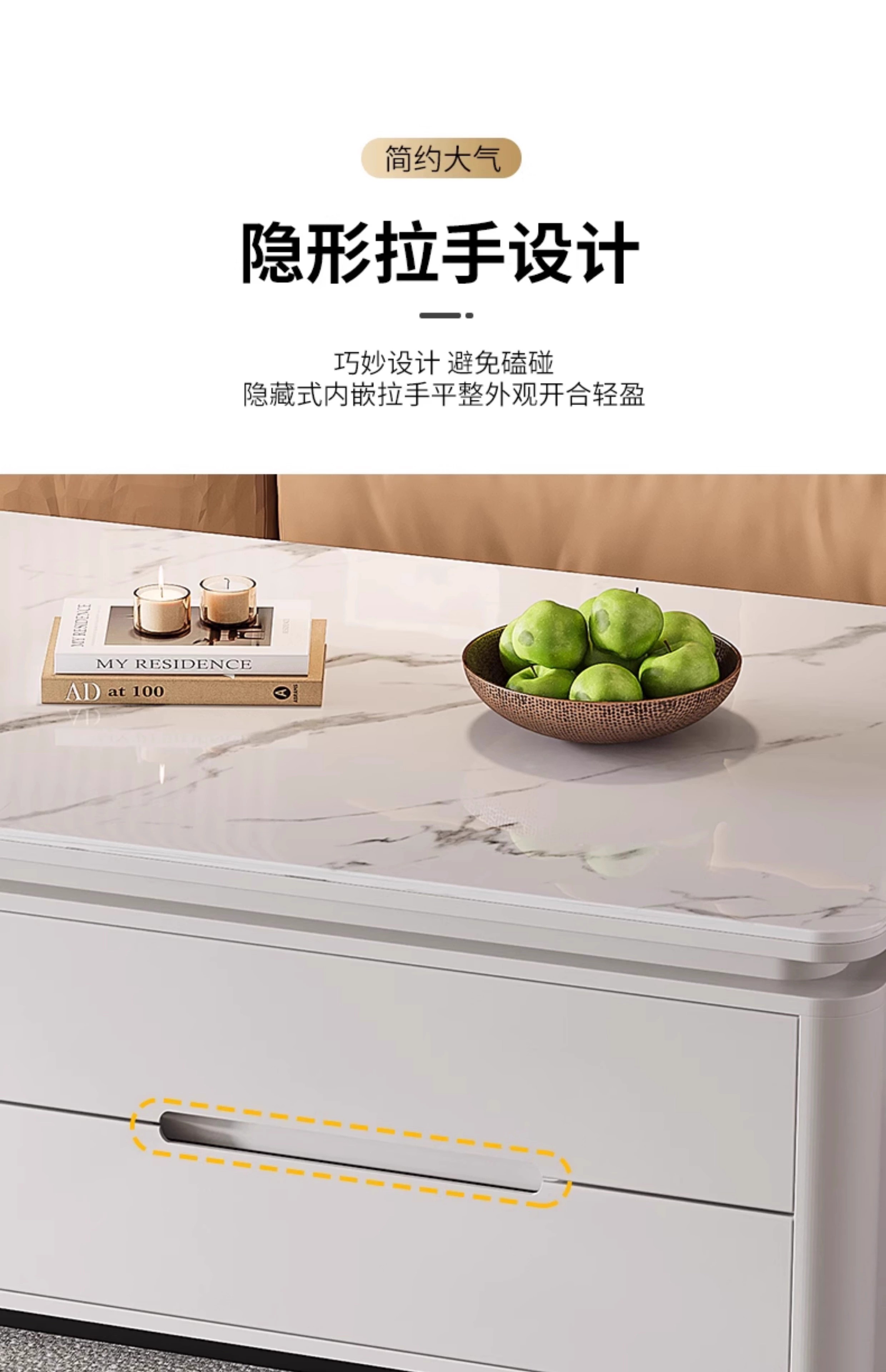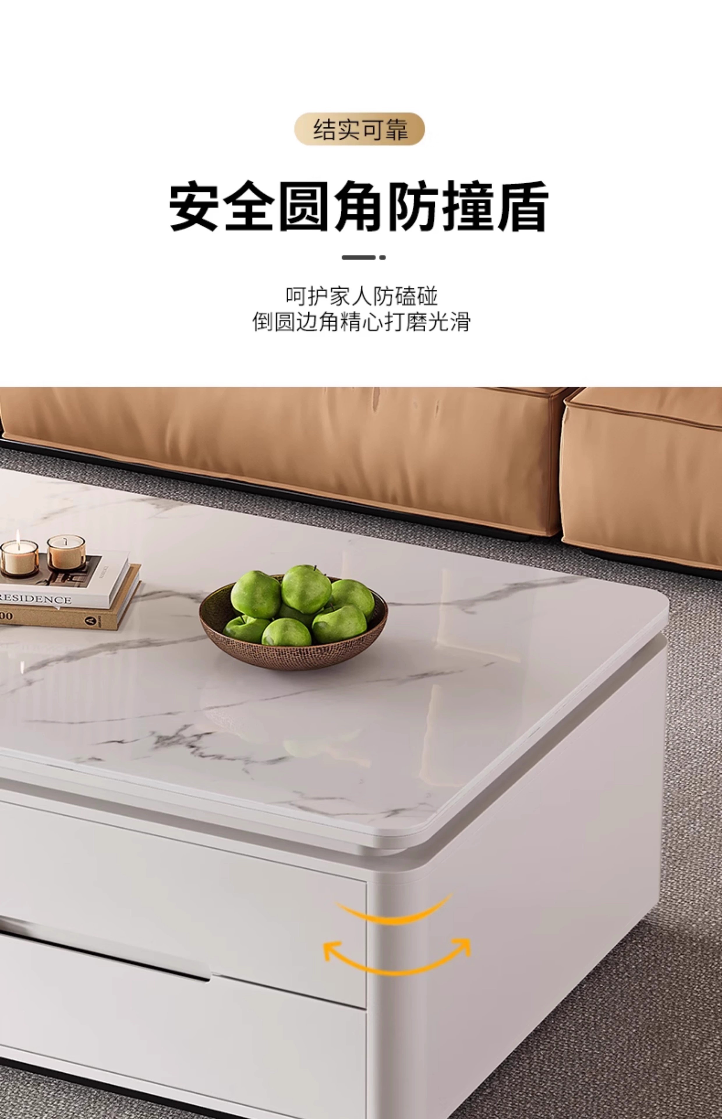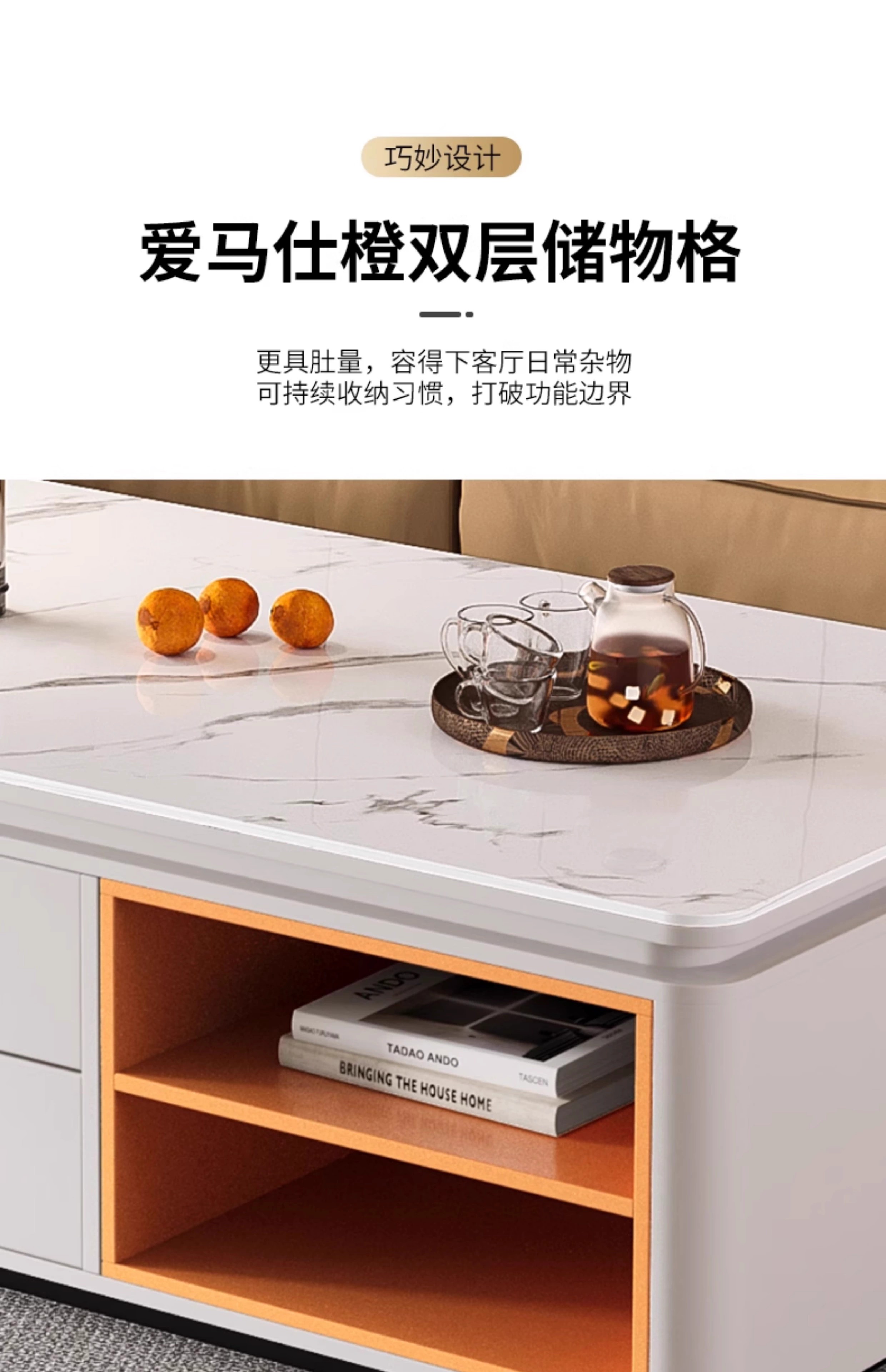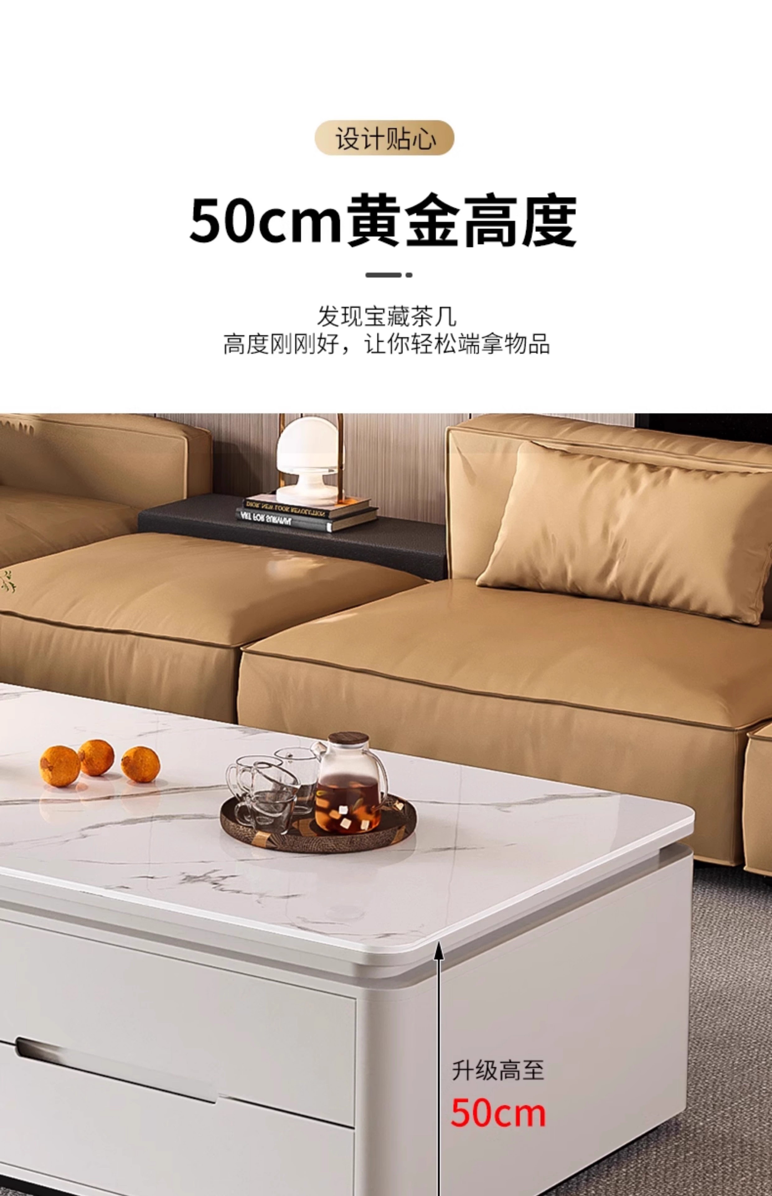 Songbaike solid wood coffee table TV cabinet combination 2026 new light luxury high-end small apartment living room home slate coffee table table 1.2 meters coffee table white with gray partition