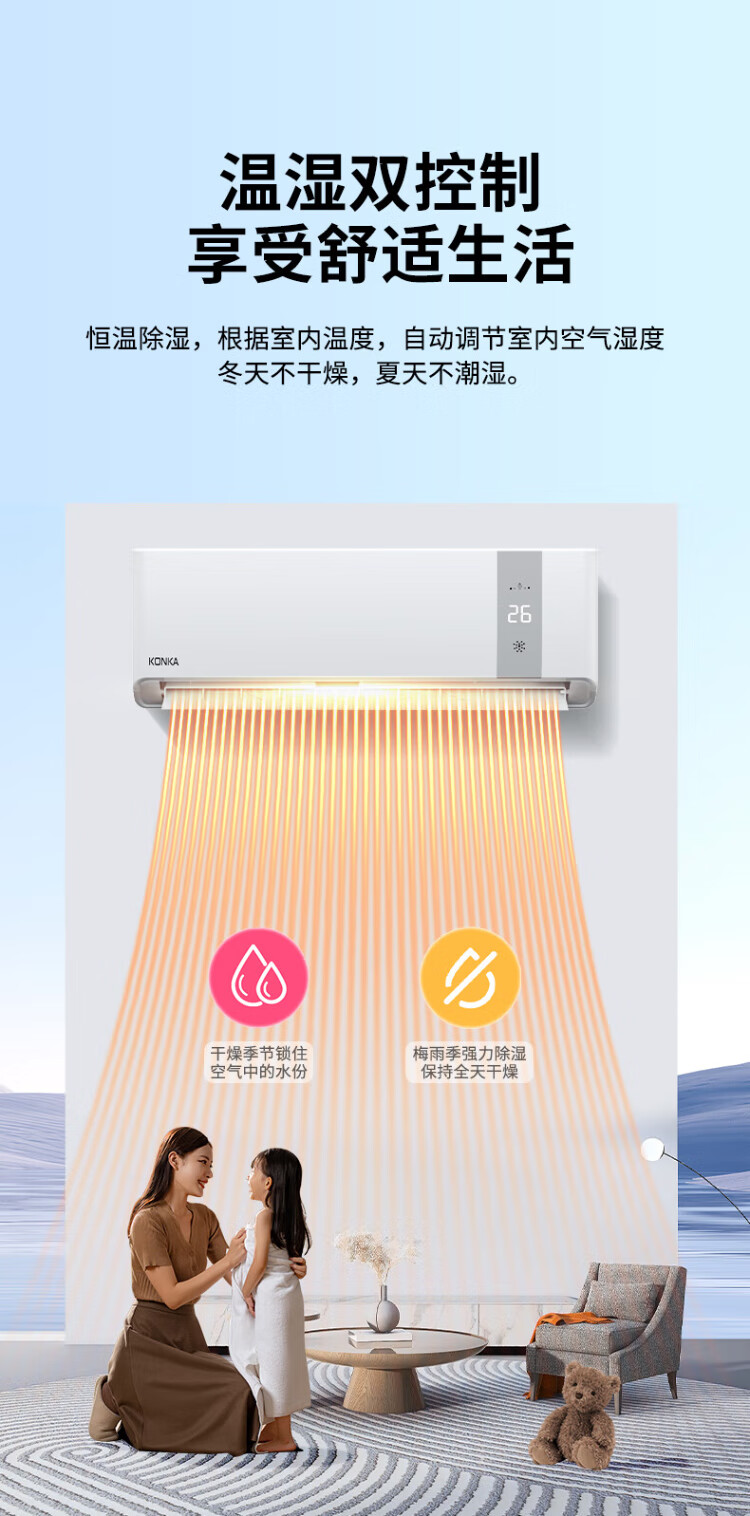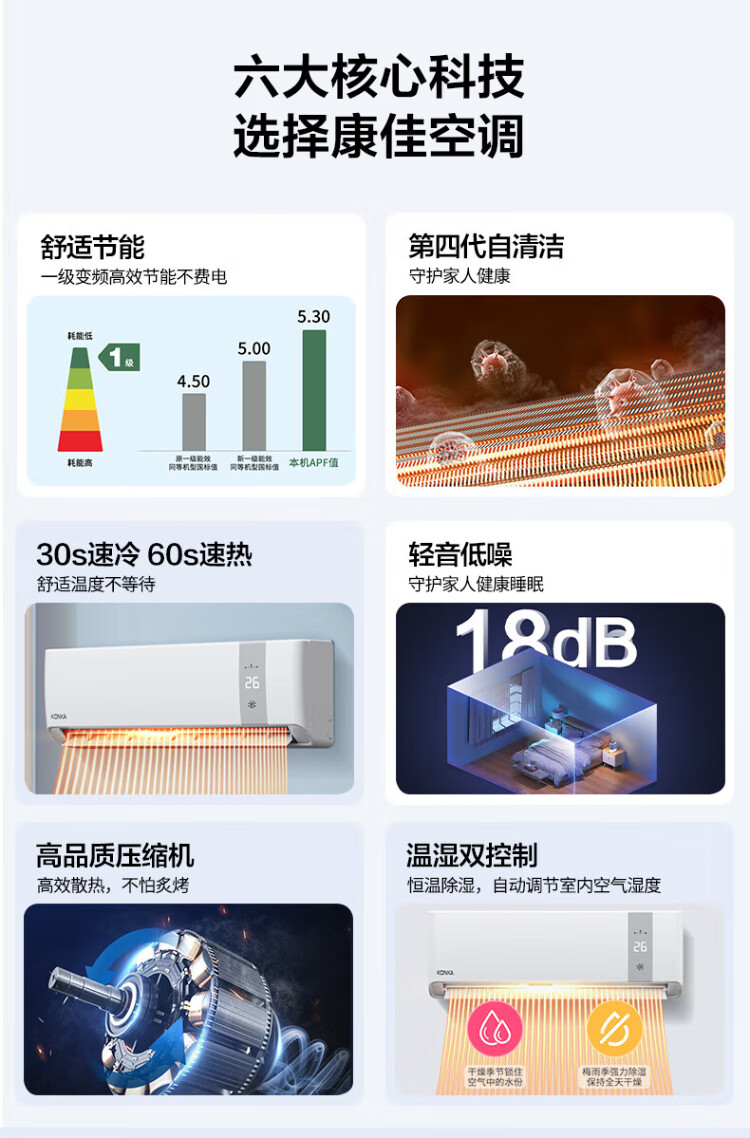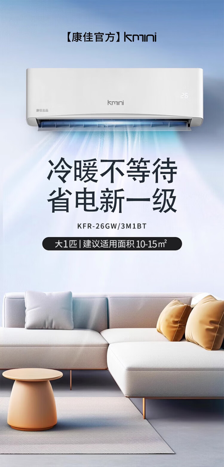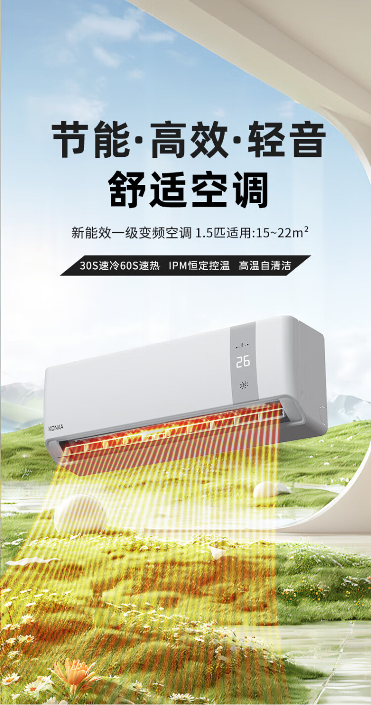 KONKA air conditioner 1 hp/1.5 hp/2 hp, variable frequency heating and cooling, first-class energy efficiency, pure copper tube, old for new, independent dehumidification, energy saving, household commercial wall-mounted air conditioner, KMINI large 1.5 hp, first-class energy efficiency, saving 30% electricity