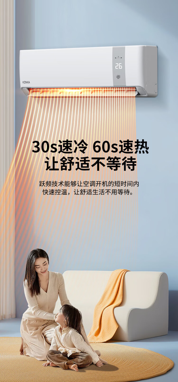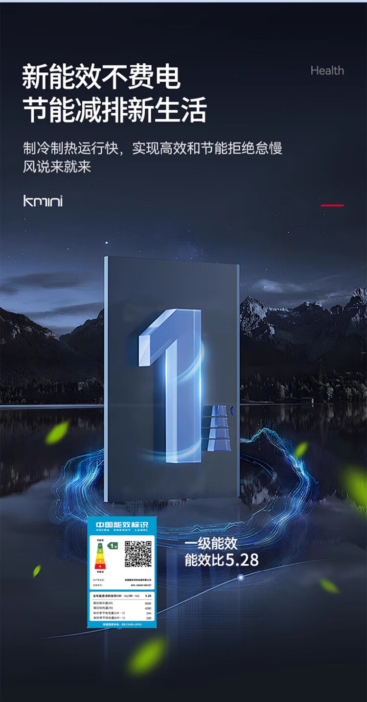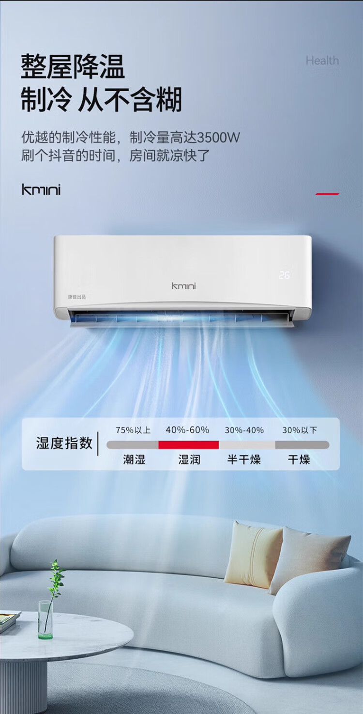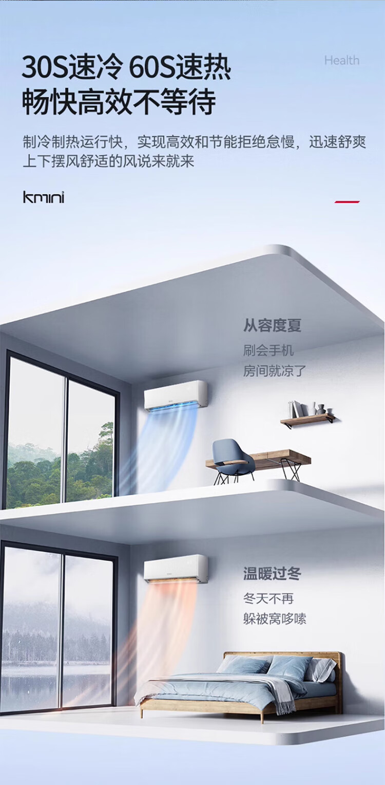 KONKA air conditioner 1 hp/1.5 hp/2 hp, variable frequency heating and cooling, first-class energy efficiency, pure copper tube, old for new, independent dehumidification, energy saving, household commercial wall-mounted air conditioner, KMINI large 1.5 hp, first-class energy efficiency, saving 30% electricity