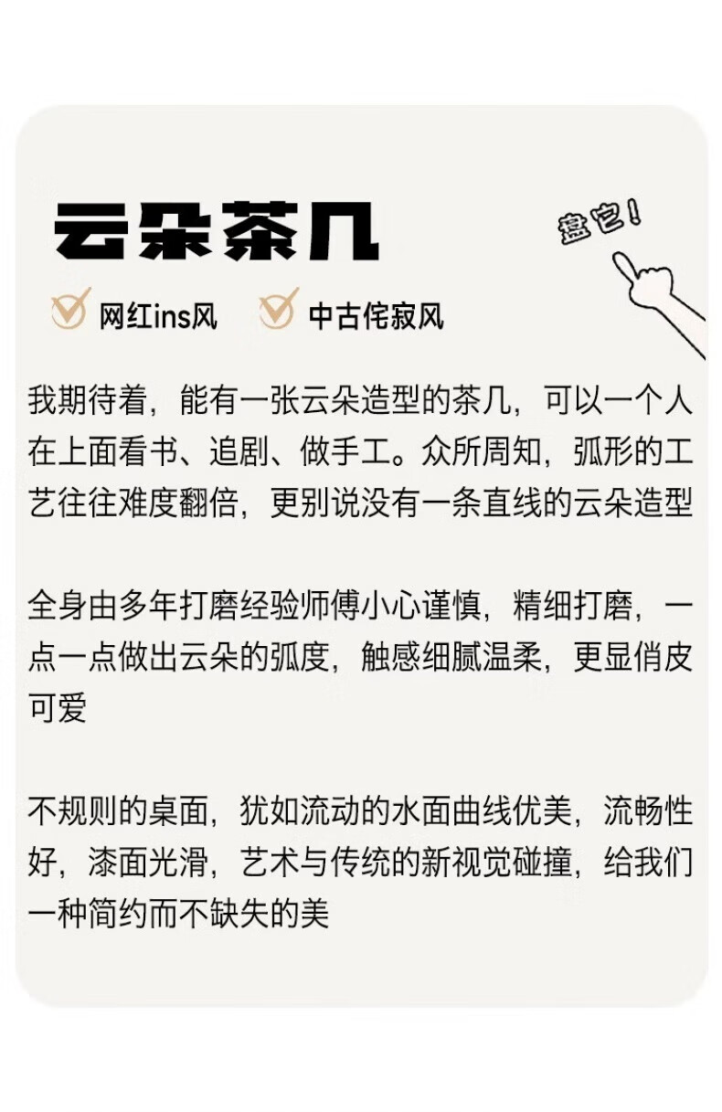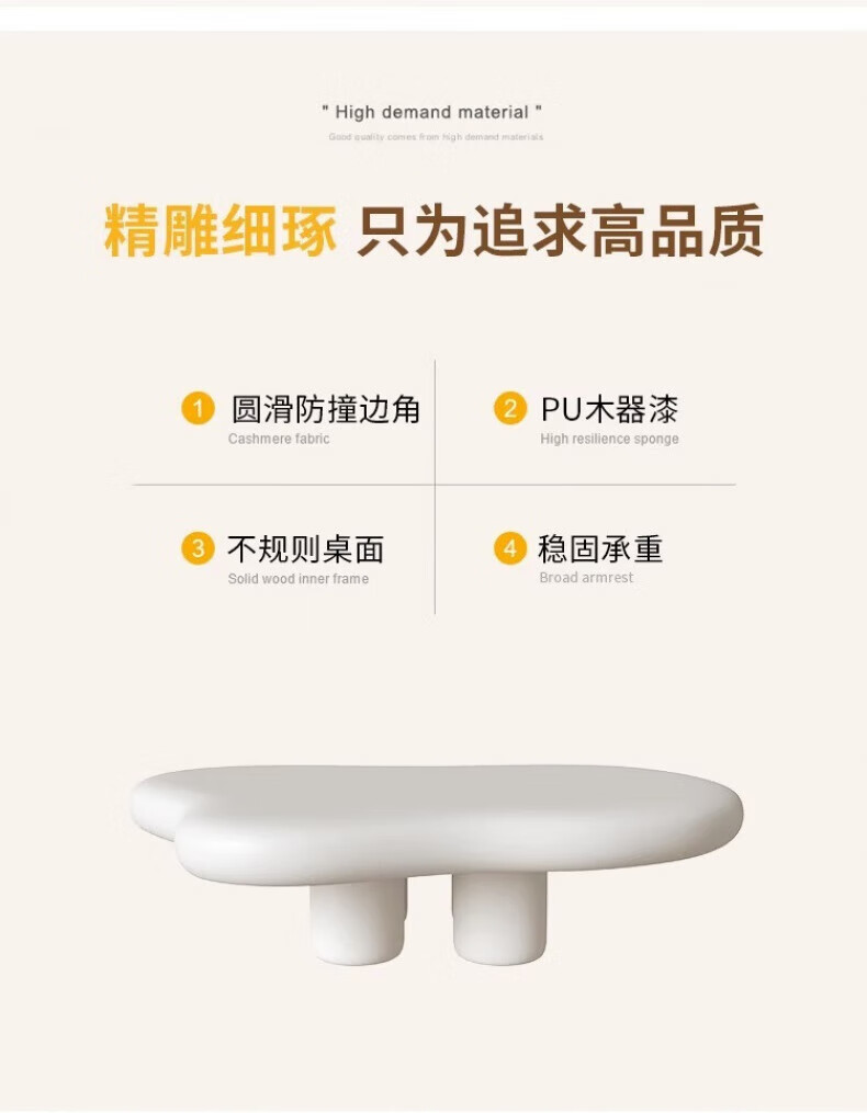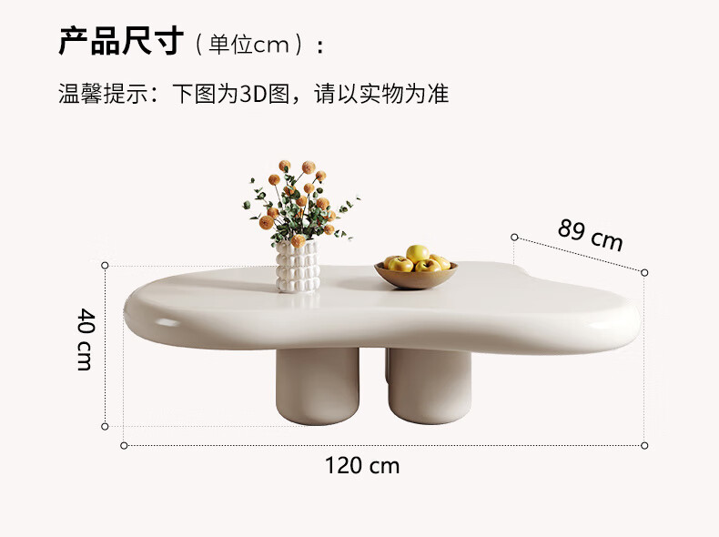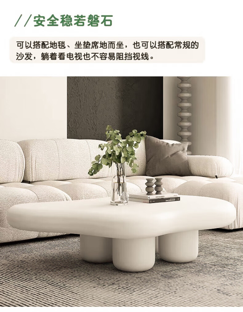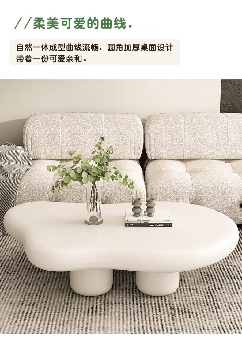 Guangyi Yunduo coffee table living room home small apartment cream style Internet celebrity simple modern special-shaped low table wabi-sabi style small table 100*69*35 cream color