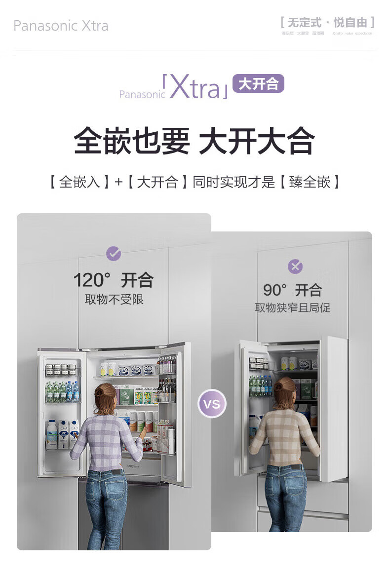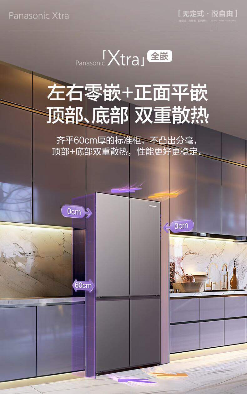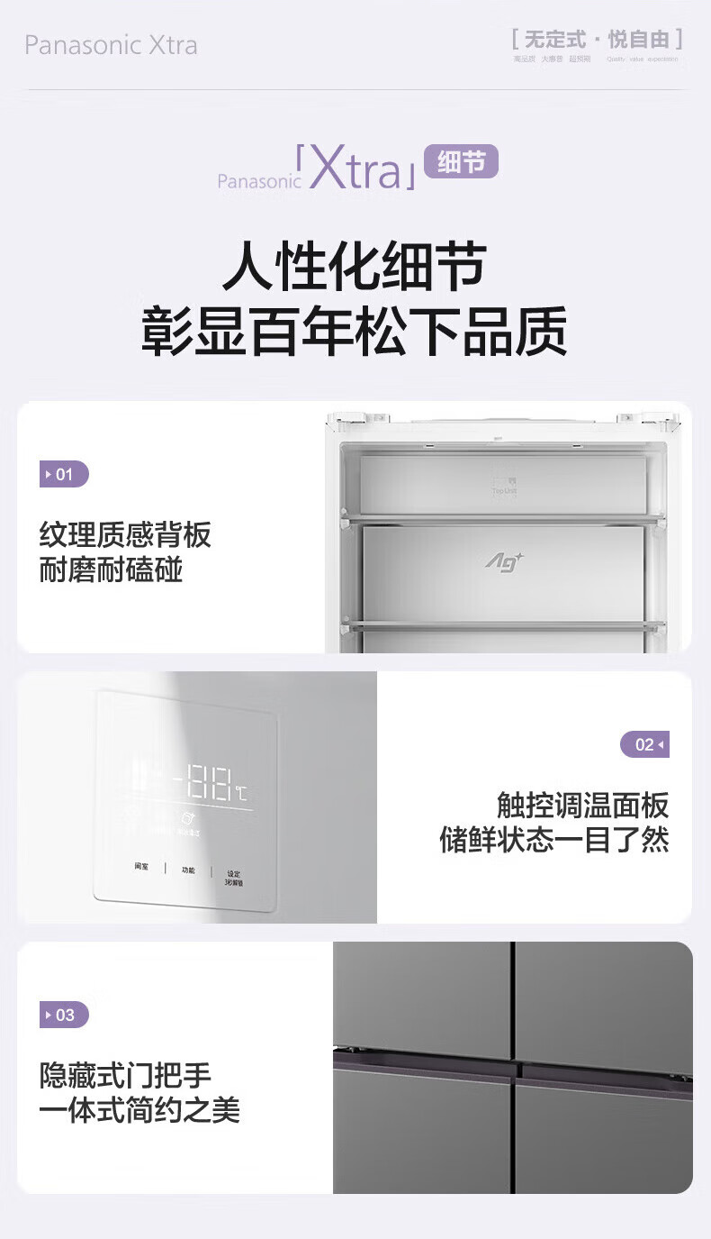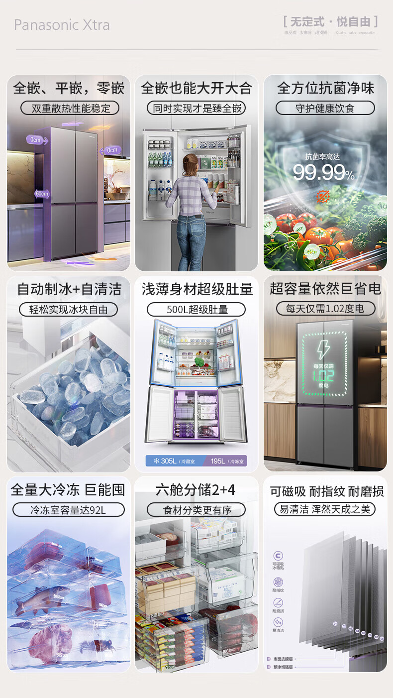 Panasonic Xtra cross multi-door 500L inverter refrigerator ultra-thin zero-embedded antibacterial automatic ice making XD50C5A-S XD50C5A 500L special price defective machine new level two
