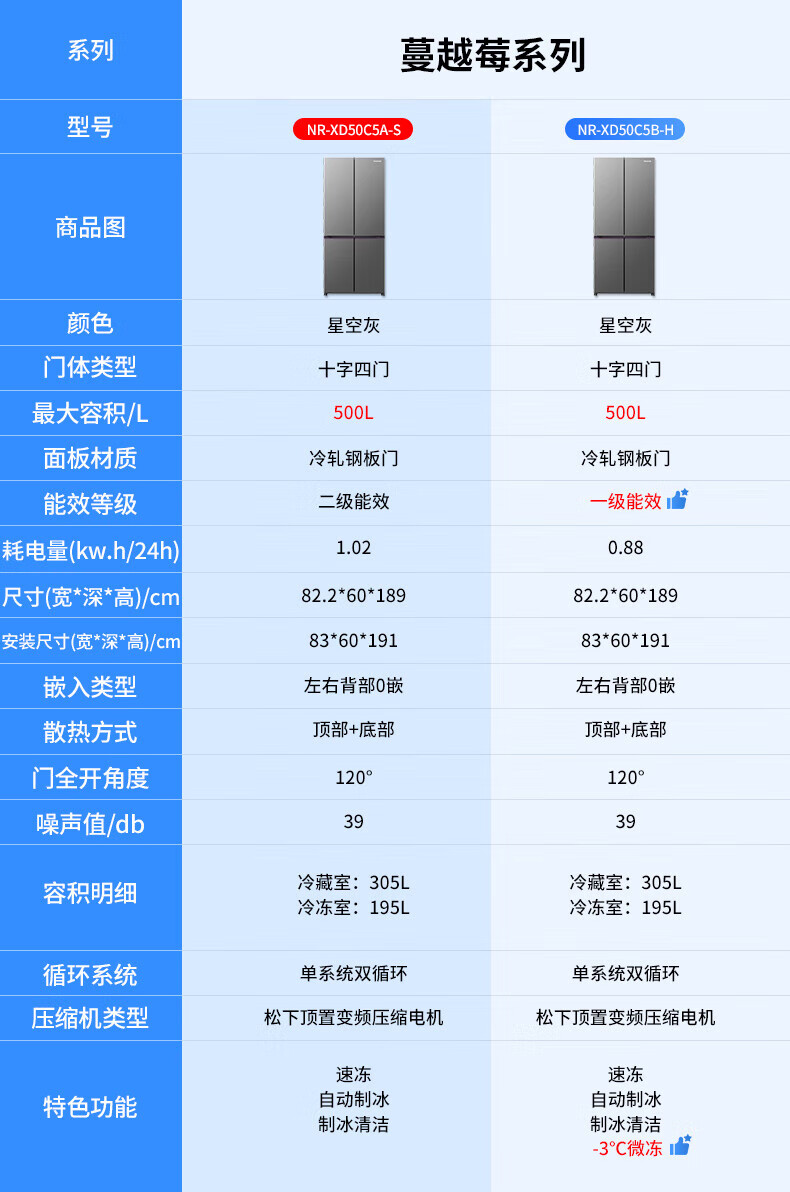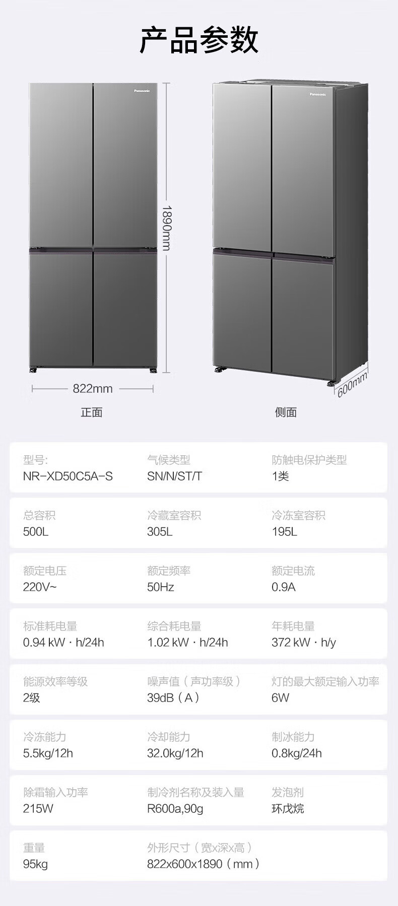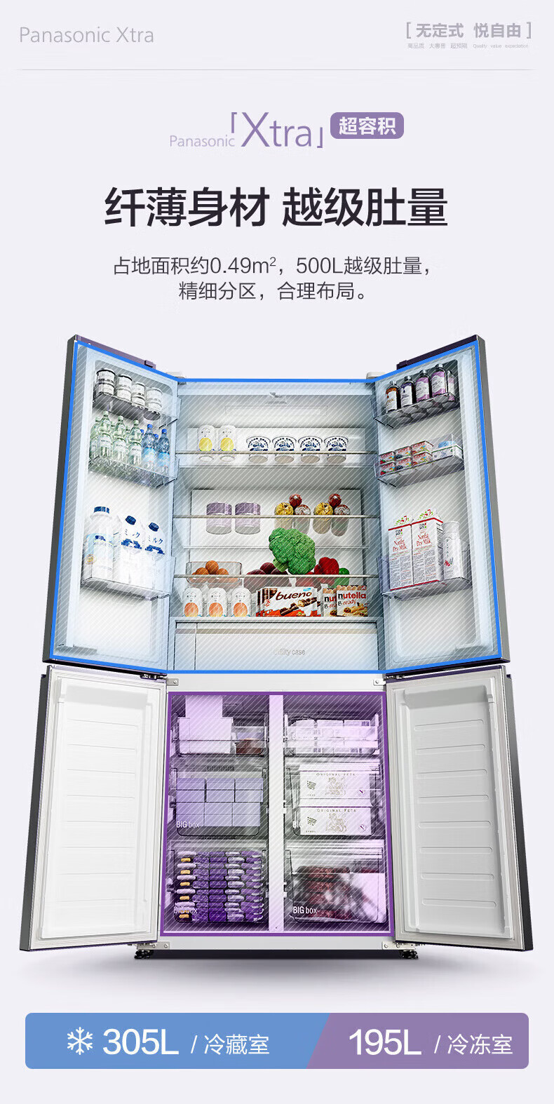 Panasonic Xtra cross multi-door 500L inverter refrigerator ultra-thin zero-embedded antibacterial automatic ice making XD50C5A-S XD50C5A 500L special price defective machine new level two