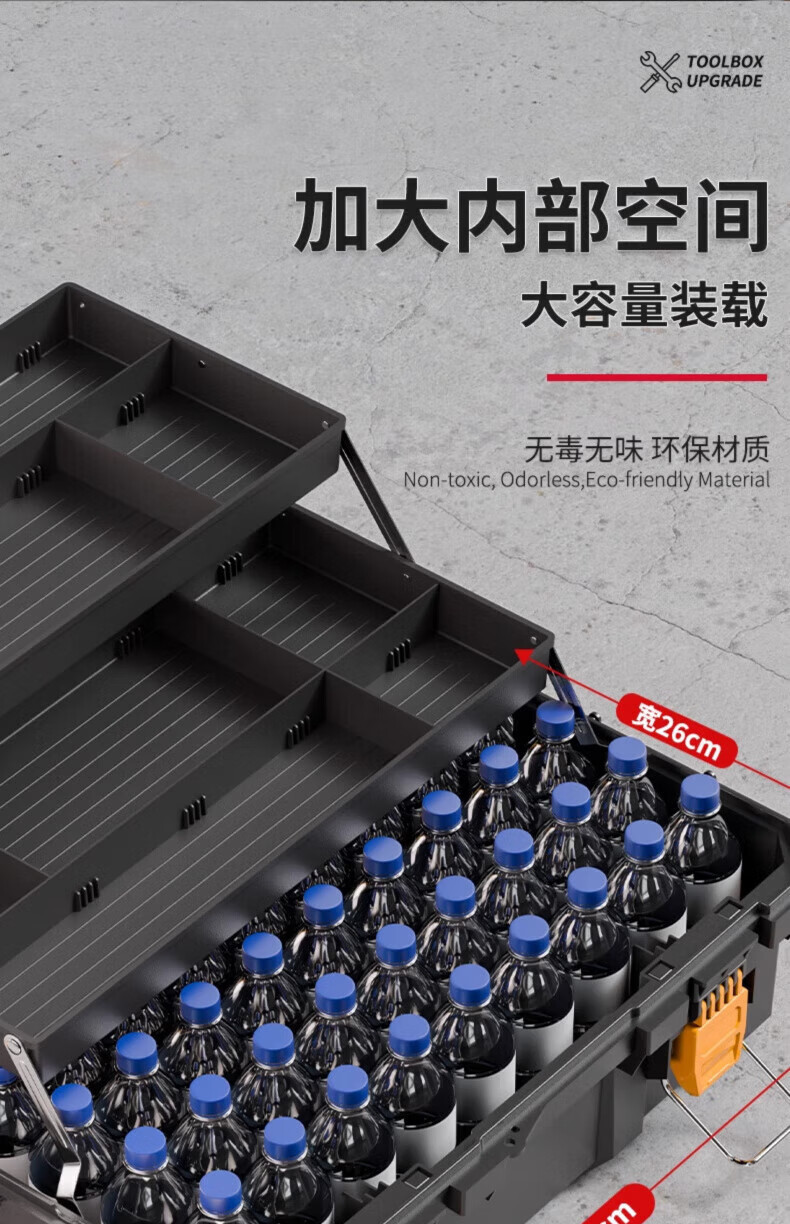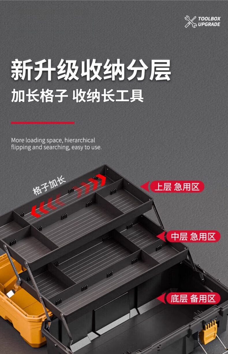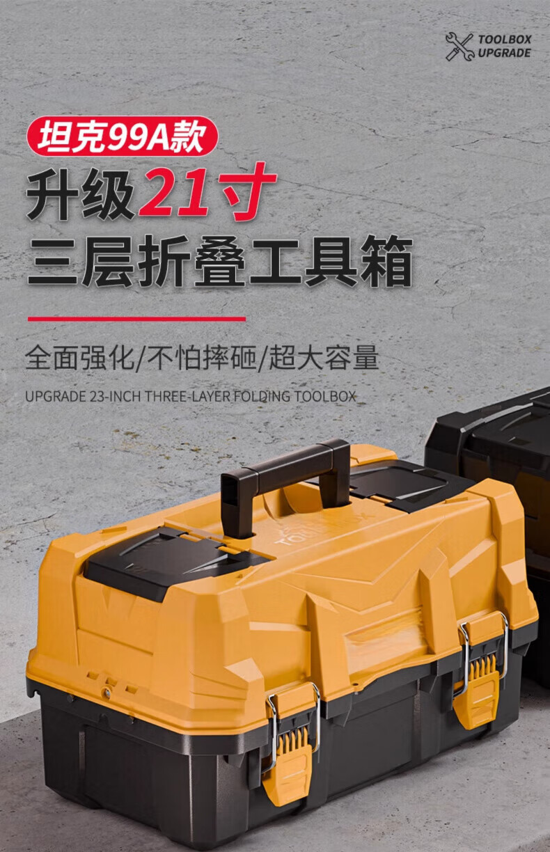 Dad Yao's German quality tool box, large capacity, extra large three-layer folding tool box, industrial-grade extra large storage and organization 21-inch flagship three-layer folding tool box