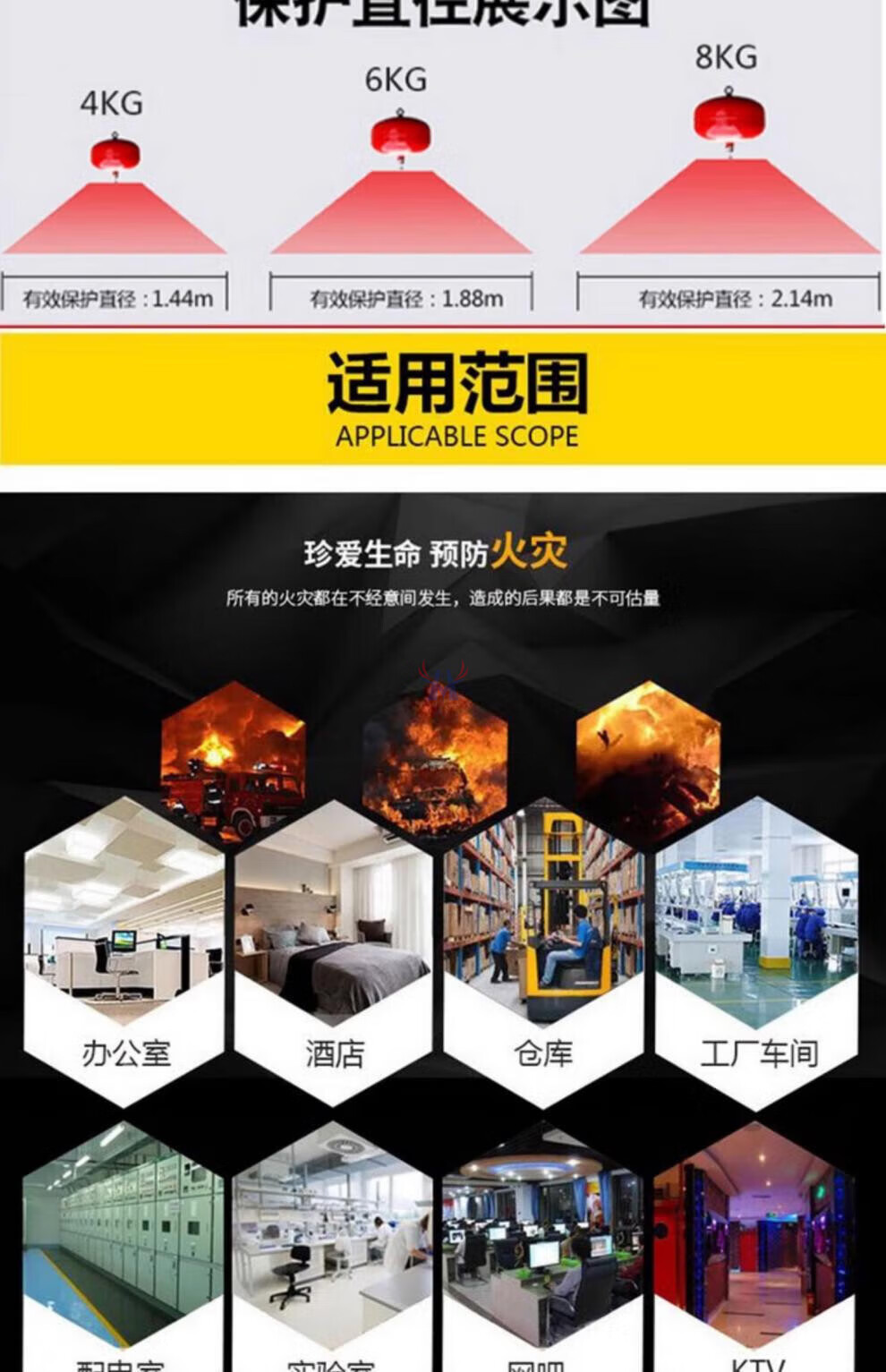 Suspended dry powder fire extinguisher 4kg 6KG8 hanging lantern device 4kg temperature controlled fine automatic ball charging pile 4kg suspended (FZX-APT4) 68 commonly used models