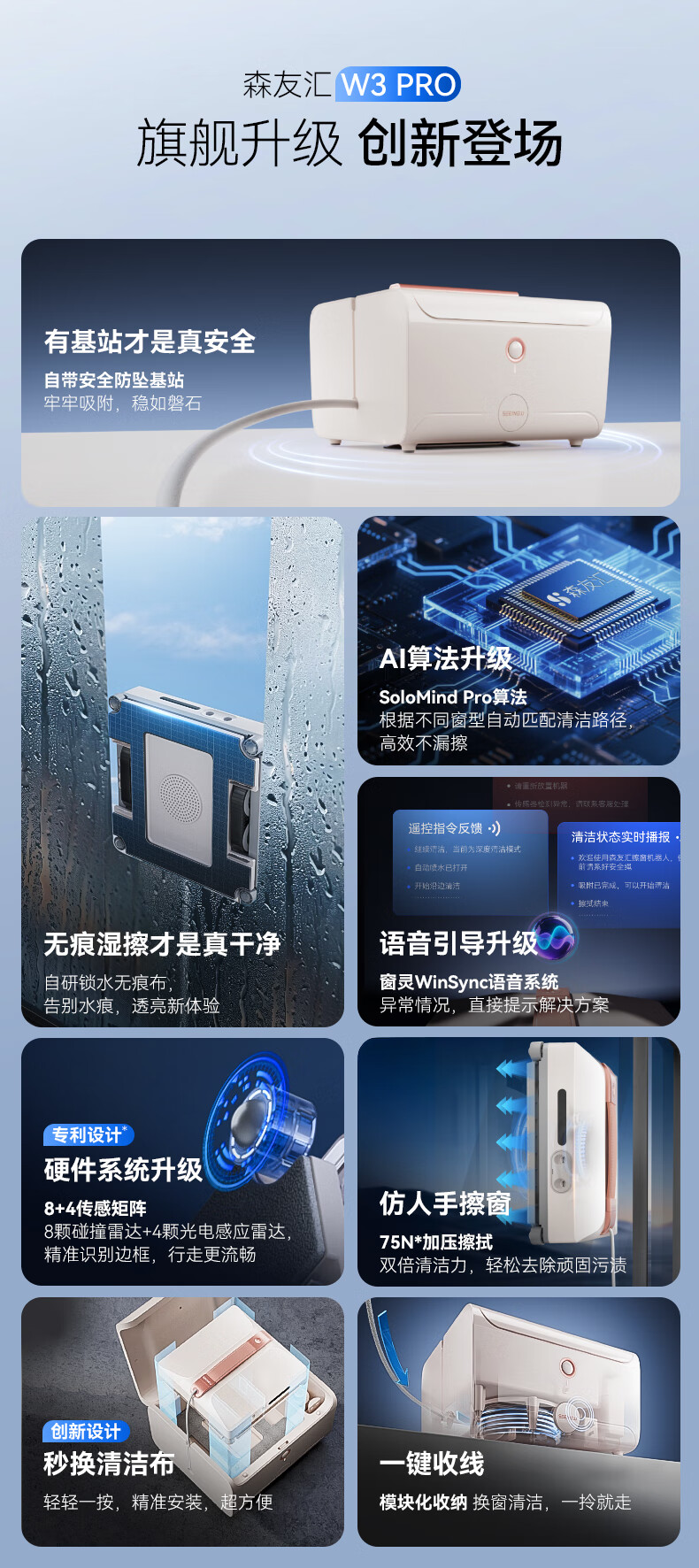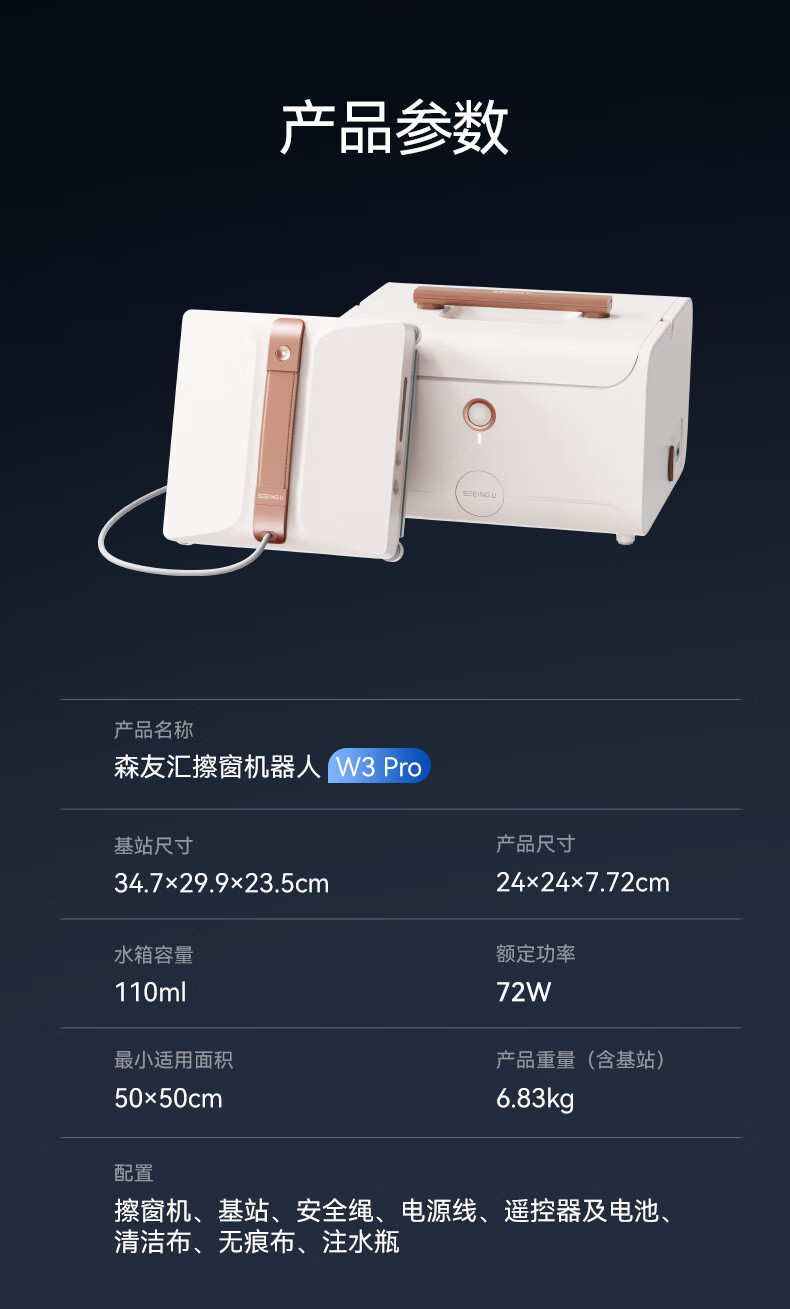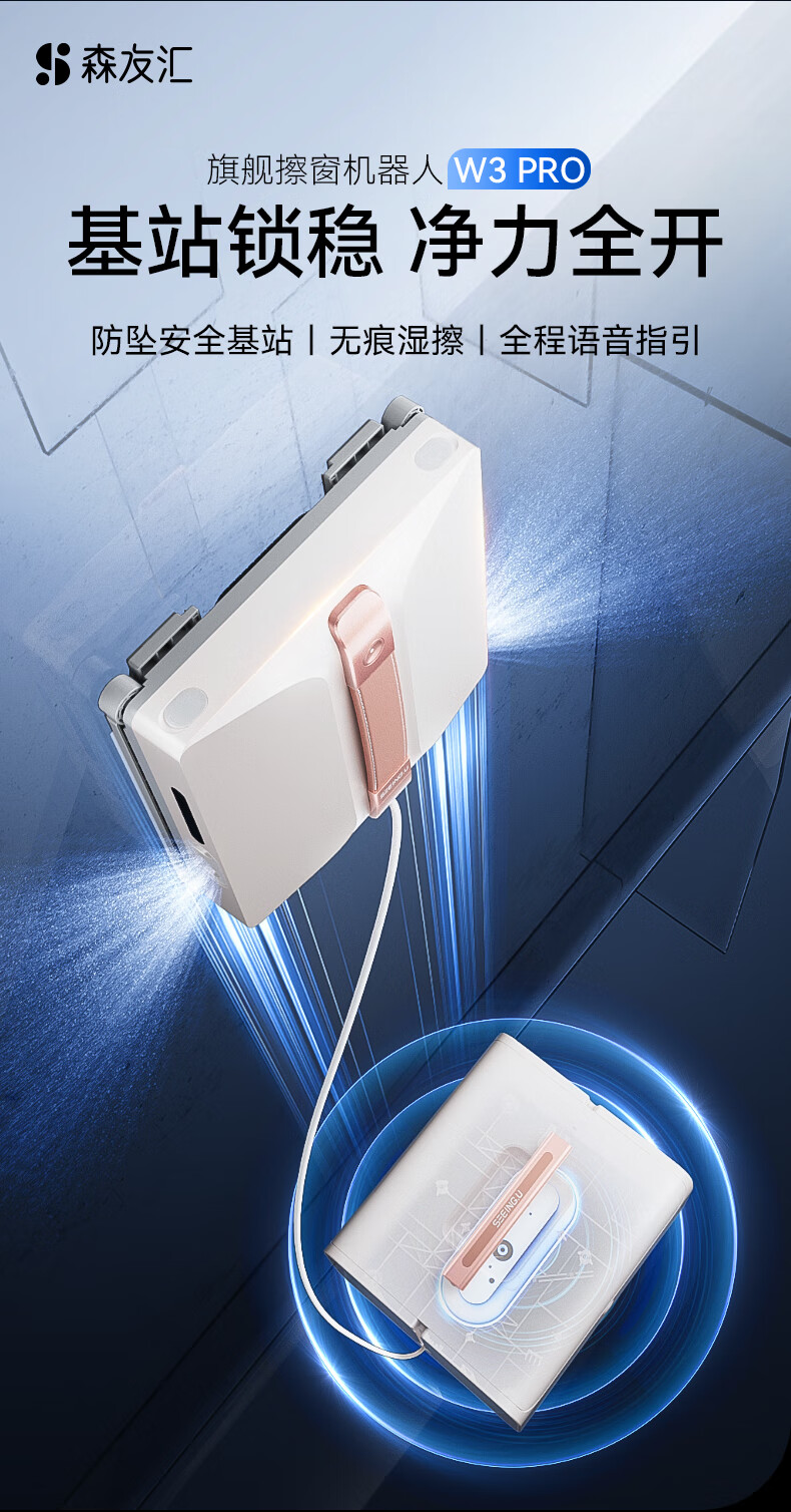 Senyouhui W3Pro window cleaning robot, glass cleaning robot as a gift, glass cleaning artifact, tile cleaning tool, fully automatic intelligent window cleaning robot base station model for housekeeping and high-level use, flagship all-round base station new product-W3pro