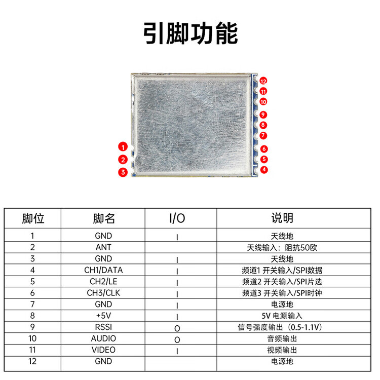 RX5808 wireless audio and video receiving module SPI control receiver remote control helicopter 5.8G reception without audio_switch control