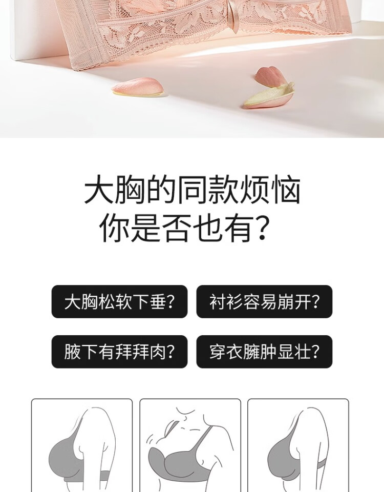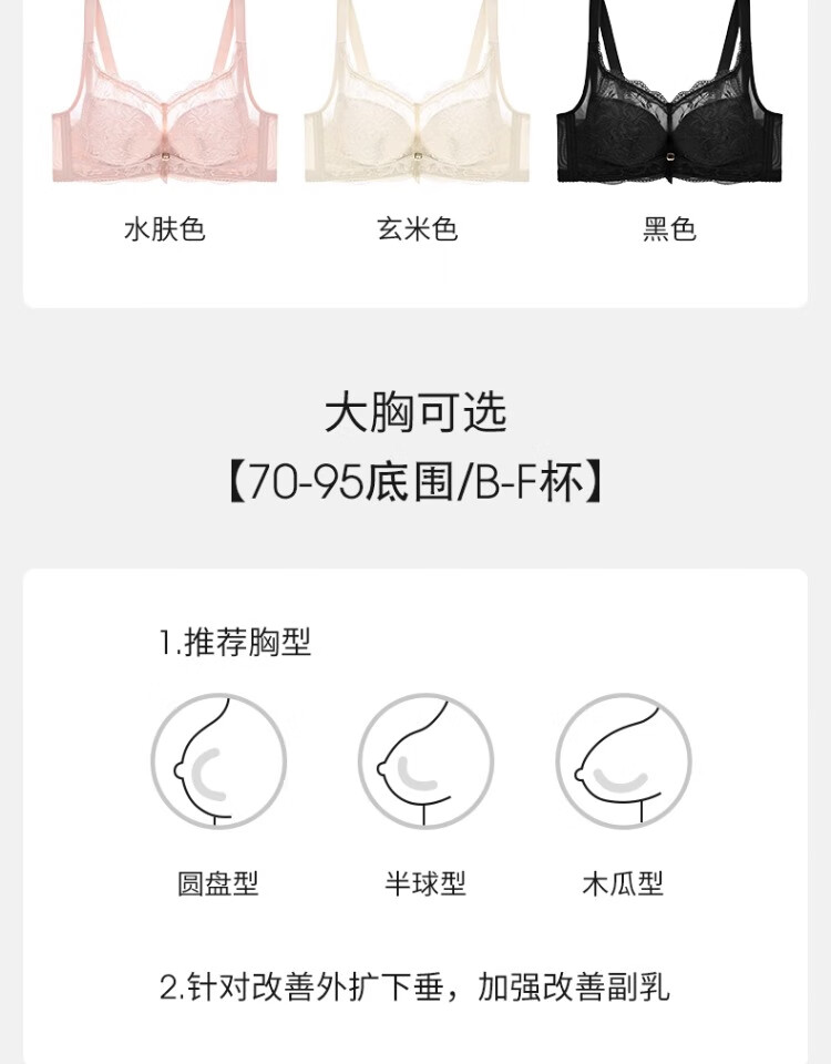 Orinon Big Breast Revealing Small Underwear Women's Thin Full Cup Push-Up Side Breast-Reducing Anti-Sagging Sexy Bra Black 95D