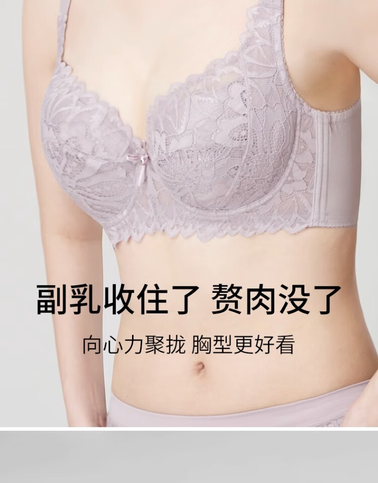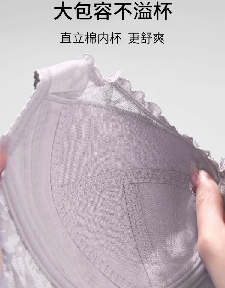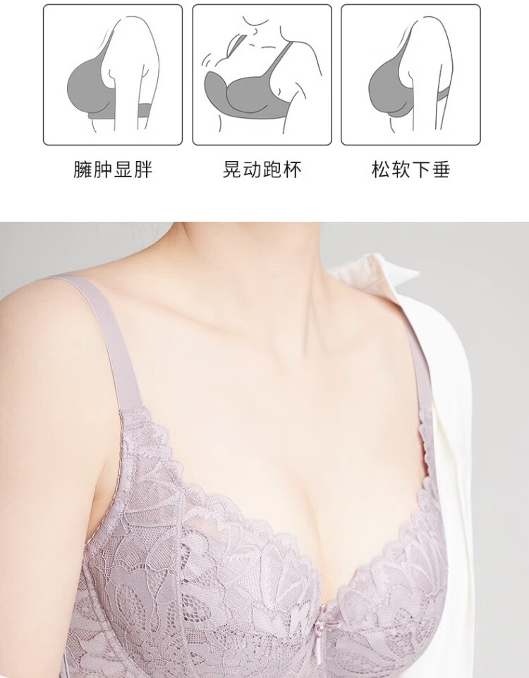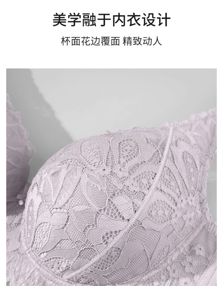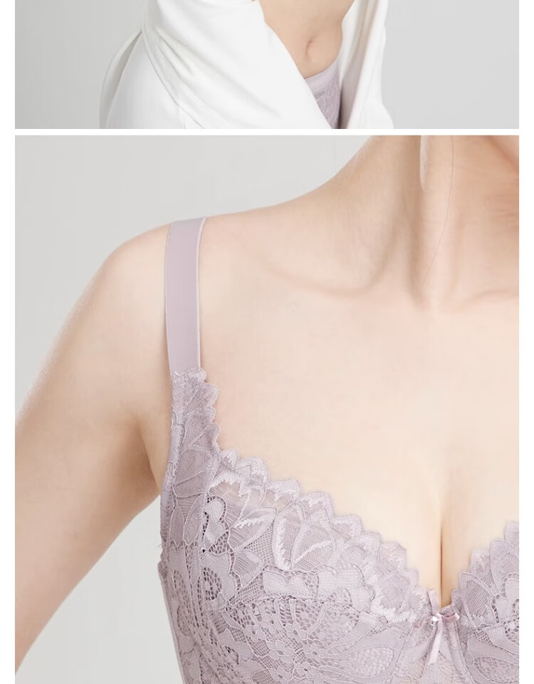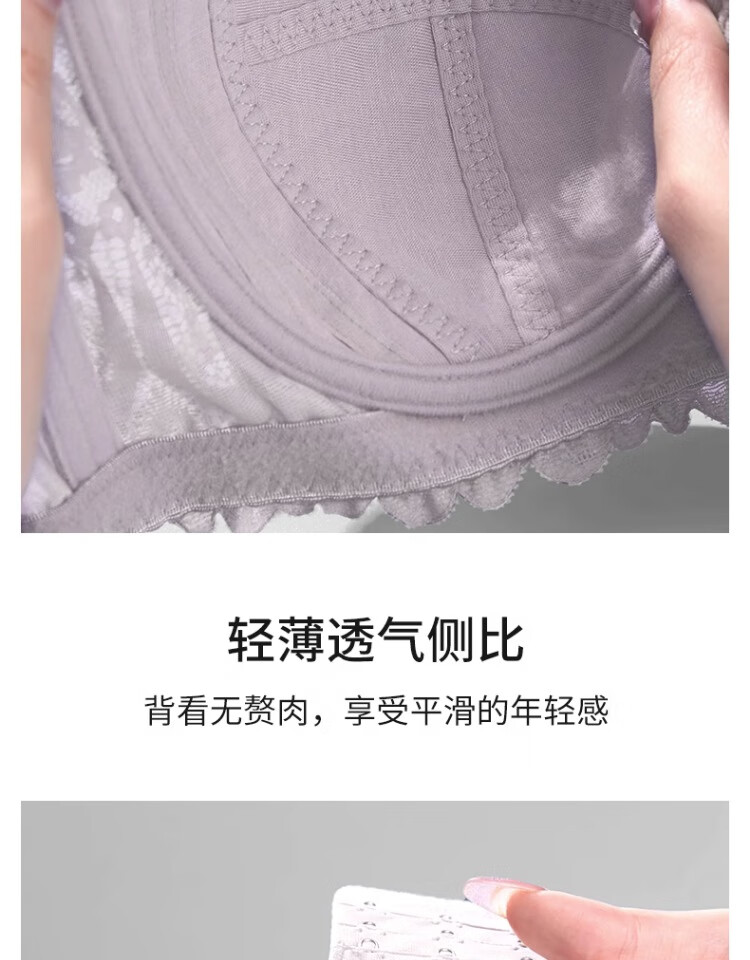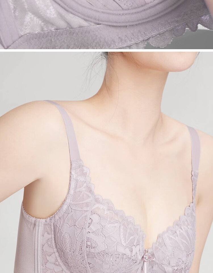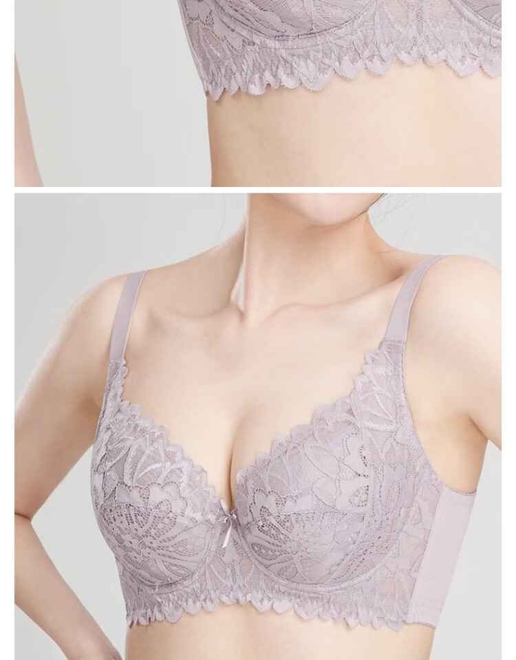 Orinon Underwear Big Breast Shows Small Full Cup Sexy Lace Bra Thin Section Breast Reduction Anti-Sagging Large Size Bra 5140 Ni Purple 70C