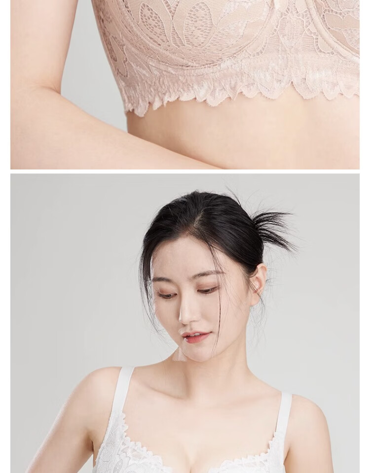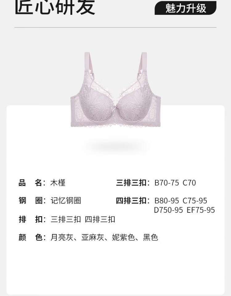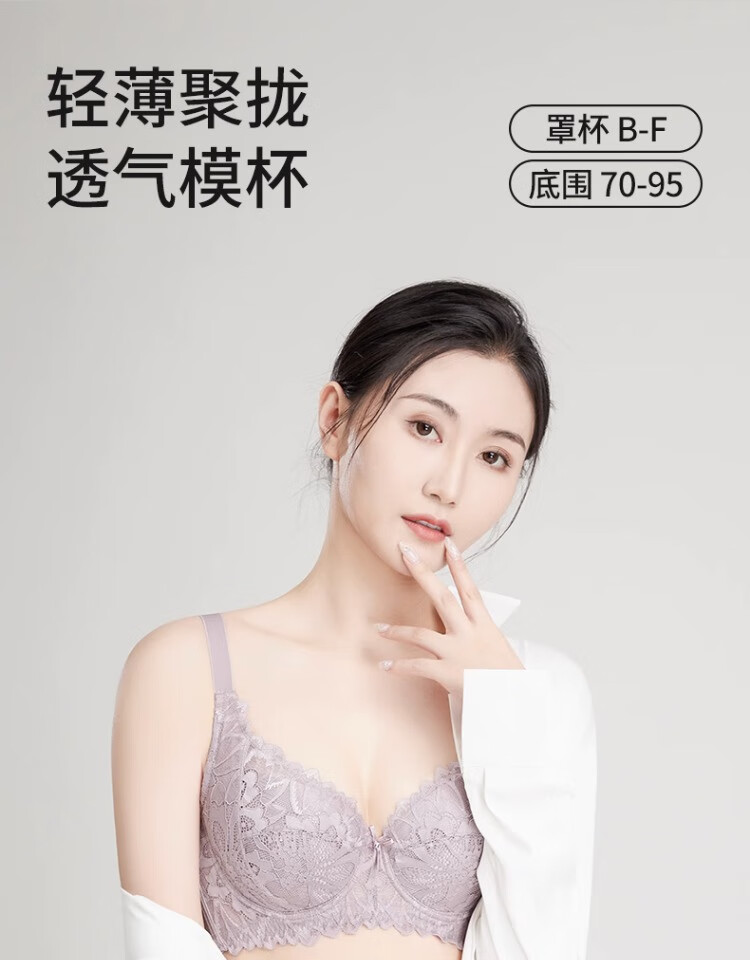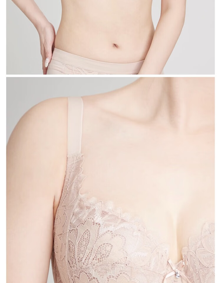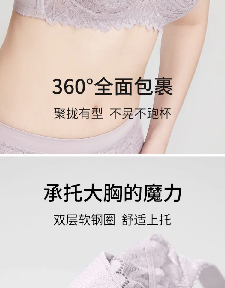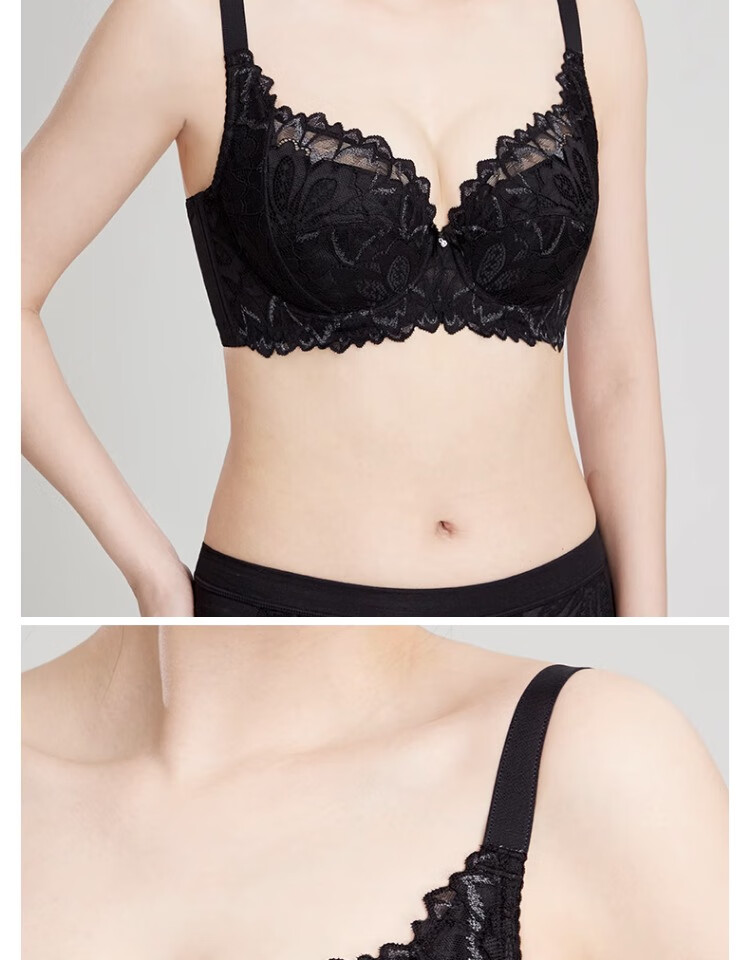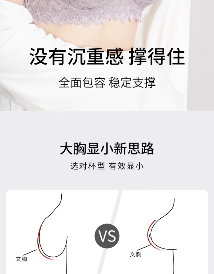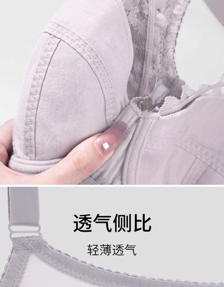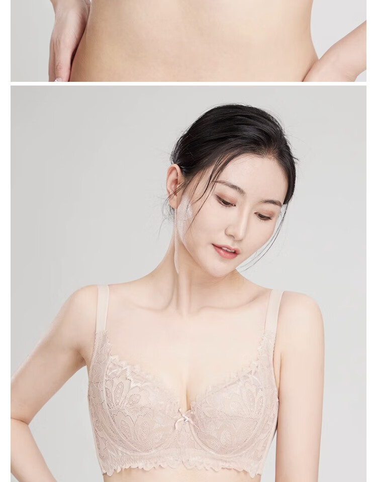 Orinon Underwear Big Breast Shows Small Full Cup Sexy Lace Bra Thin Section Breast Reduction Anti-Sagging Large Size Bra 5140 Ni Purple 70C