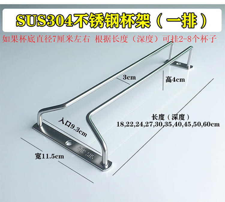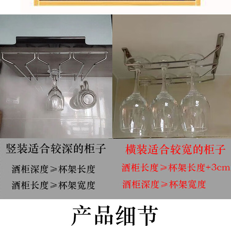 WS bold 304 stainless steel red wine glass rack upside down household goblet hanging rack red wine glass storage rack 18 cm three rows 304 stainless steel