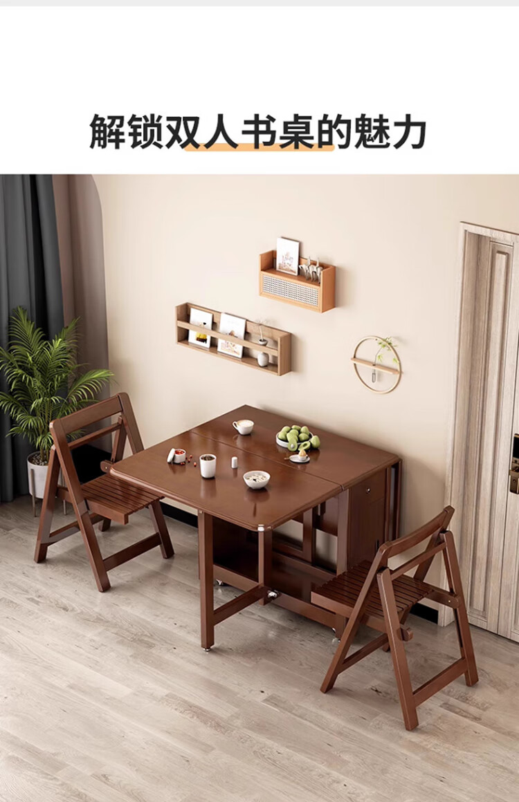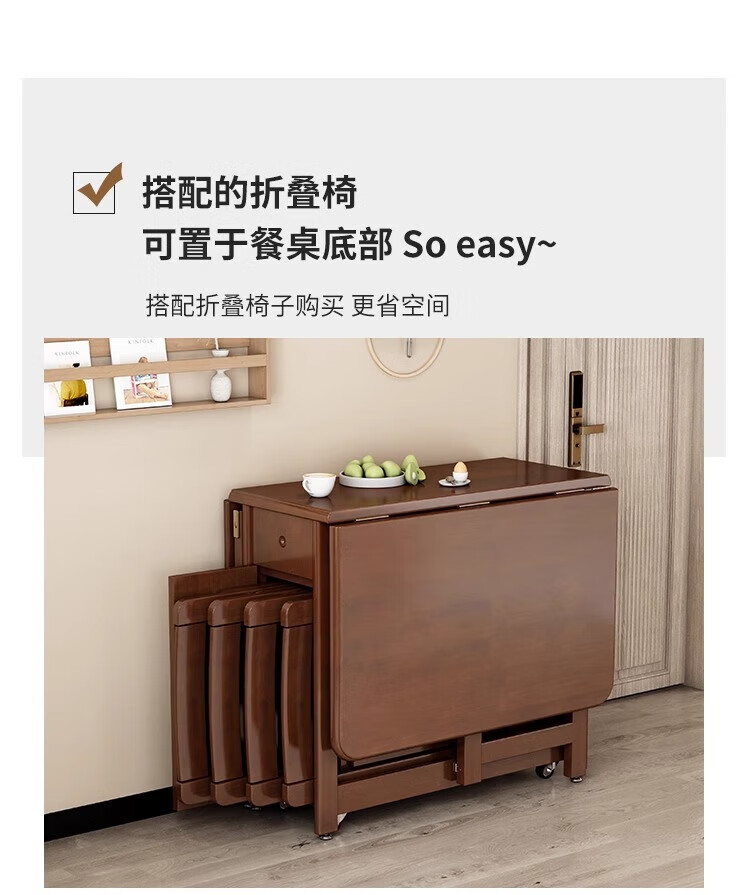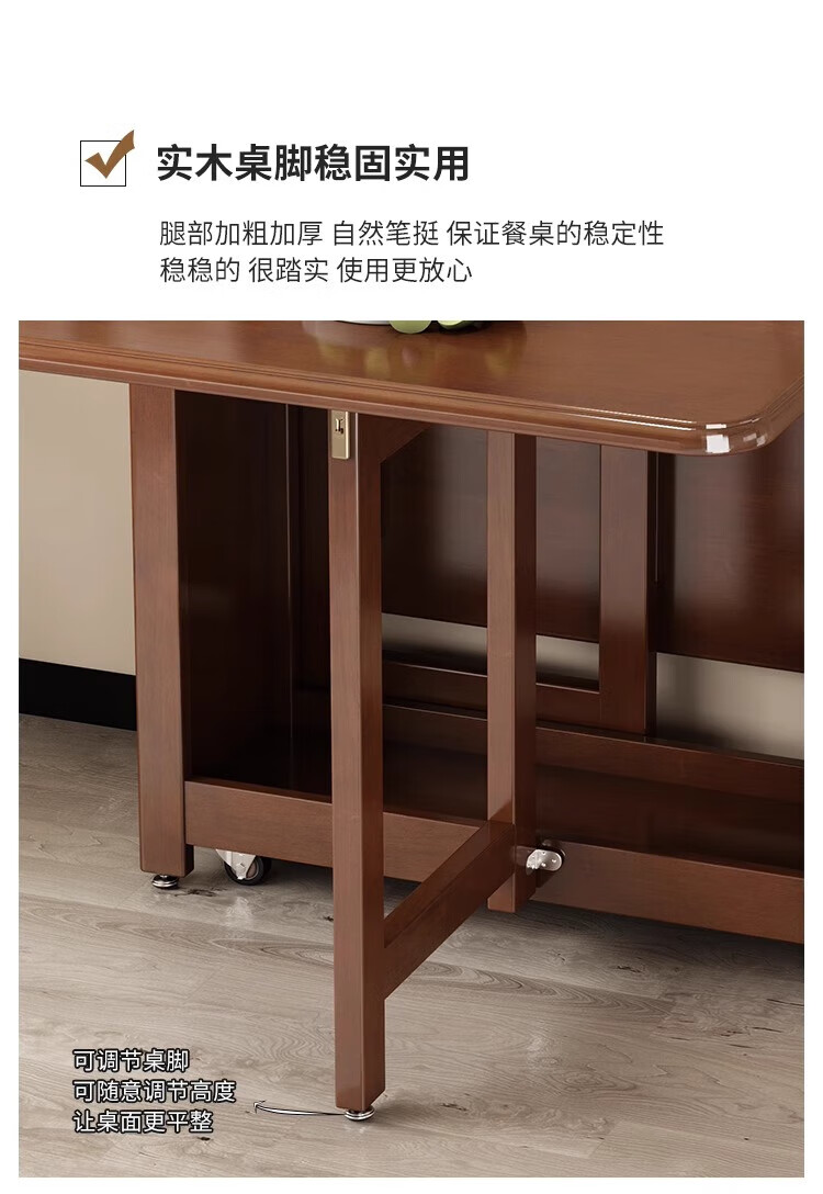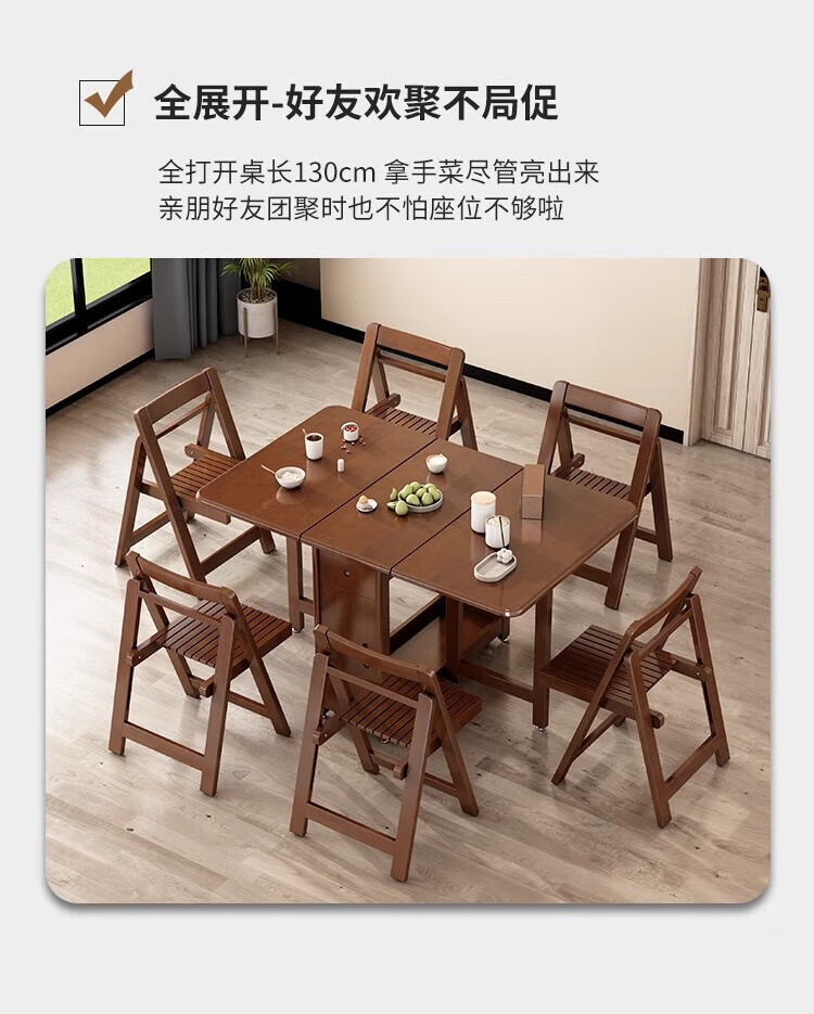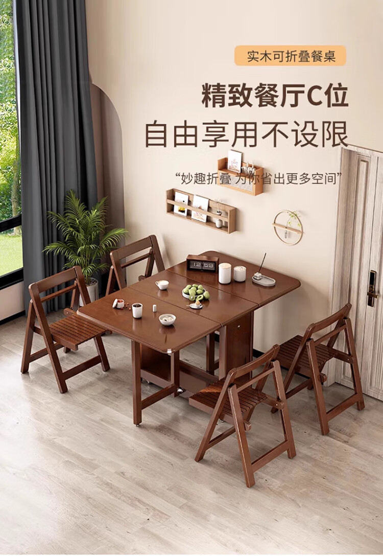 Fanjia all solid wood folding dining table and chair combination sideboard rectangular dining table mobile simple small apartment retractable walnut color one table + six chairs 145CM