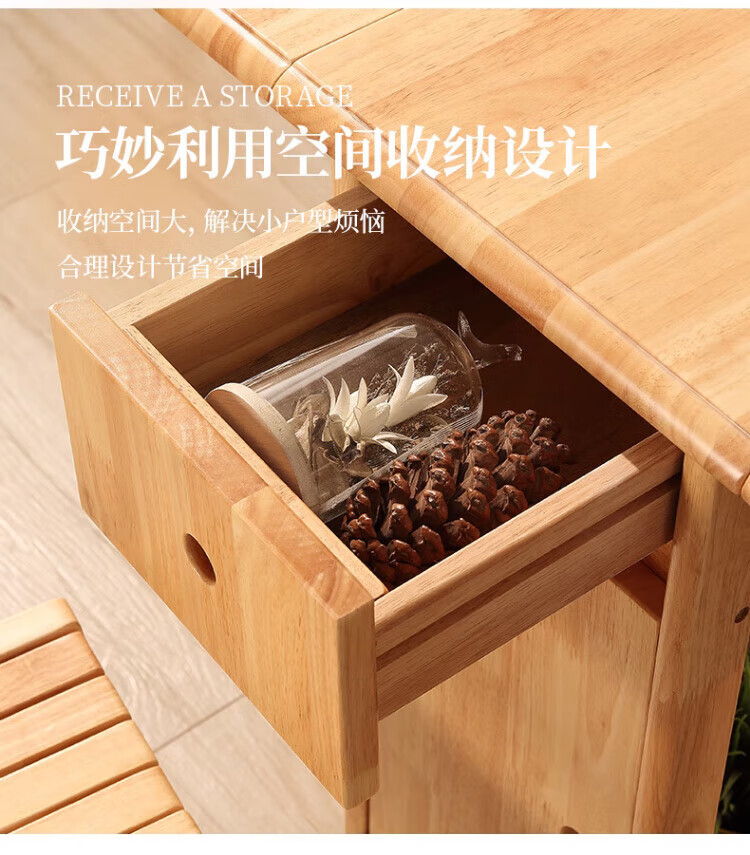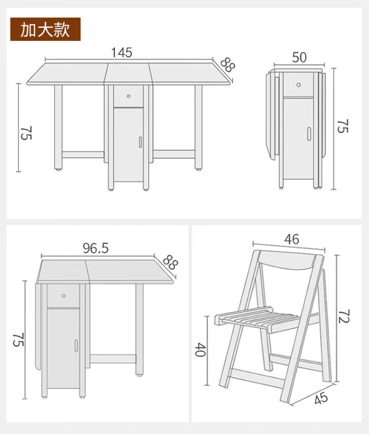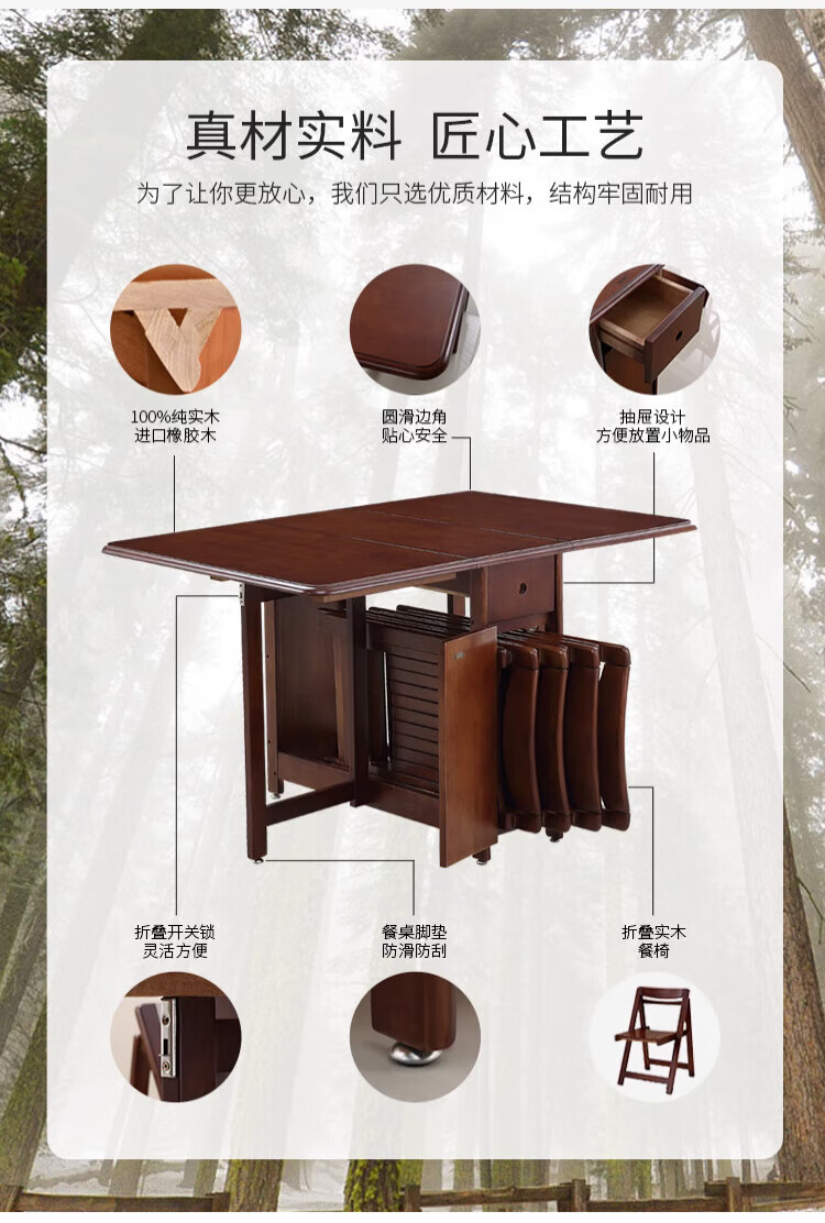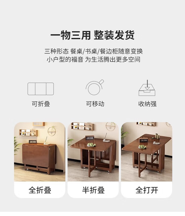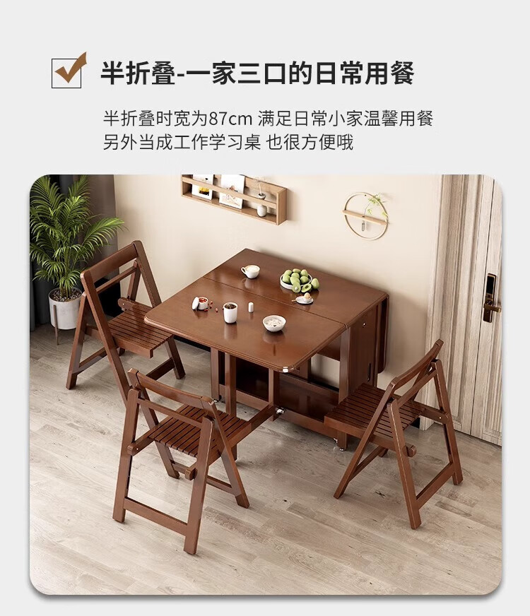 Fanjia all solid wood folding dining table and chair combination sideboard rectangular dining table mobile simple small apartment retractable walnut color one table + six chairs 145CM