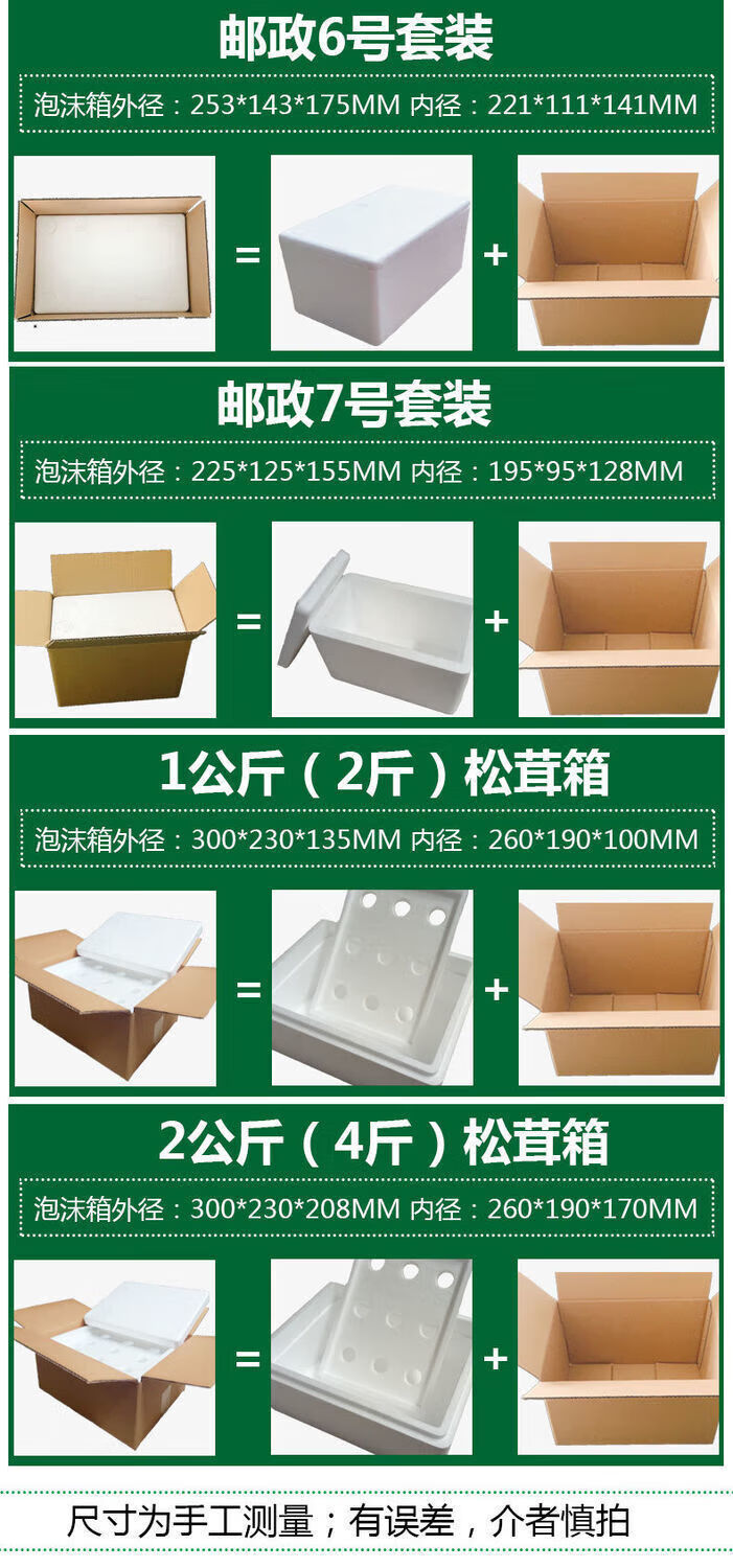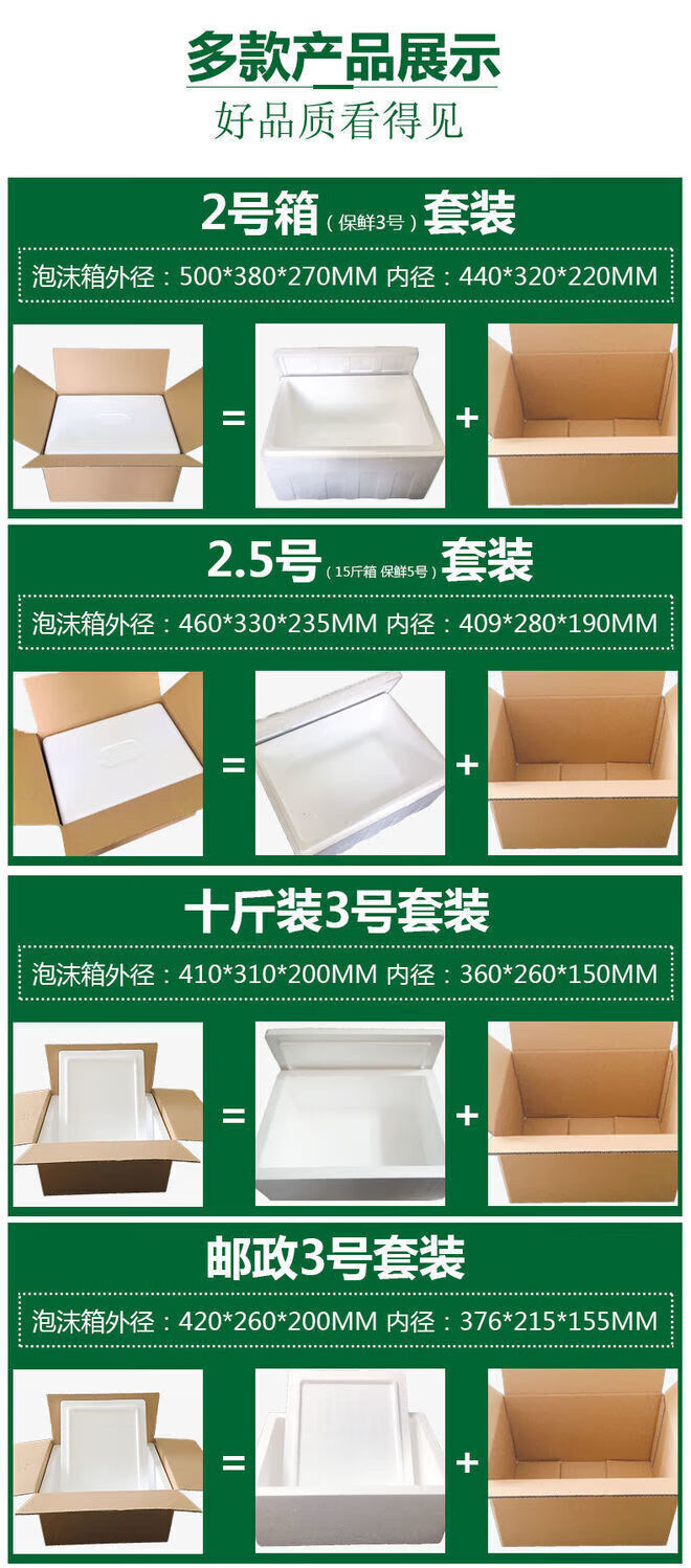 Postal box foam box supporting carton set vegetables, fruits, fresh frozen products, seafood express insulated fresh-keeping box No. 3 foam + zipper-free insulated bag + 6 sets of cartons