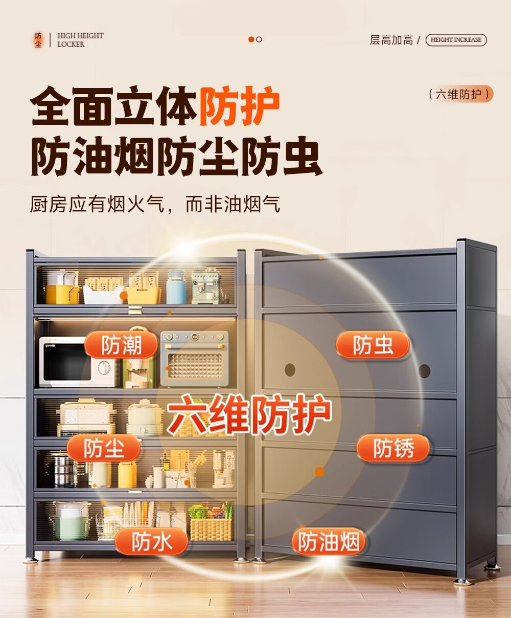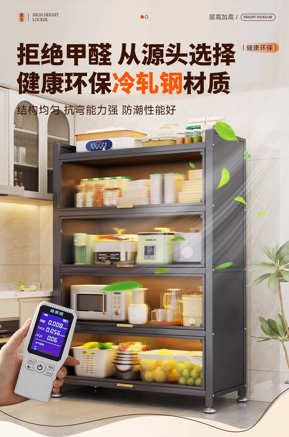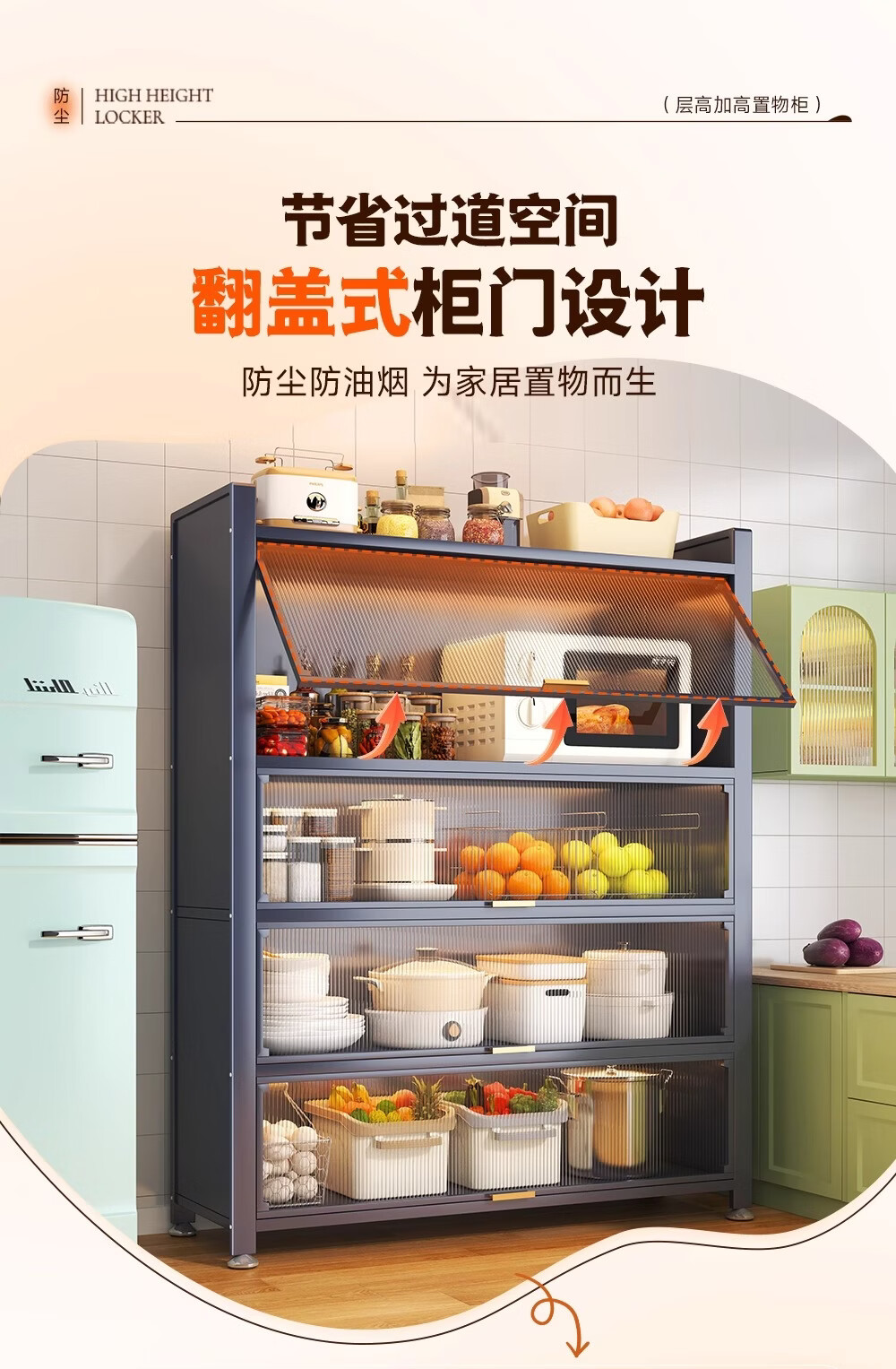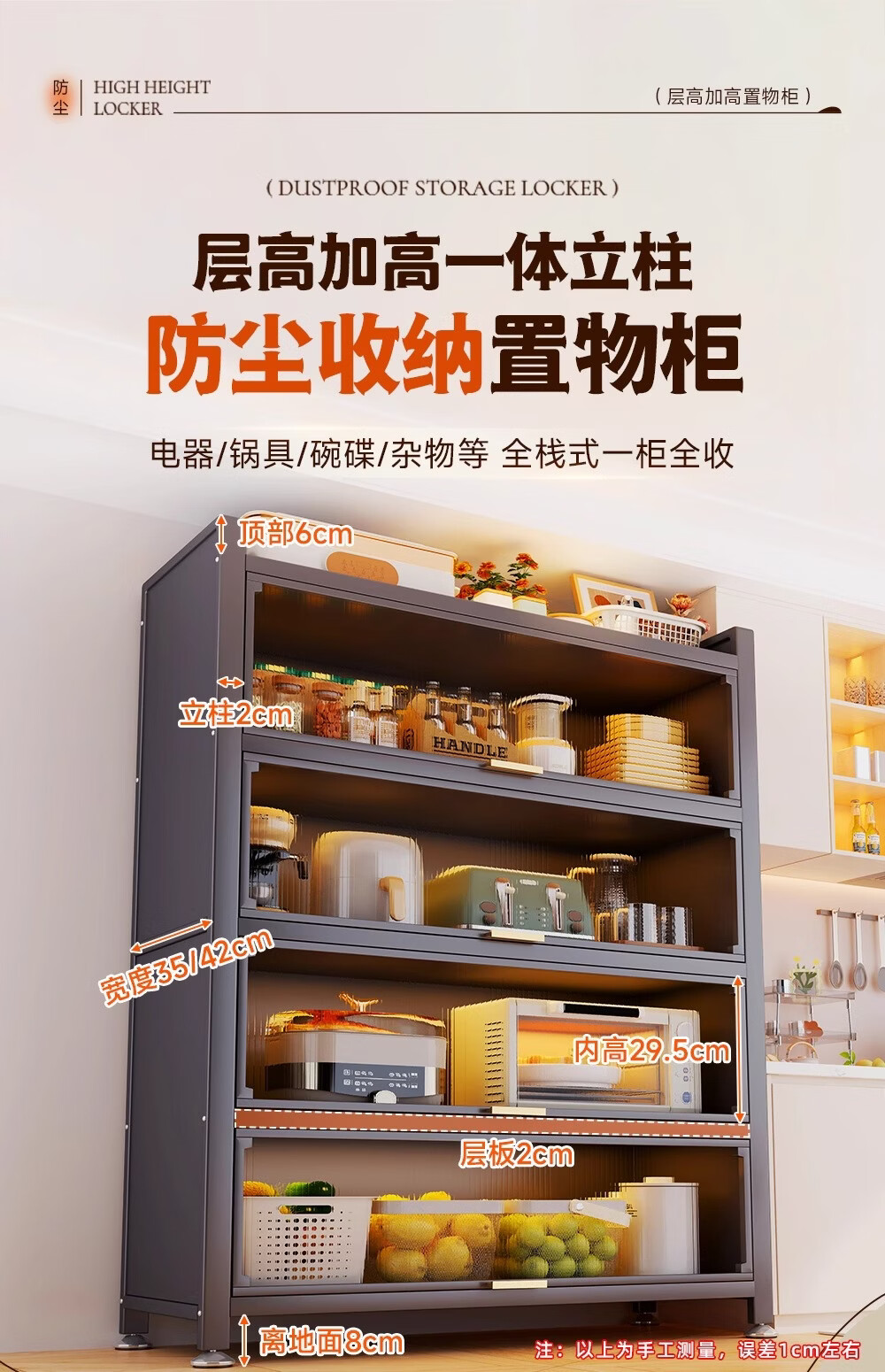Sirao kitchen multifunctional storage rack floor-standing refrigerator sandwich storage cabinet sideboard microwave oven storage bowl cabinet three layers of gray thickened carbon steel 35*32*80cm