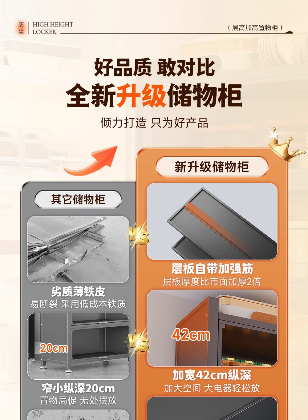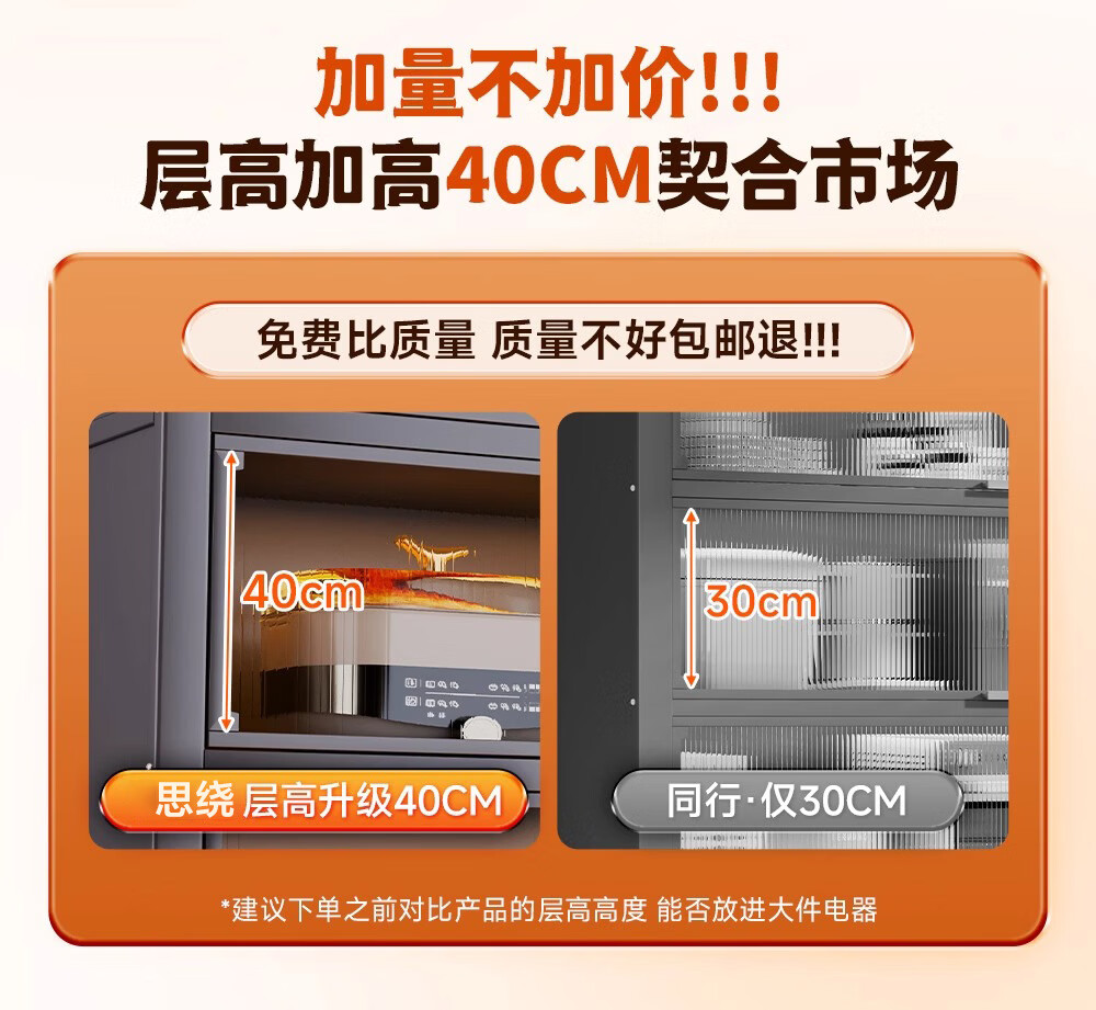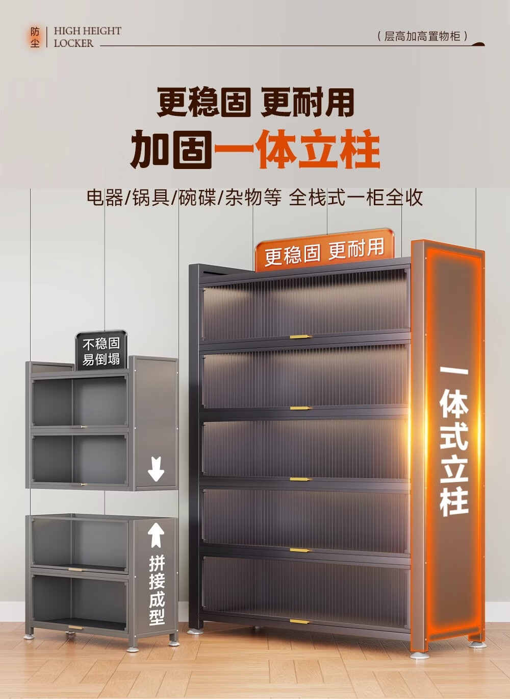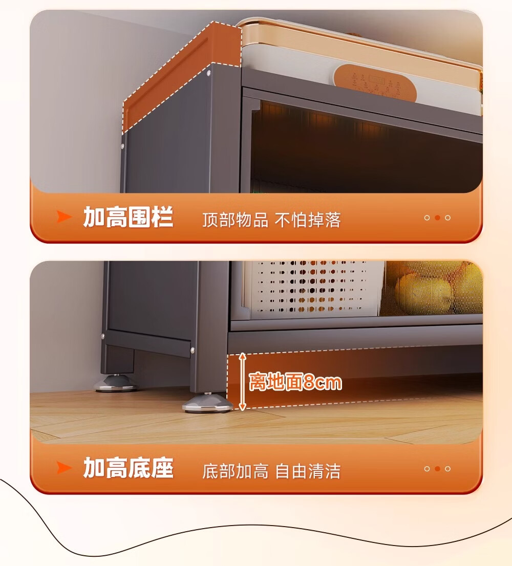 Sirao kitchen multifunctional storage rack floor-standing refrigerator sandwich storage cabinet sideboard microwave oven storage bowl cabinet three layers of gray thickened carbon steel 35*32*80cm