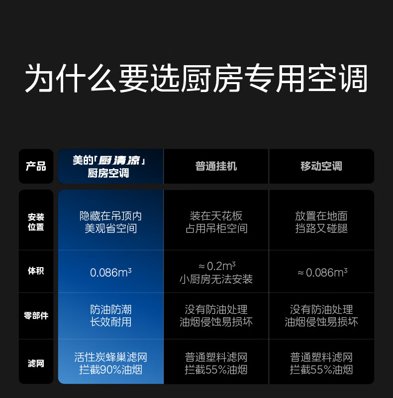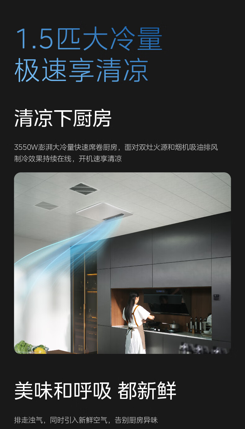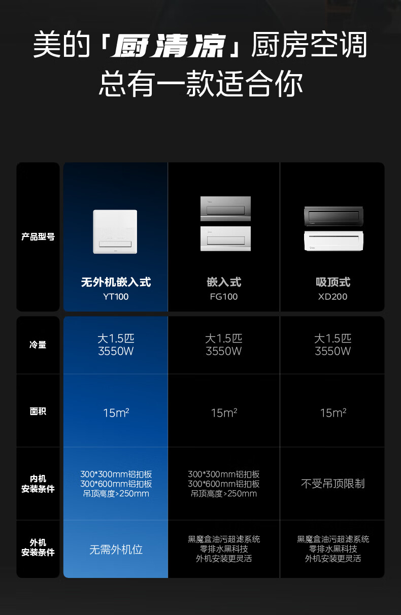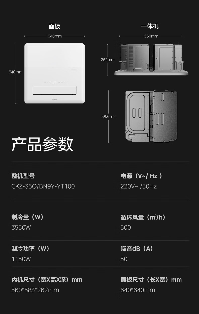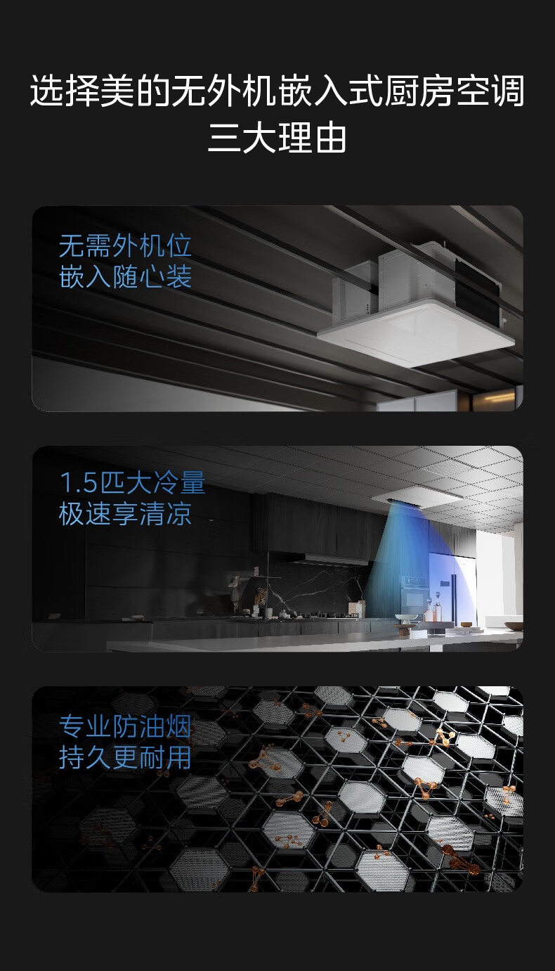 Midea kitchen air conditioner dedicated embedded all-in-one unit without external unit, large 1.5 HP, variable frequency single cooling, anti-oil fume, large cooling capacity package installation CKZ-35Q/BN9Y-YT100, without external unit, white, large 1.5 HP