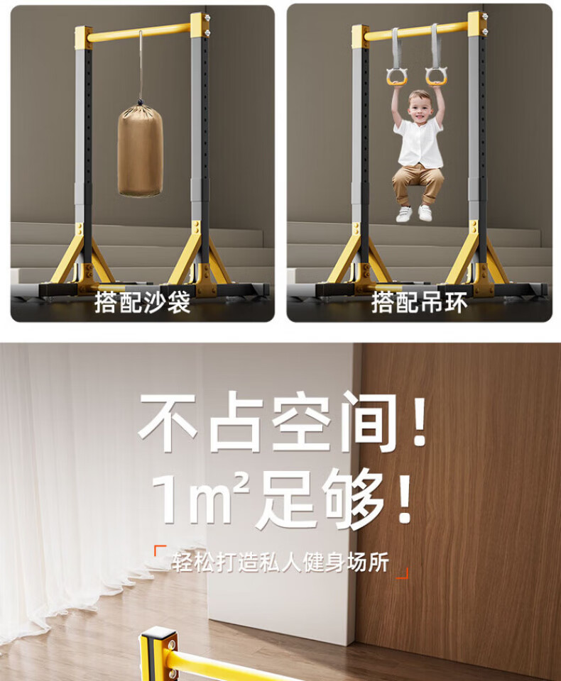 TRUHEIM German floor-standing horizontal bar adult pull-up device home indoor training stretching bar rack home fitness equipment upgraded luxury set one-word suction cup base horizontal bar丨hanging boxing sandbag