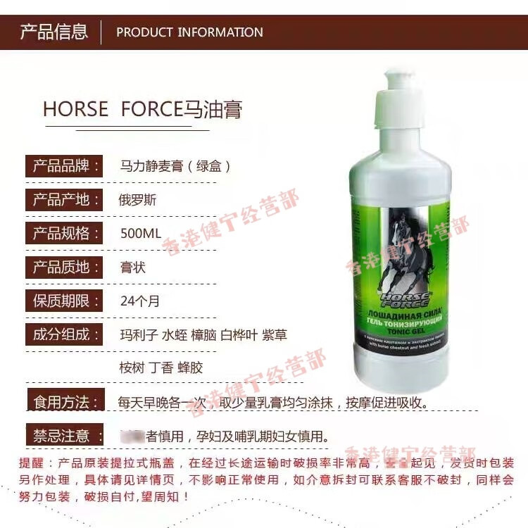 Russian HorseFORCE imported from Russia Horsepower Joint Cream Jingmai Cream Yellow Horse Oil Green Horse Oil Lumbar Disc Herniation Horsepower Yellow Horse Oil Joint Cream 500ml bottle
