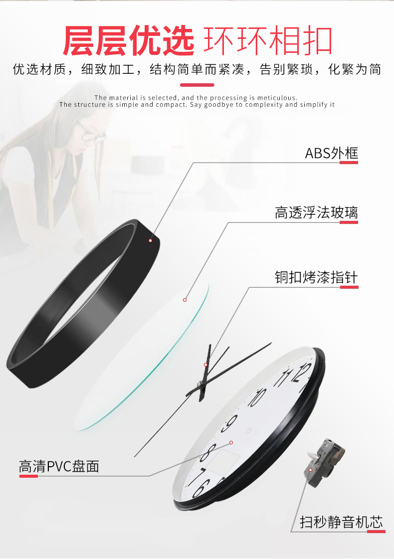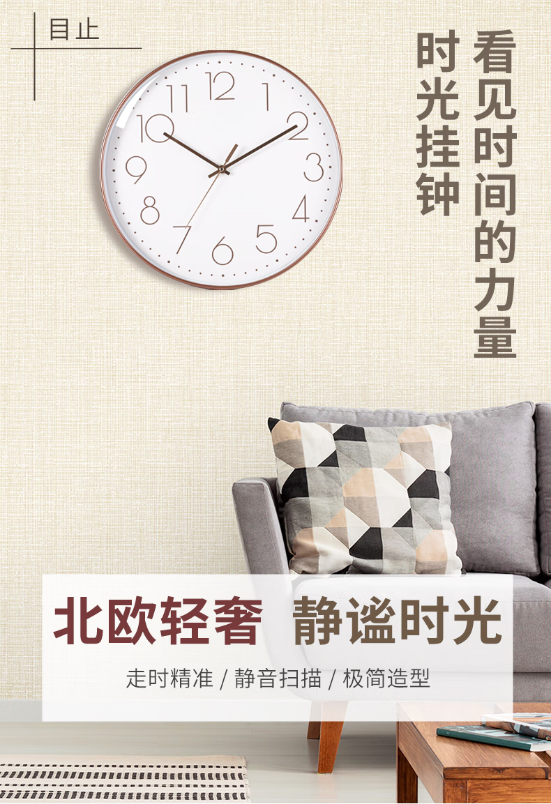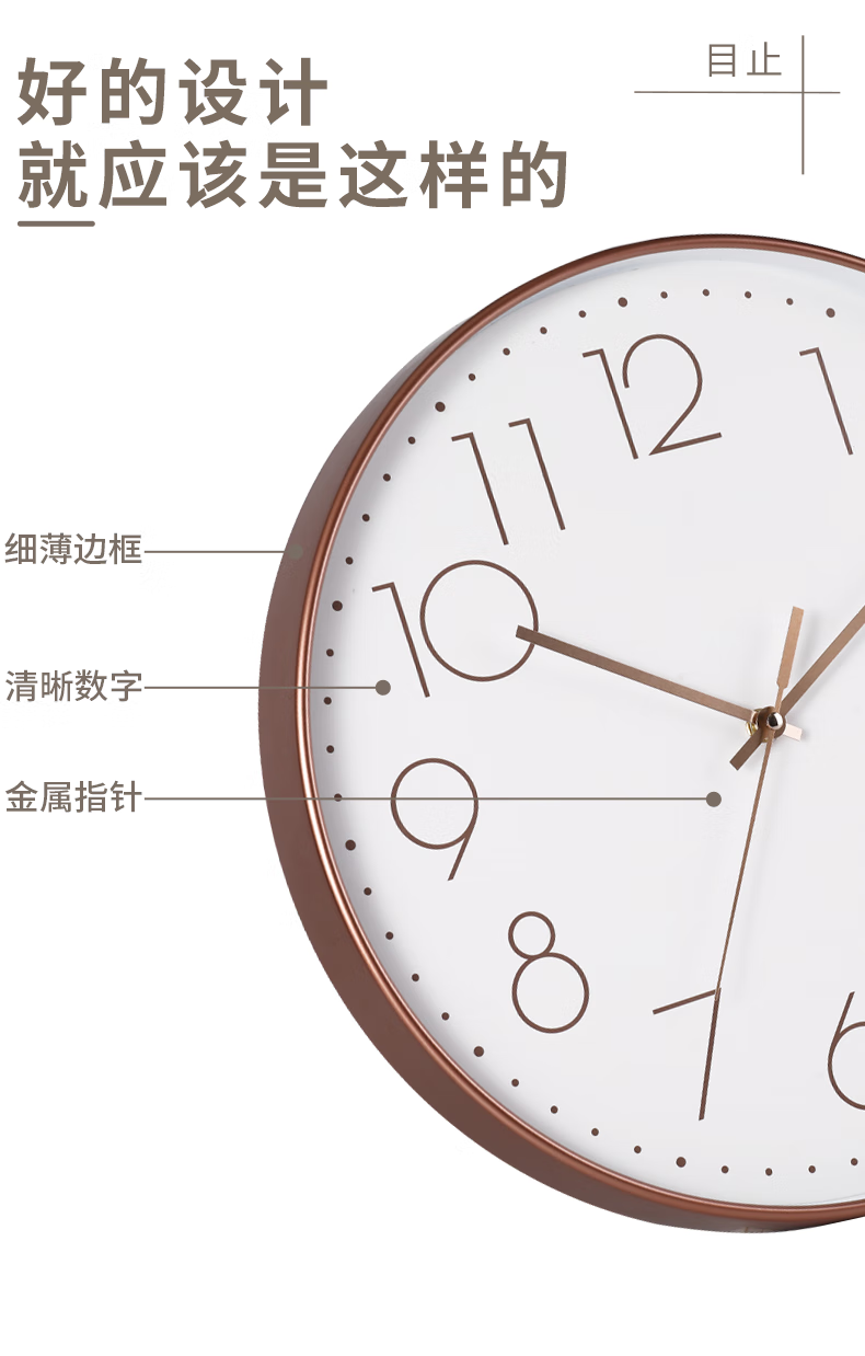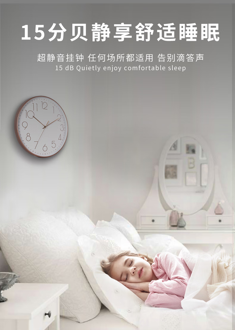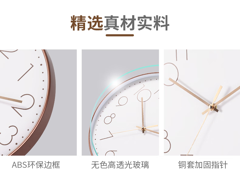 Wall clock, home clock, wall-mounted silent clock, bedroom silent quartz clock, wall-mounted clock, living room, modern minimalist clock, rose gold frame, 8 inches (diameter 20 cm)