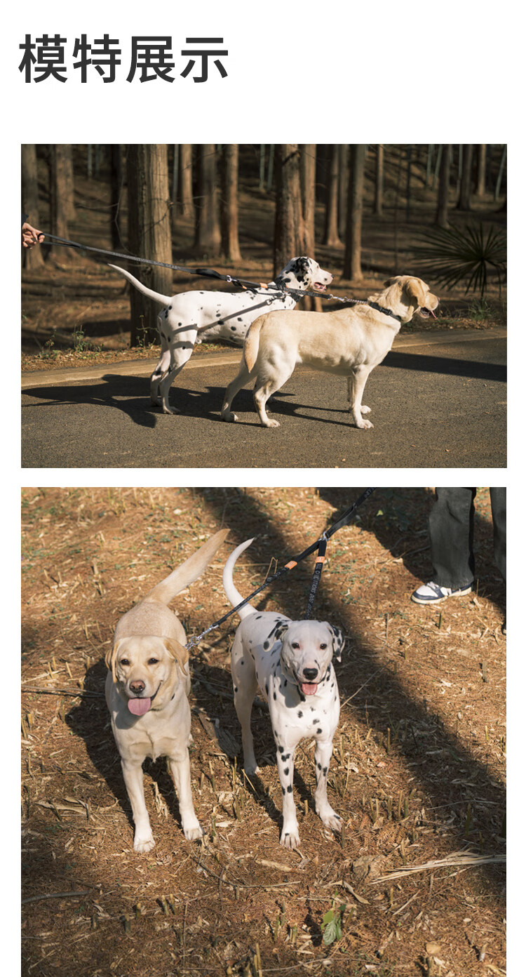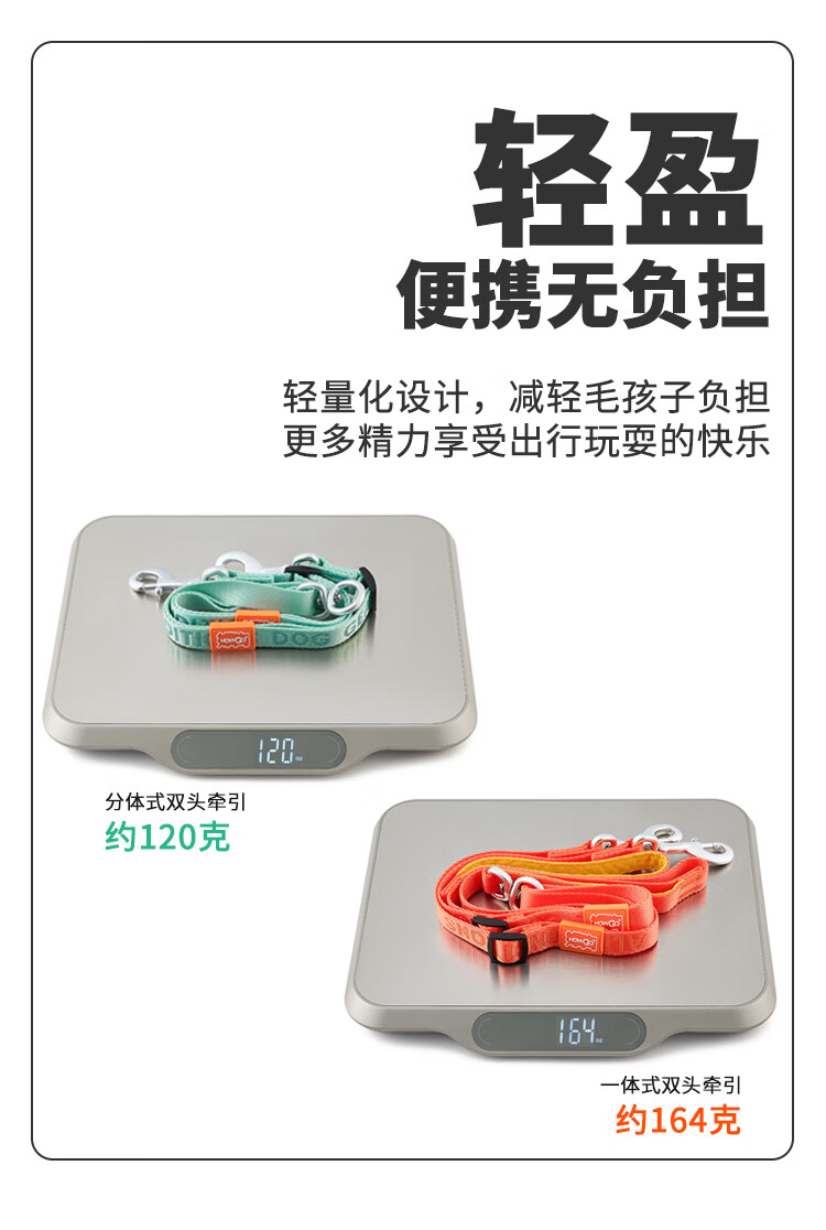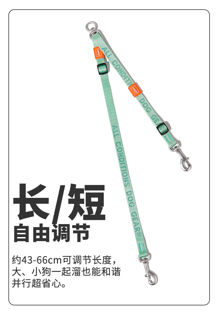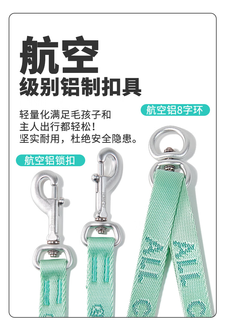 Howgo double-headed medium and large dog walking double dog pet dog leash small dog one to two anti-tangle dog rope mint green (with handle) one size fits all 1.5 width suitable for small and medium-sized dogs
