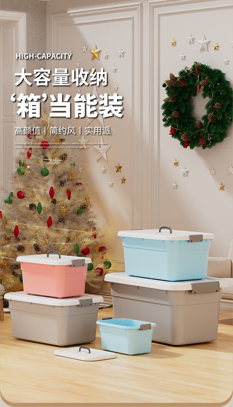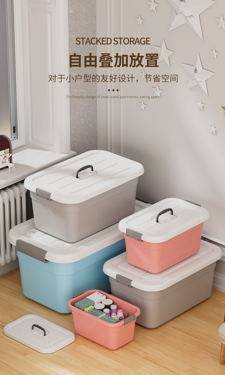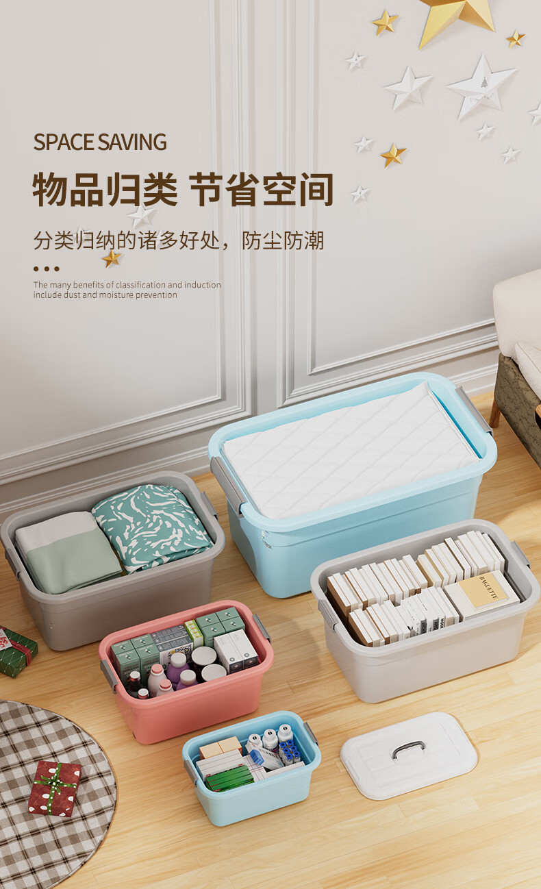 Plastic storage box for home dormitory small snacks clothes toys plastic storage box clothing storage box Lake Blue 23.9 18 12.9