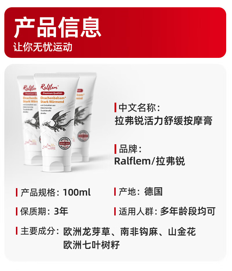 Ralflem sports massage cream imported from Germany 100ml*1
