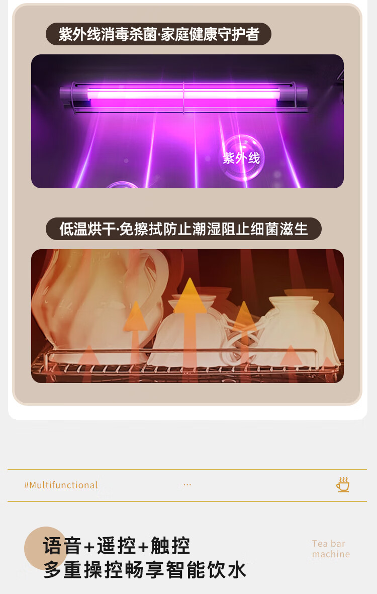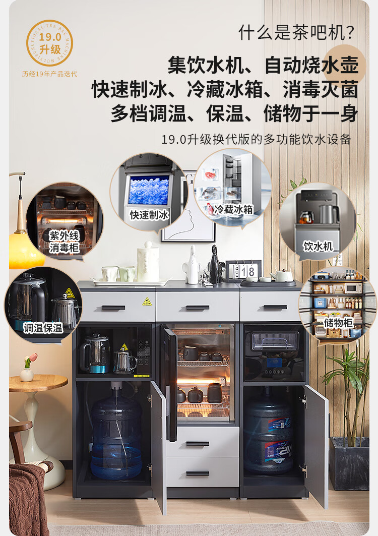 Yiban's new ice tea bar machine, home office, fully automatic drinking water refrigeration all-in-one machine, high-end living room, 2025 new refrigerator with refrigeration function combination cabinet HCB08-S (sterilization combination cabinet) warm type