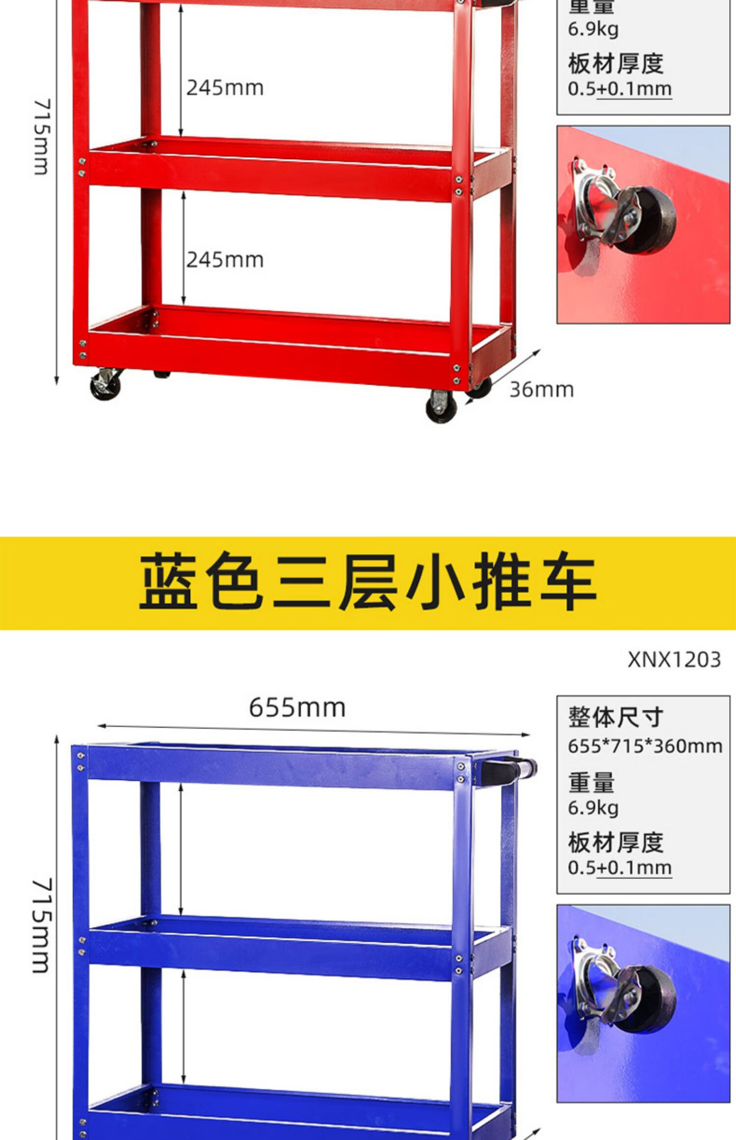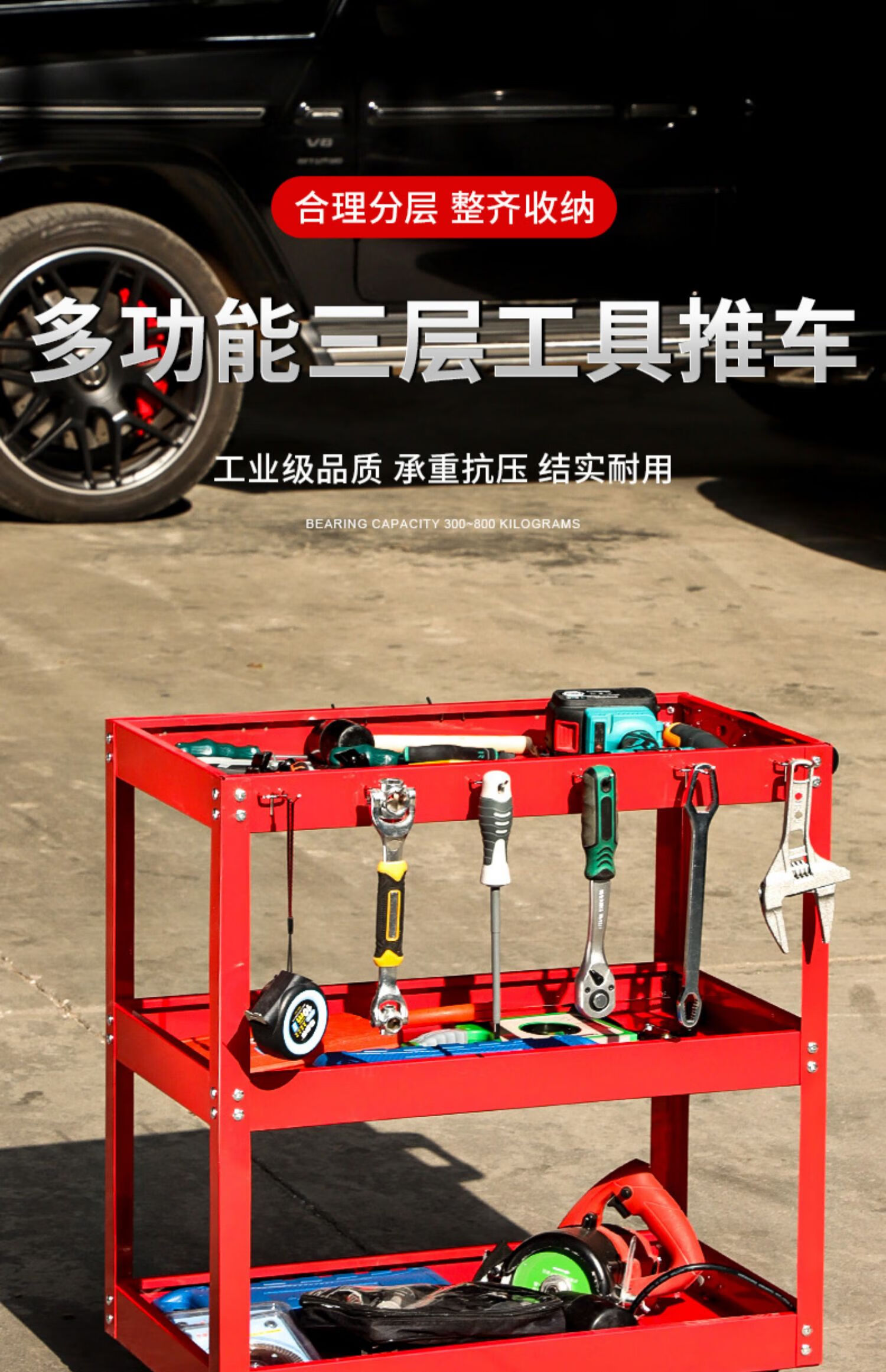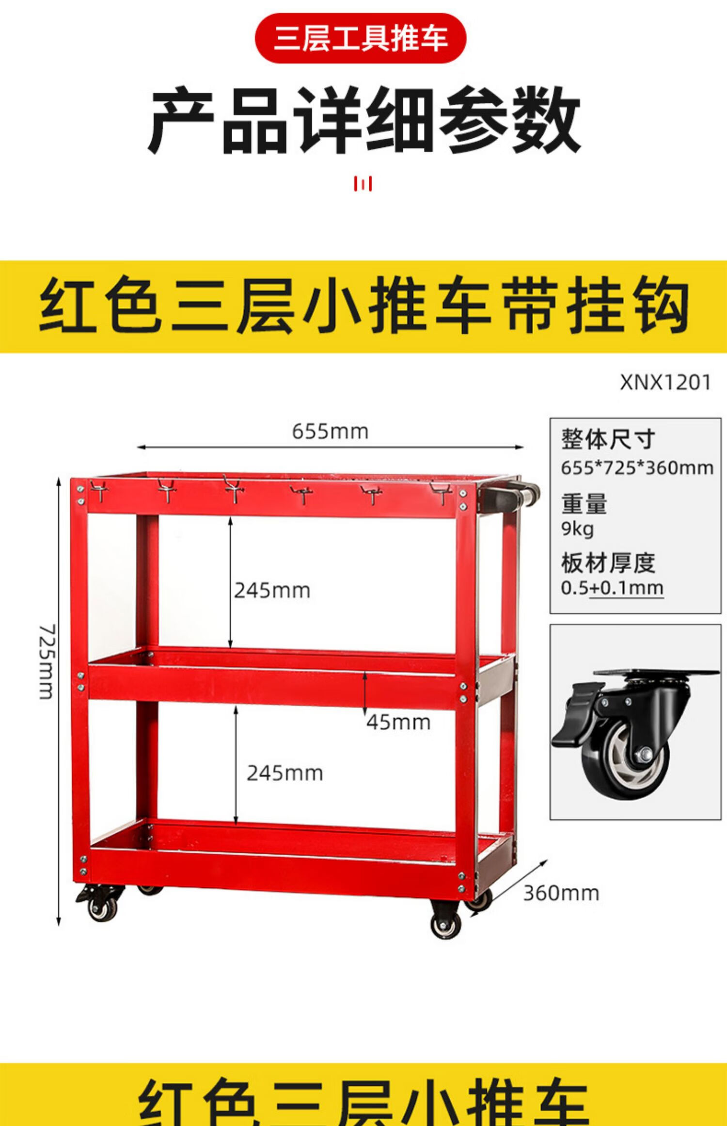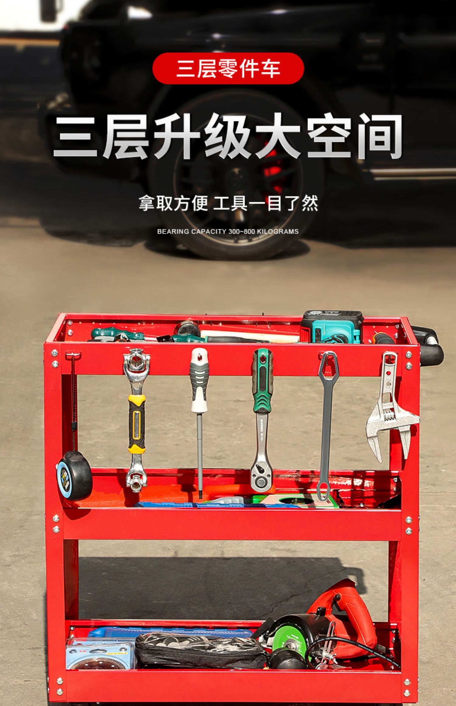 Niuxiang tool cart multi-functional auto repair three-layer tool cabinet car repair mobile shelf drawer type trolley red three-layer thickened model