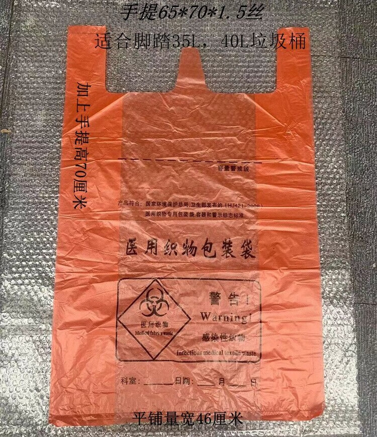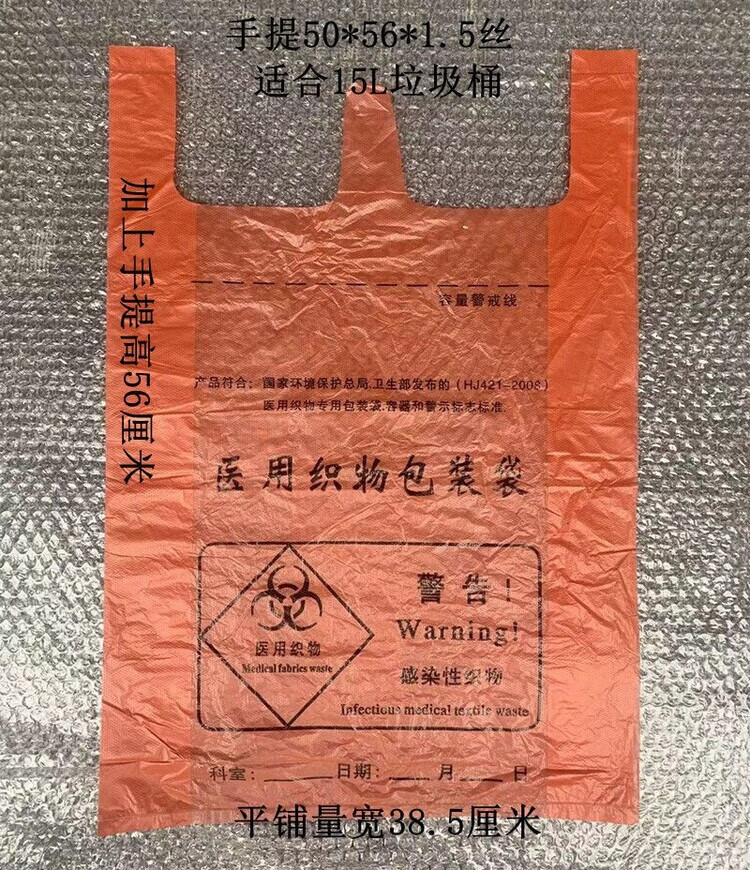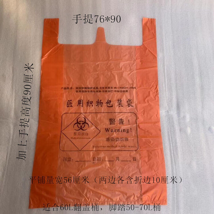 Medical garbage bag orange-red infectious thickened disposable fabric packaging medical waste large waste orange-red portable 50*56*1.5 silk 100 pieces