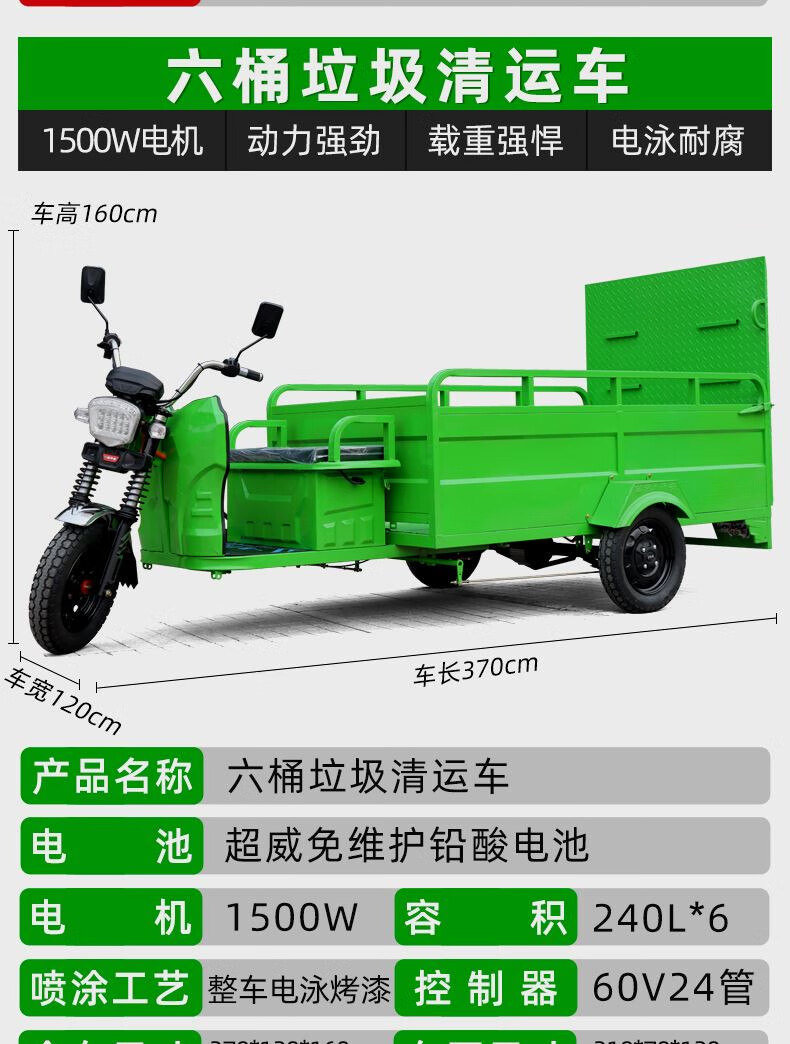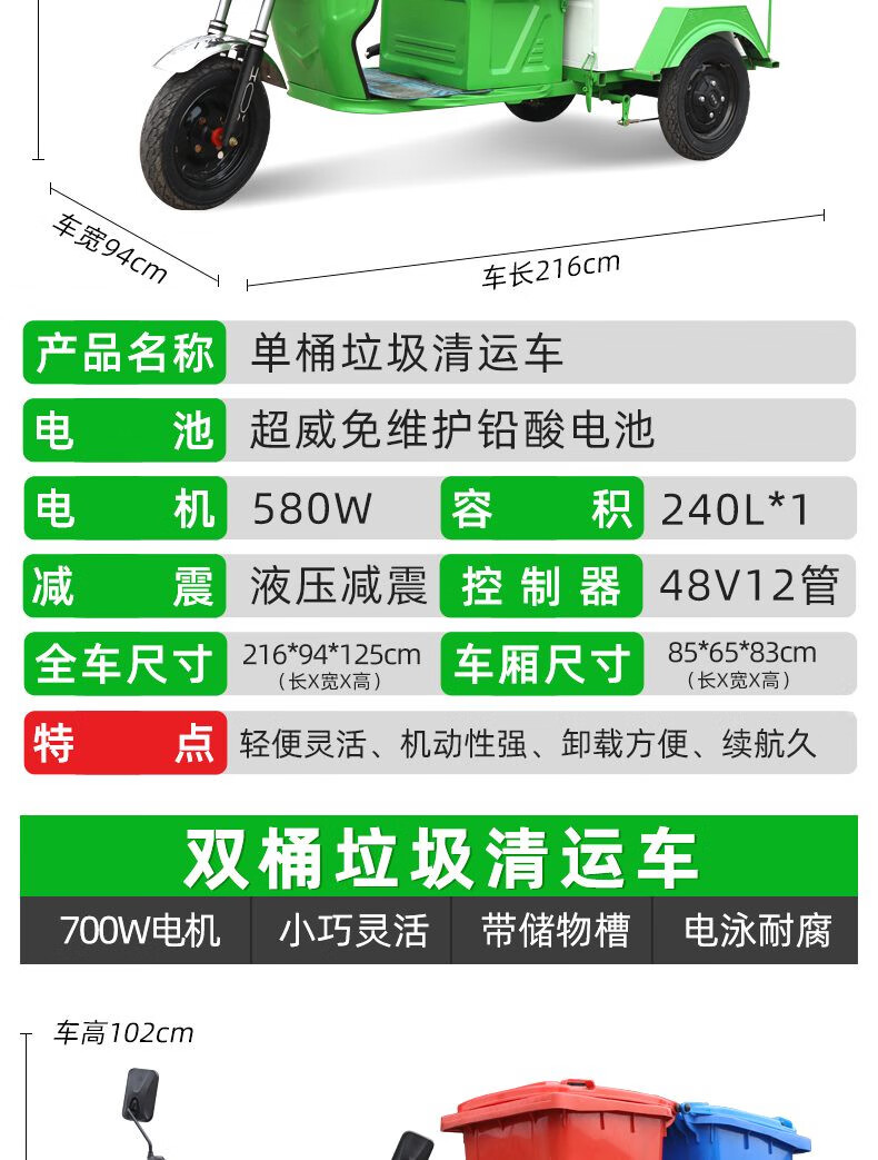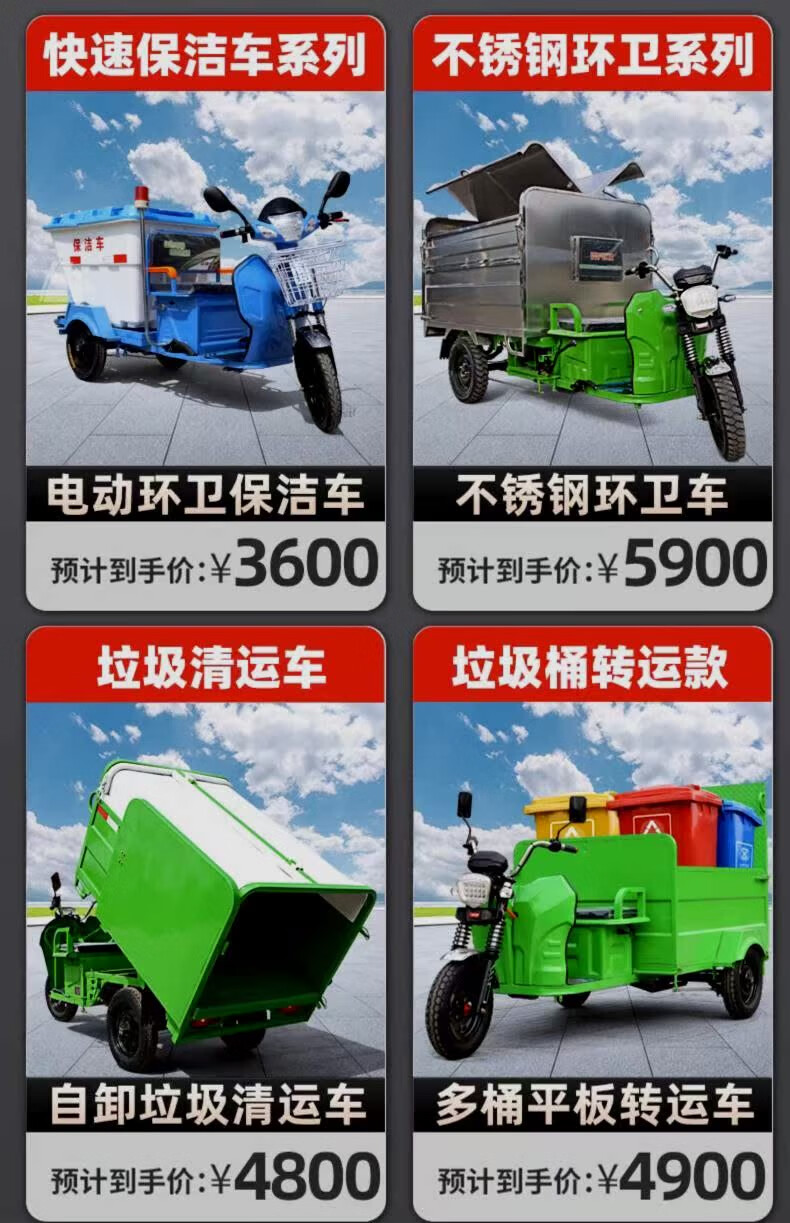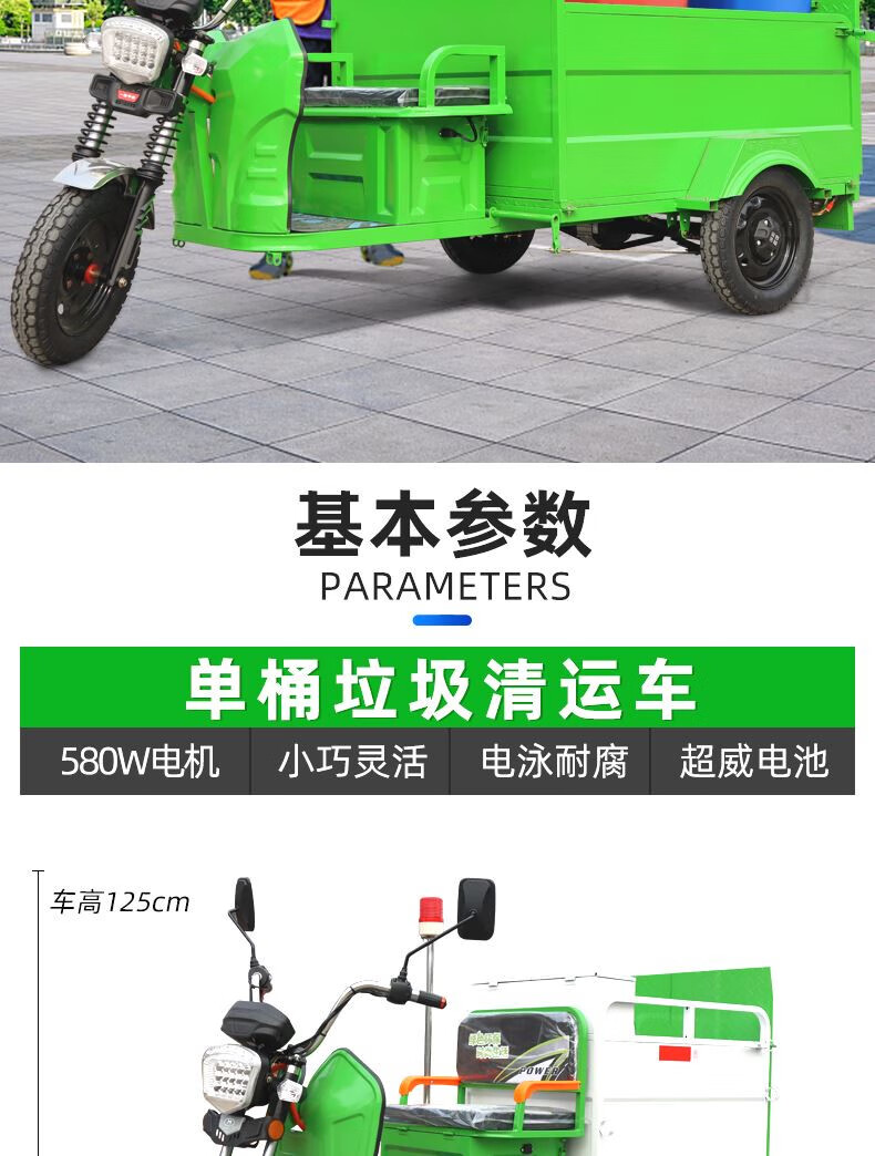 Jinghuan electric garbage truck, sanitation truck, tricycle, trash can transportation and transfer, four or six barrels, residential property street, single barrel naked vehicle (excluding battery and freight)
