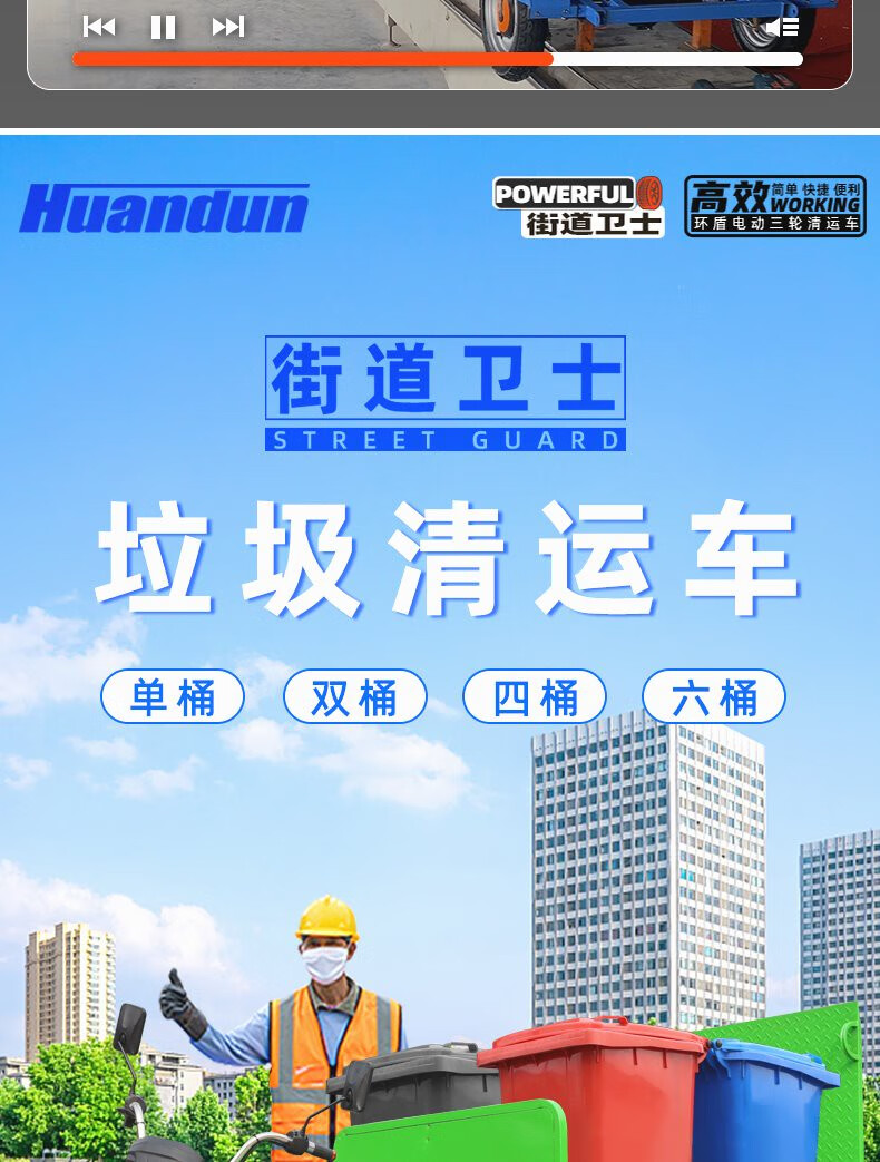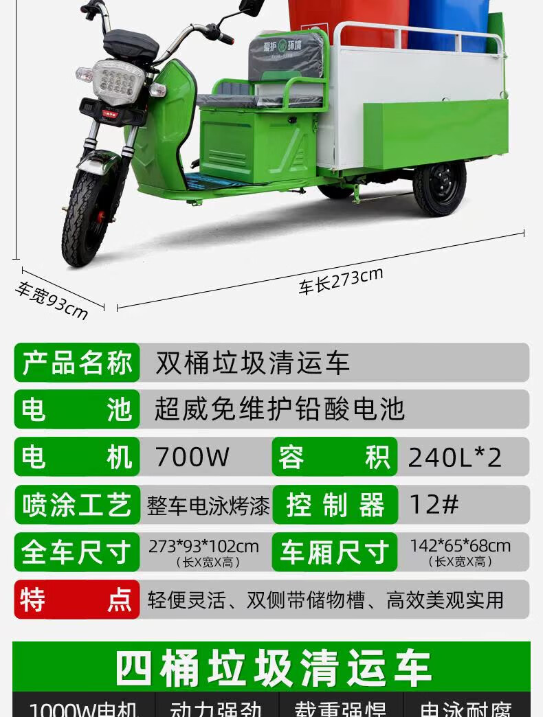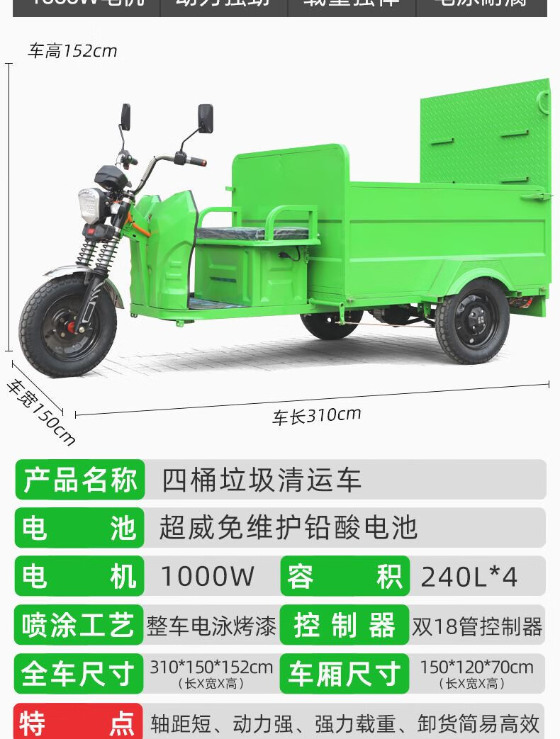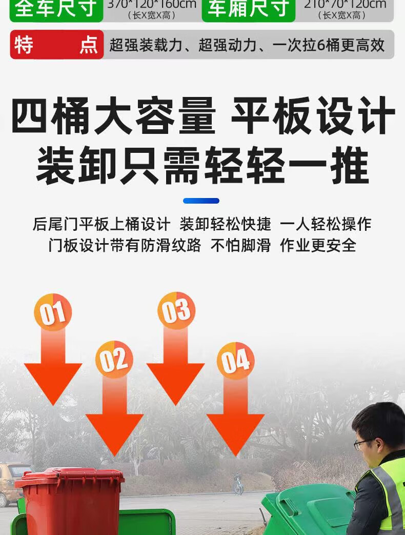 Jinghuan electric garbage truck, sanitation truck, tricycle, trash can transportation and transfer, four or six barrels, residential property street, single barrel naked vehicle (excluding battery and freight)
