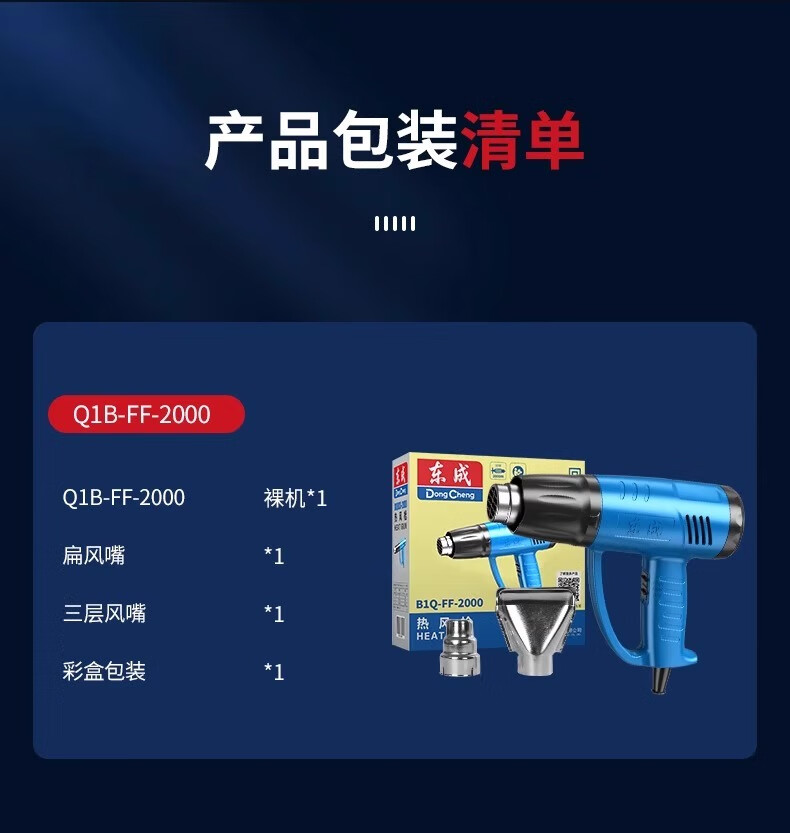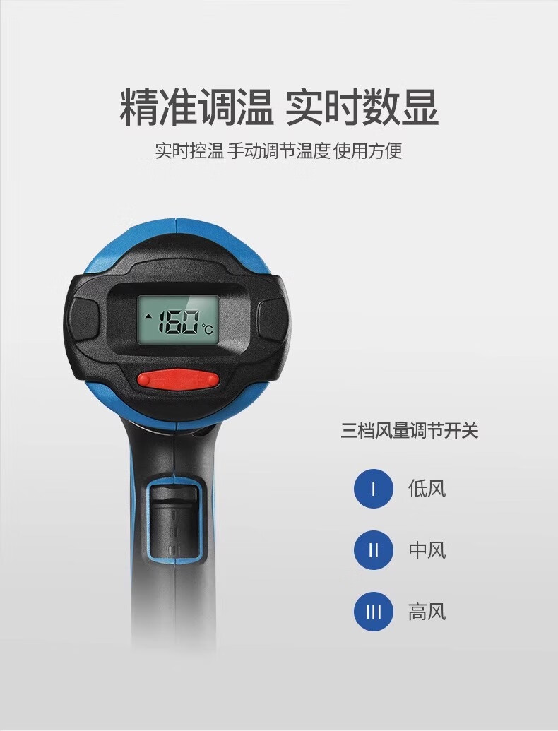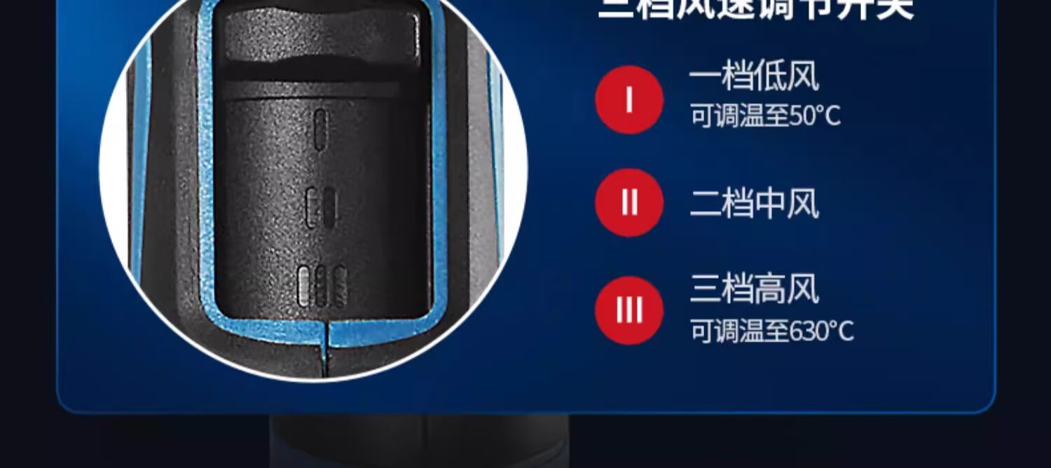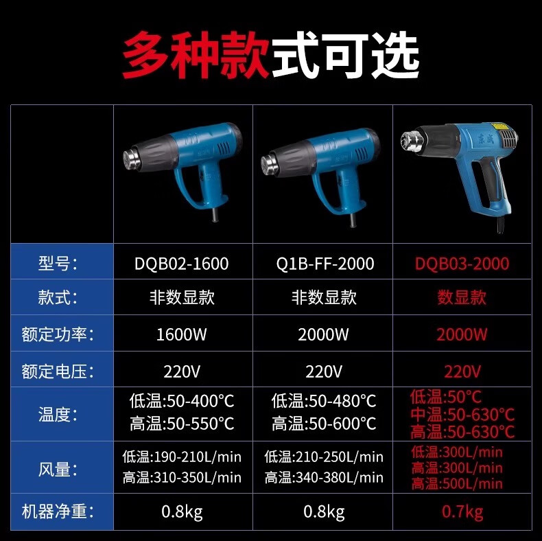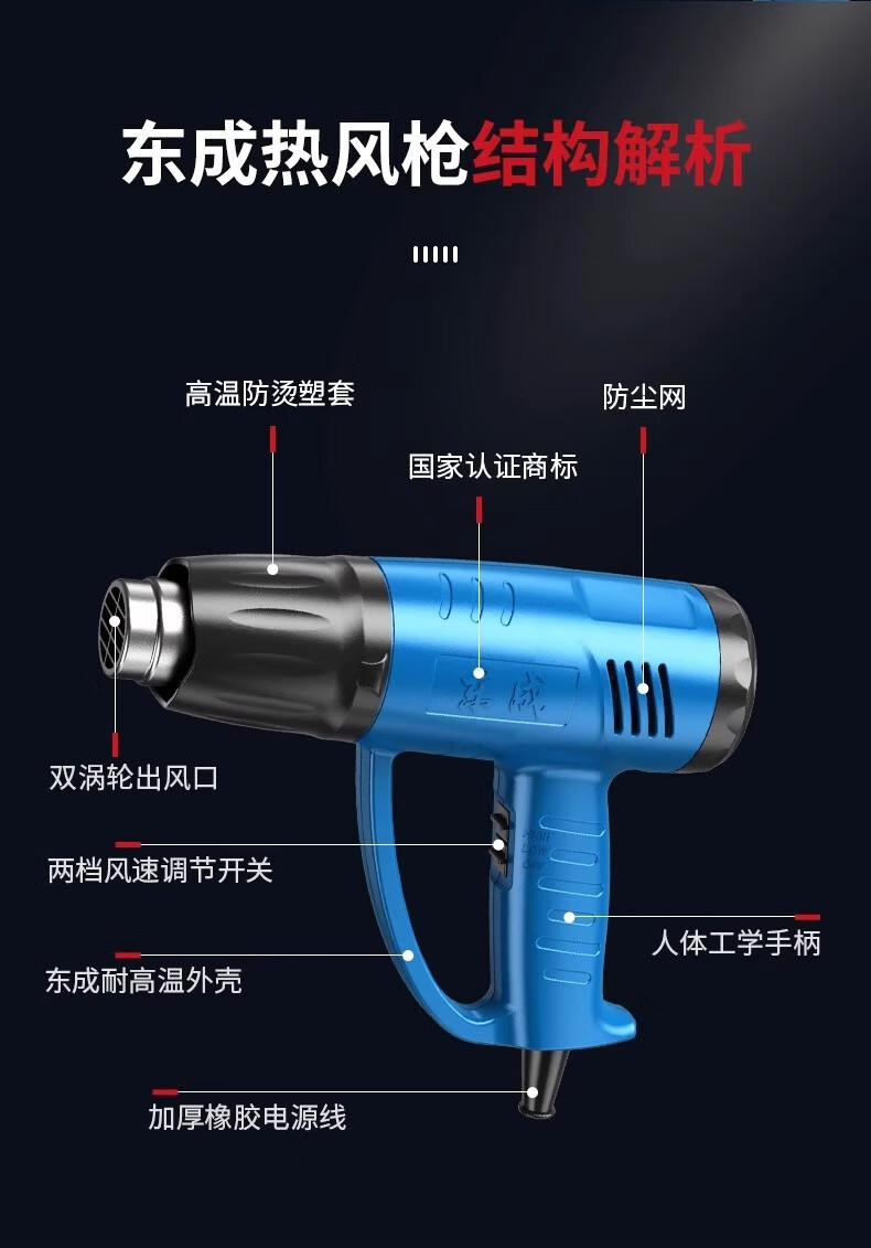 Dongcheng Dongcheng hot air gun high-power industrial-grade seam baking gun Dongcheng special small heating hair dryer drying gun 2000W 05-2000 model - three-speed temperature adjustment