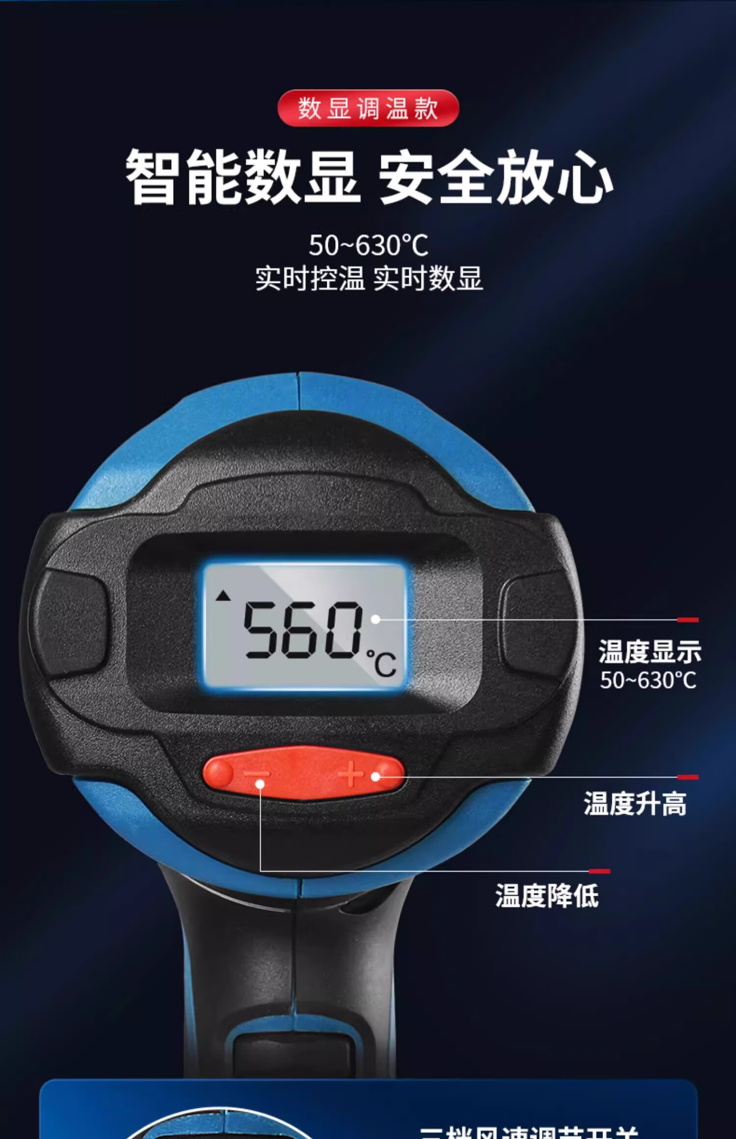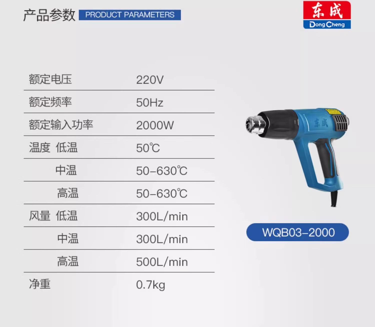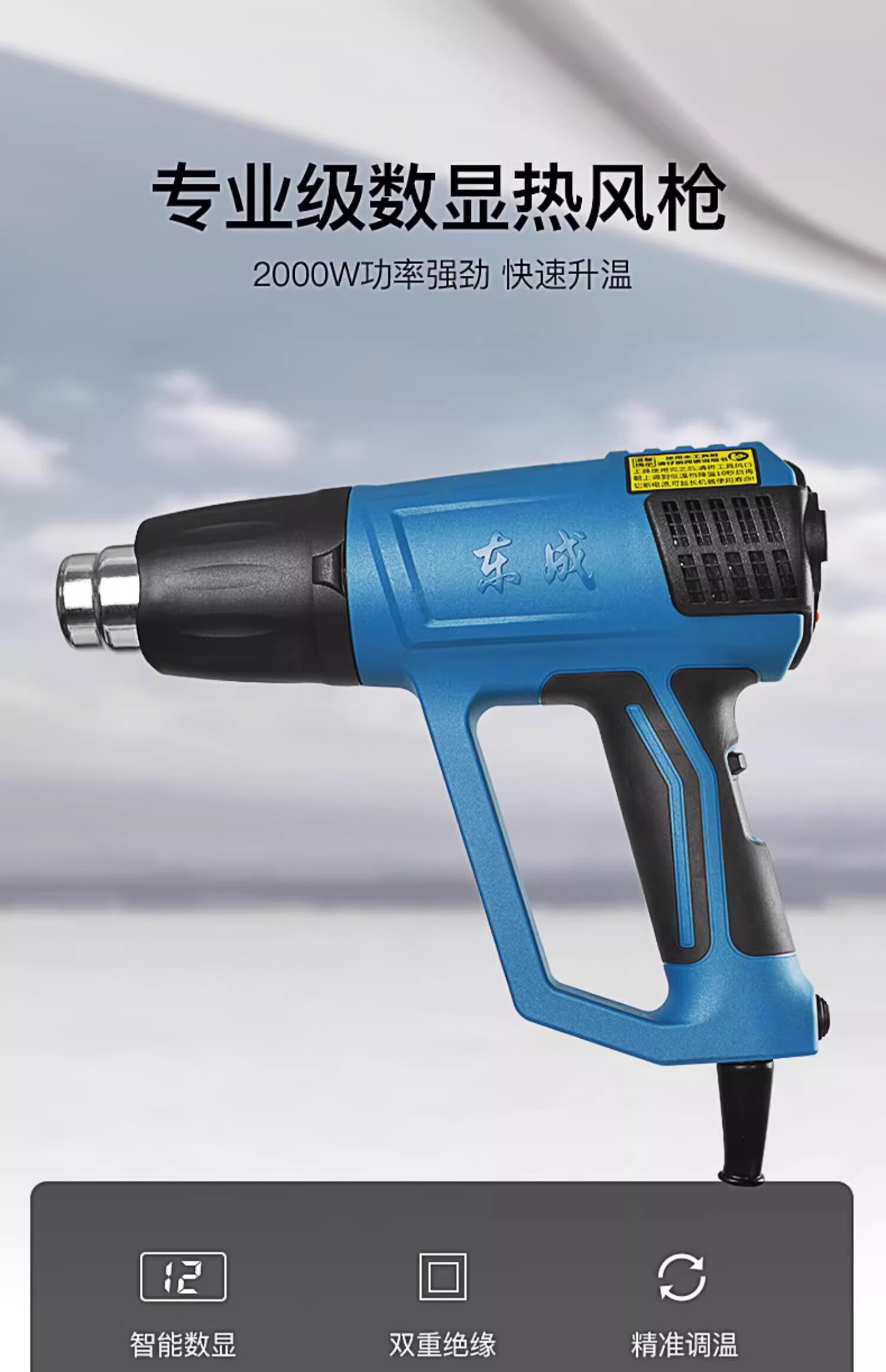 Dongcheng Dongcheng hot air gun high-power industrial-grade seam baking gun Dongcheng special small heating hair dryer drying gun 2000W 05-2000 model - three-speed temperature adjustment